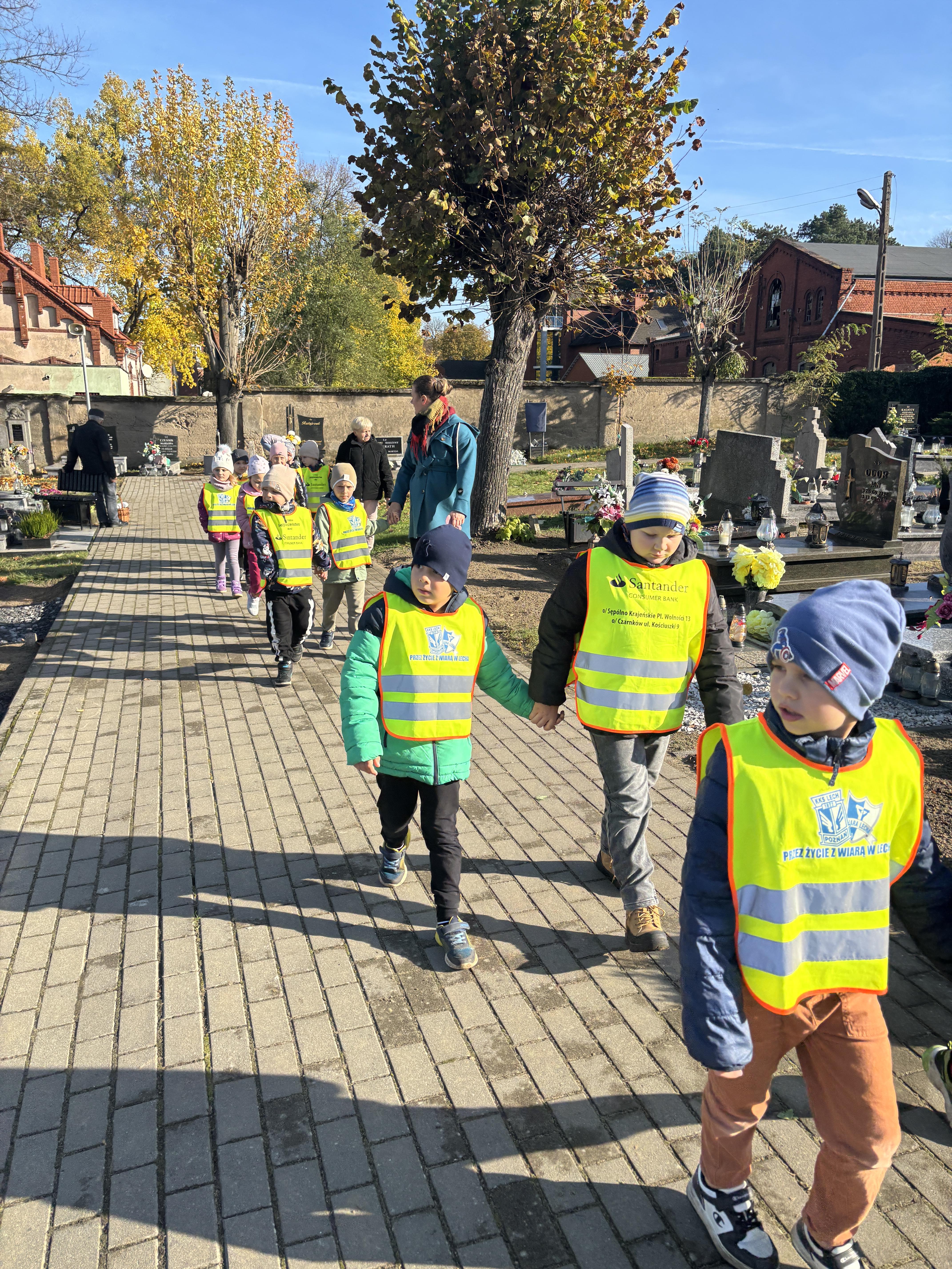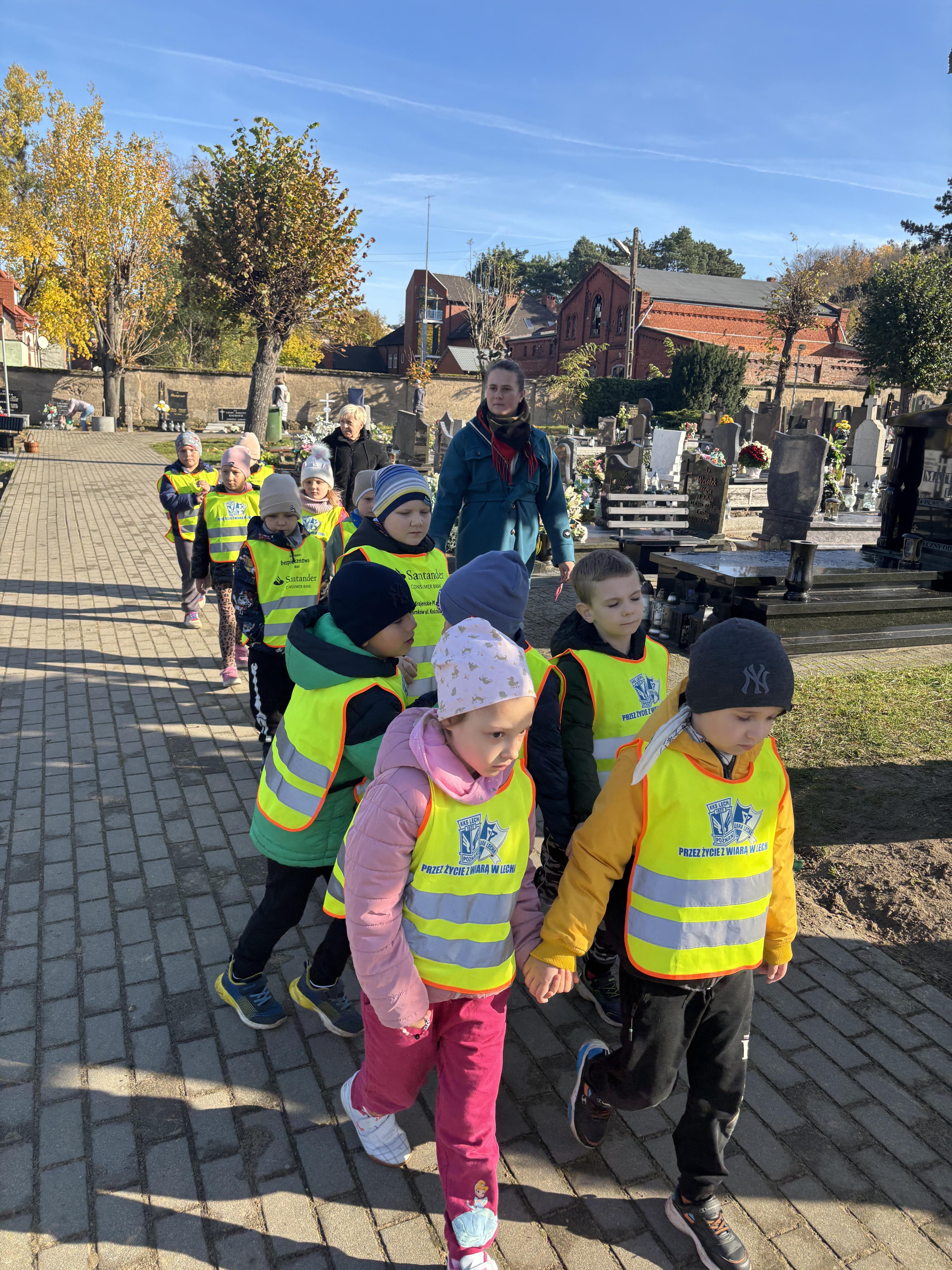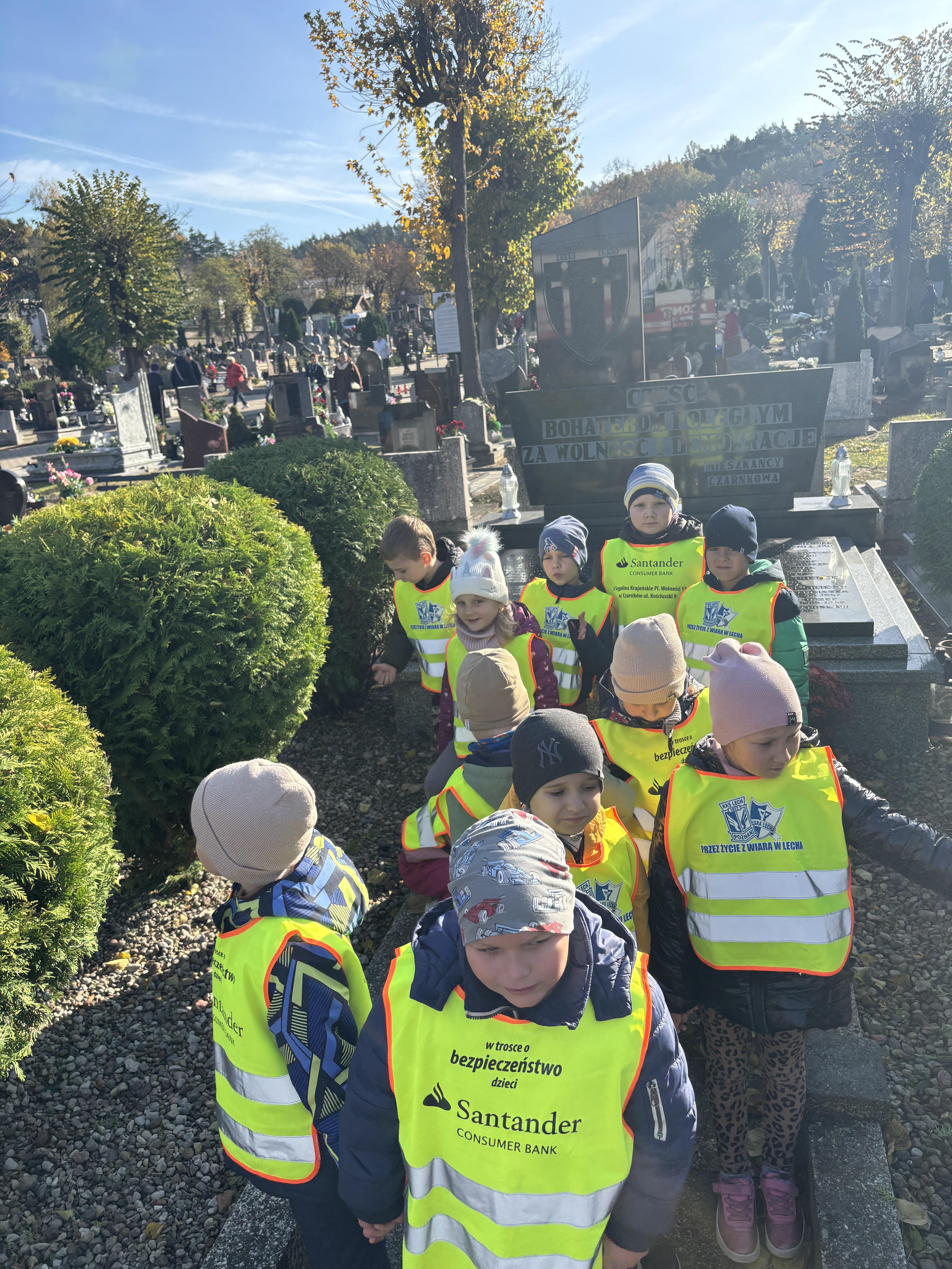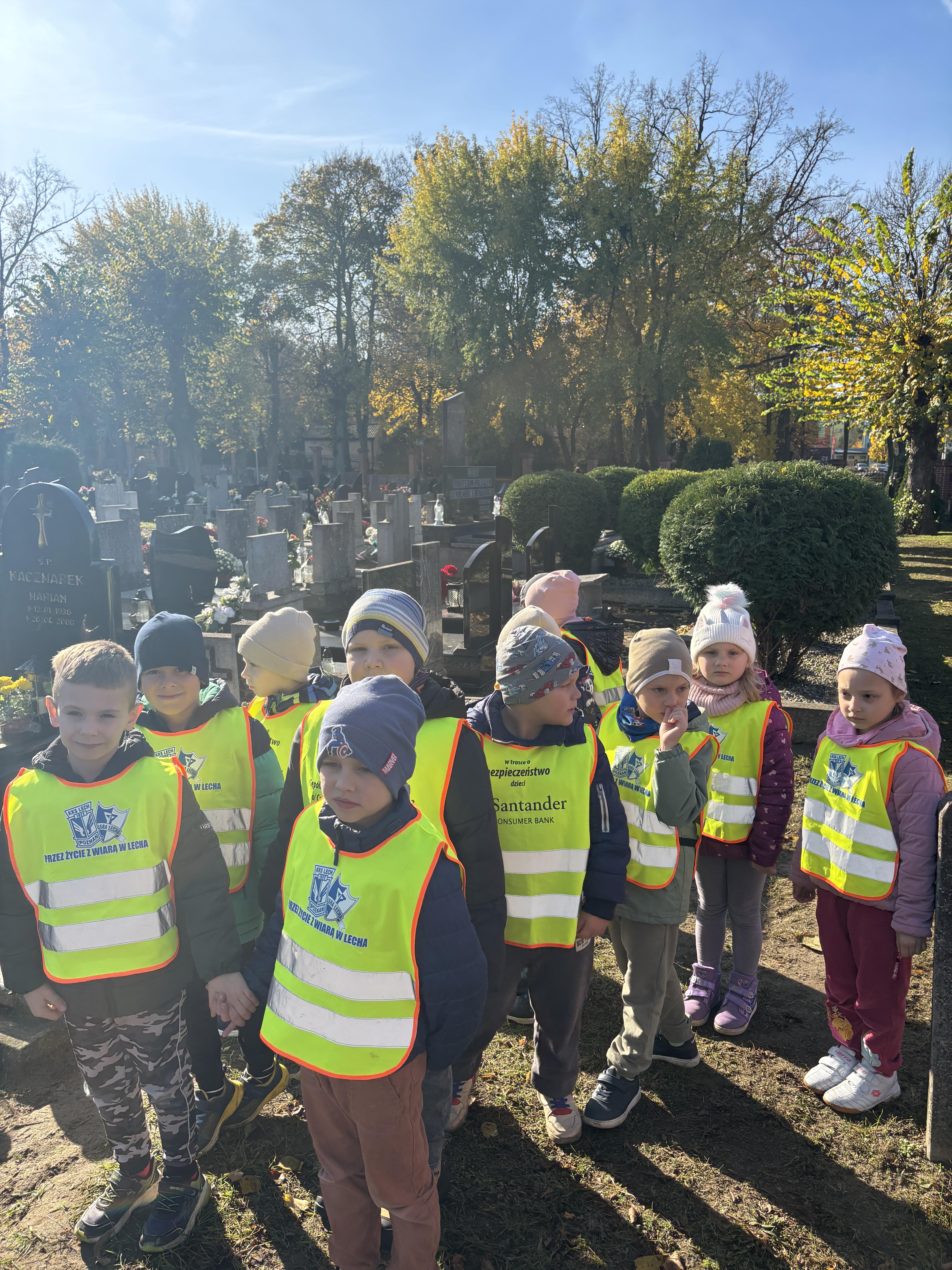 Dziś przedszkolaki z grupy Plastusie odwiedziły cmentarz, by uczcić pamięć bohaterów i żołnierzy. Dzieci z szacunkiem zapaliły znicze na grobach poległych, ucząc się, czym jest pamięć, wdzięczność i patriotyzm. „Pamiętamy o tych, którzy walczyli za naszą wolność.”