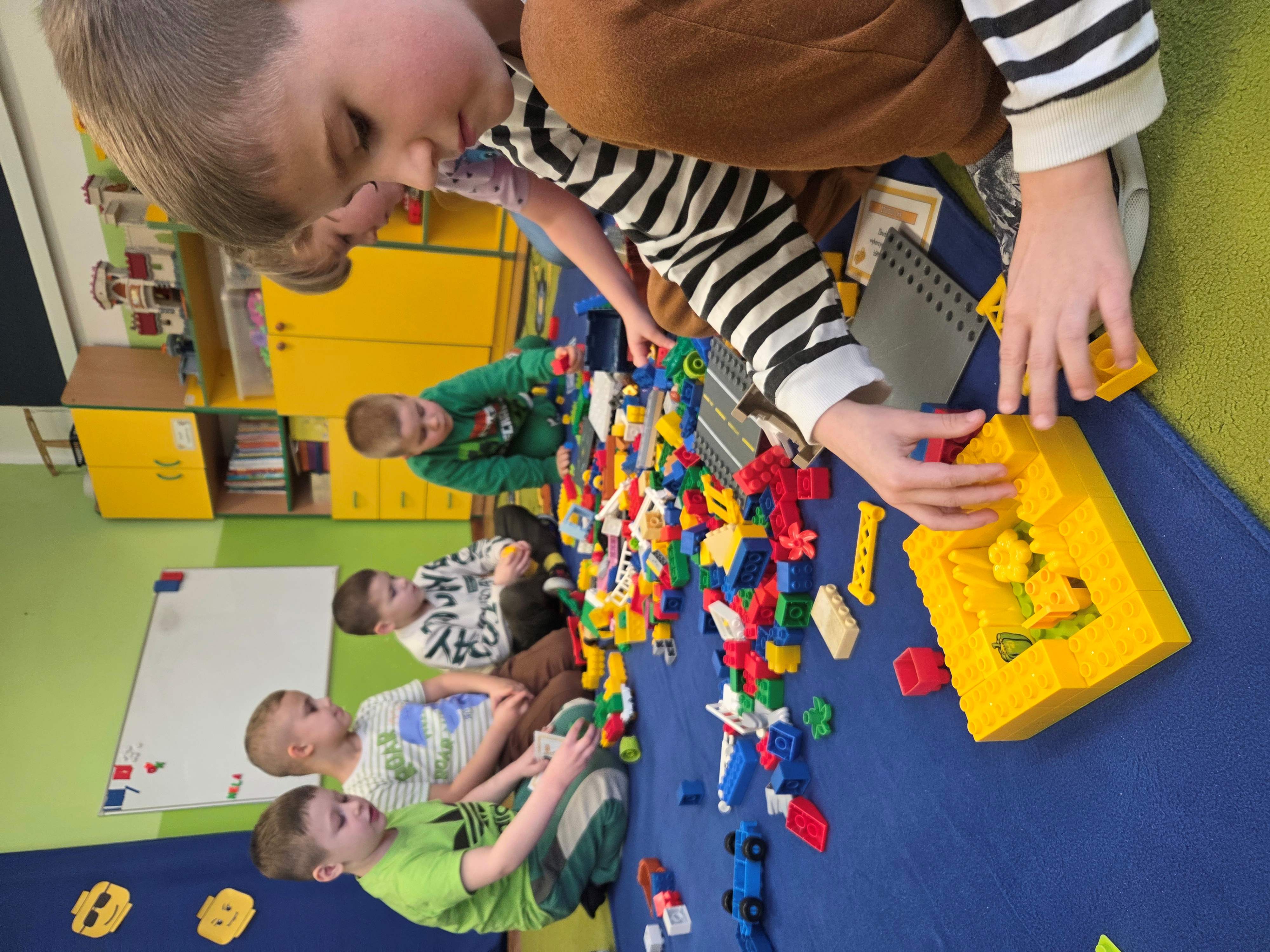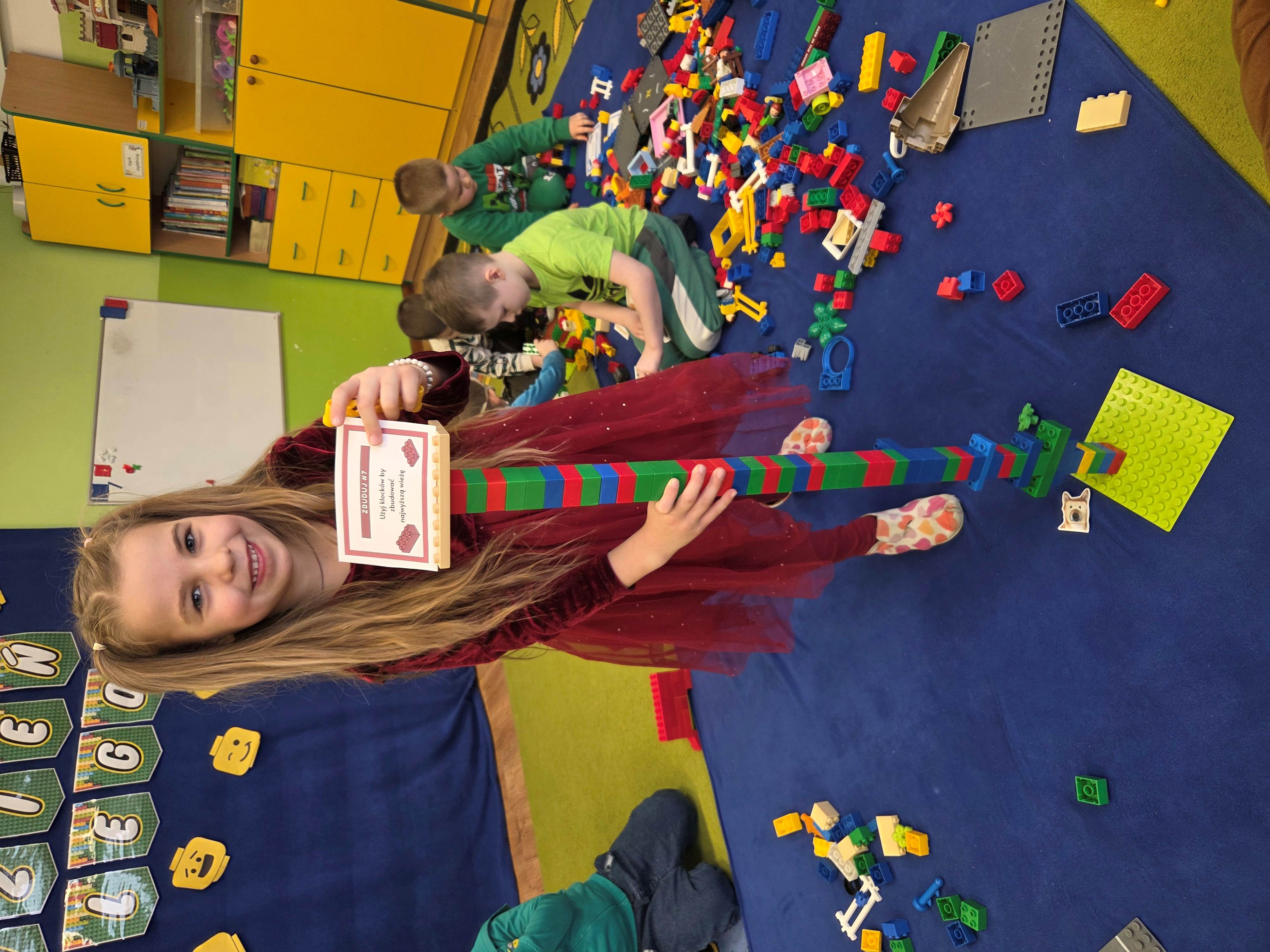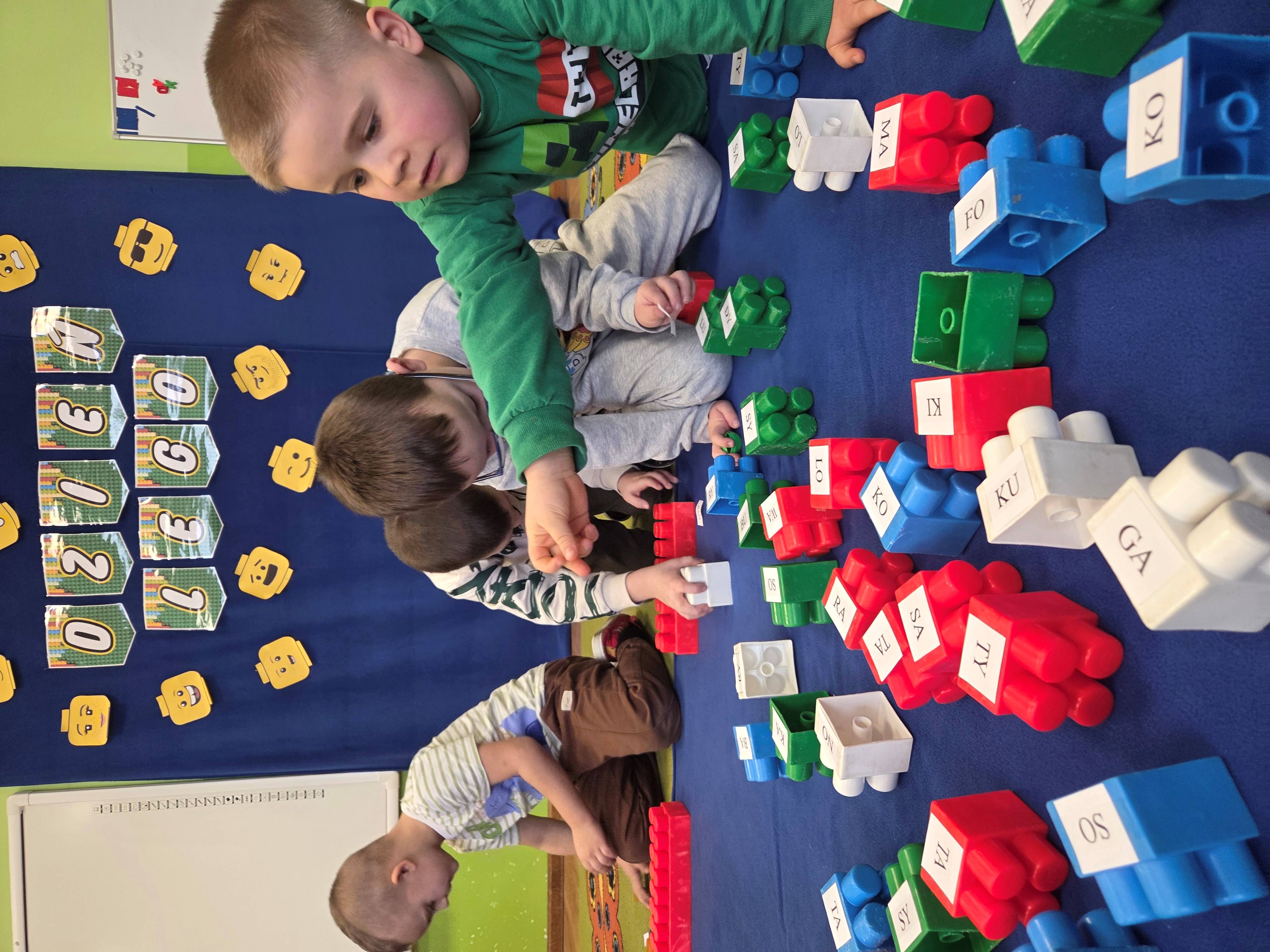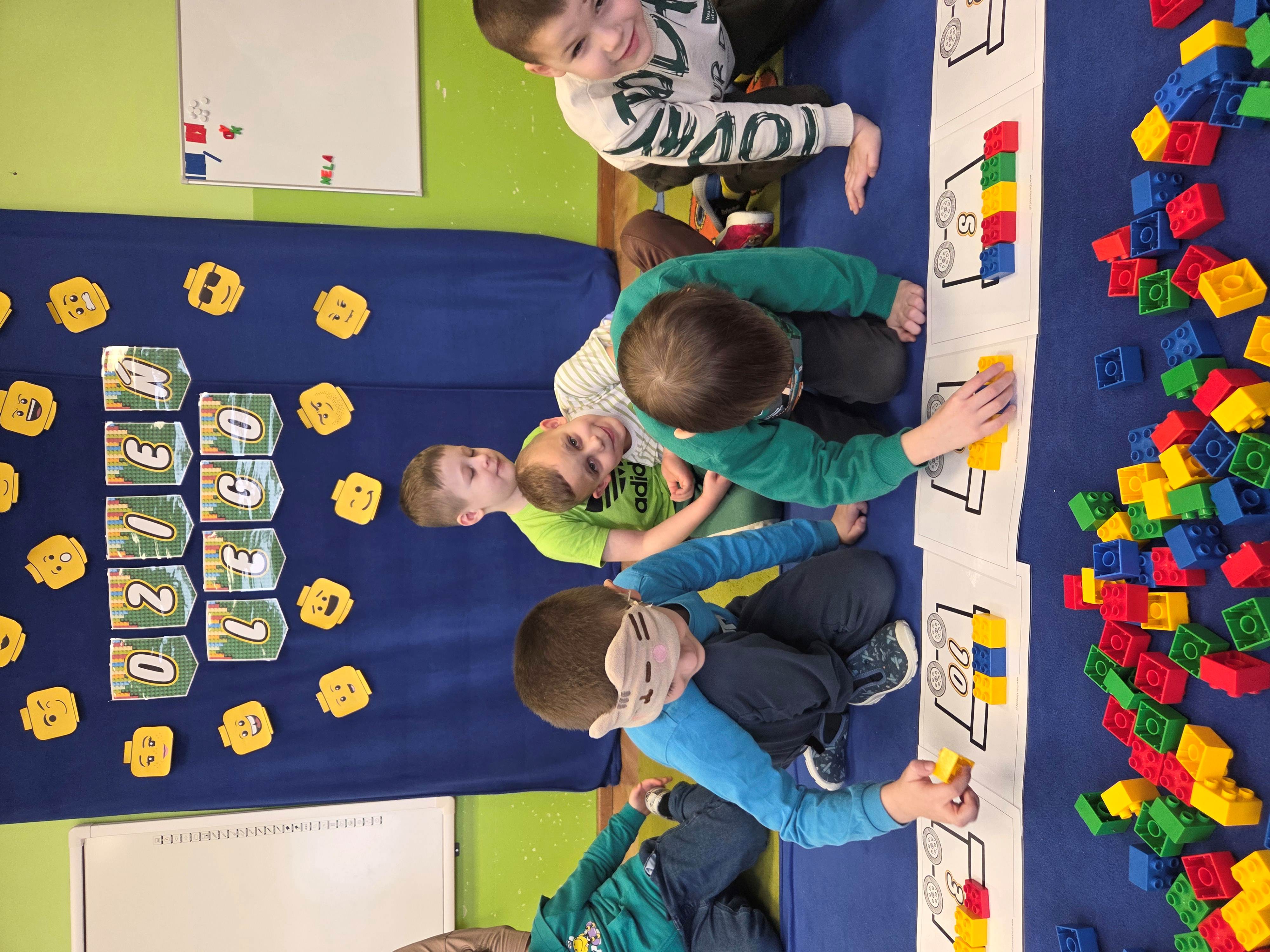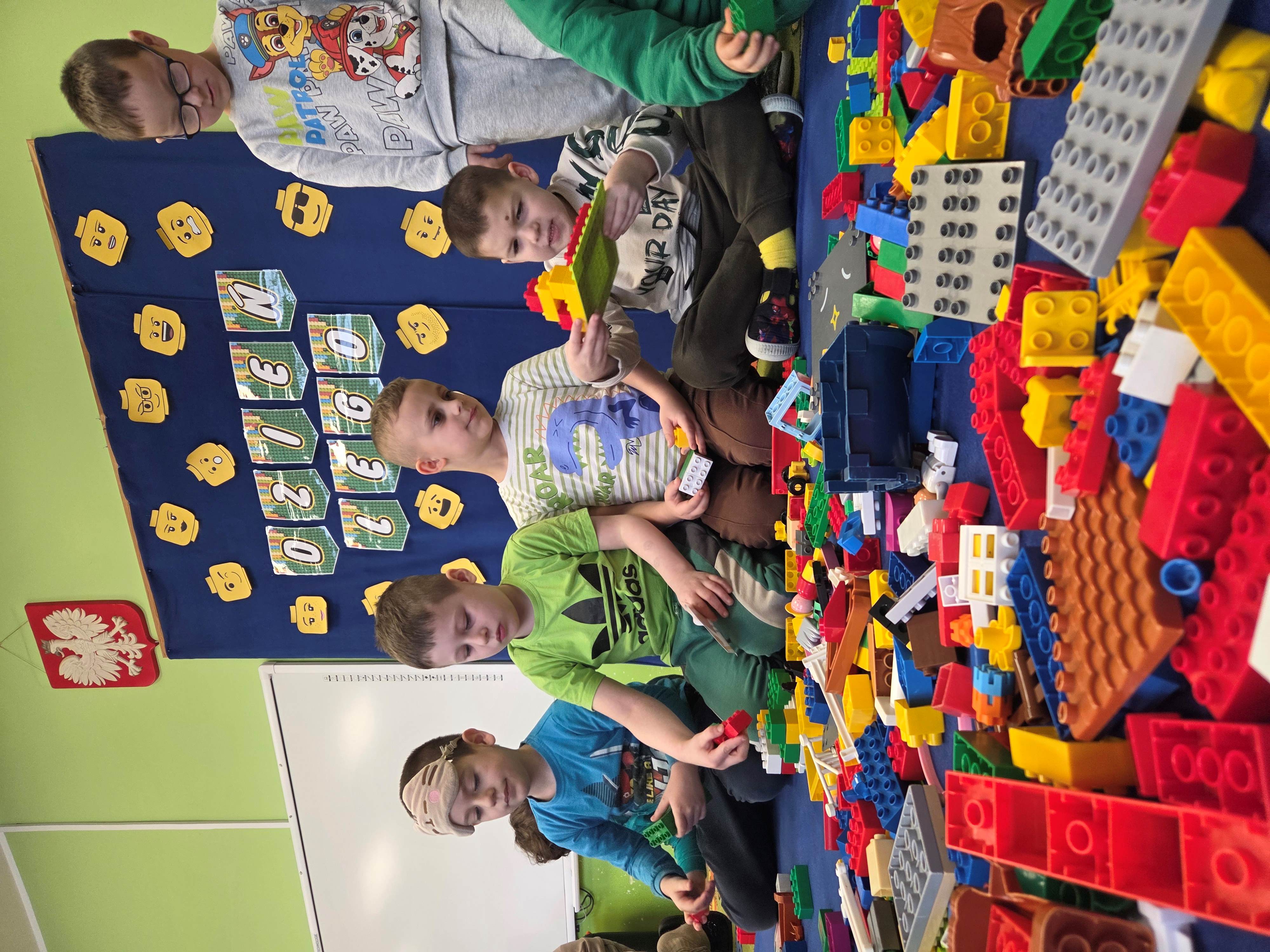 Z tej okazji nasze przedszkolaki wzięły udział w zajęciach dydaktycznych poświęconych właśnie klockom LEGO. Nie służyły one wyłącznie do konstruowania i budowania wspaniałych budowli. Były także wykorzystywane podczas zadań matematycznych, takich jak kodowanie z użyciem GeniBota, utrwalanie znajomości poznanych cyfr, układanie wyrazów z rozsypanych sylab oraz tworzenie prac plastycznych.