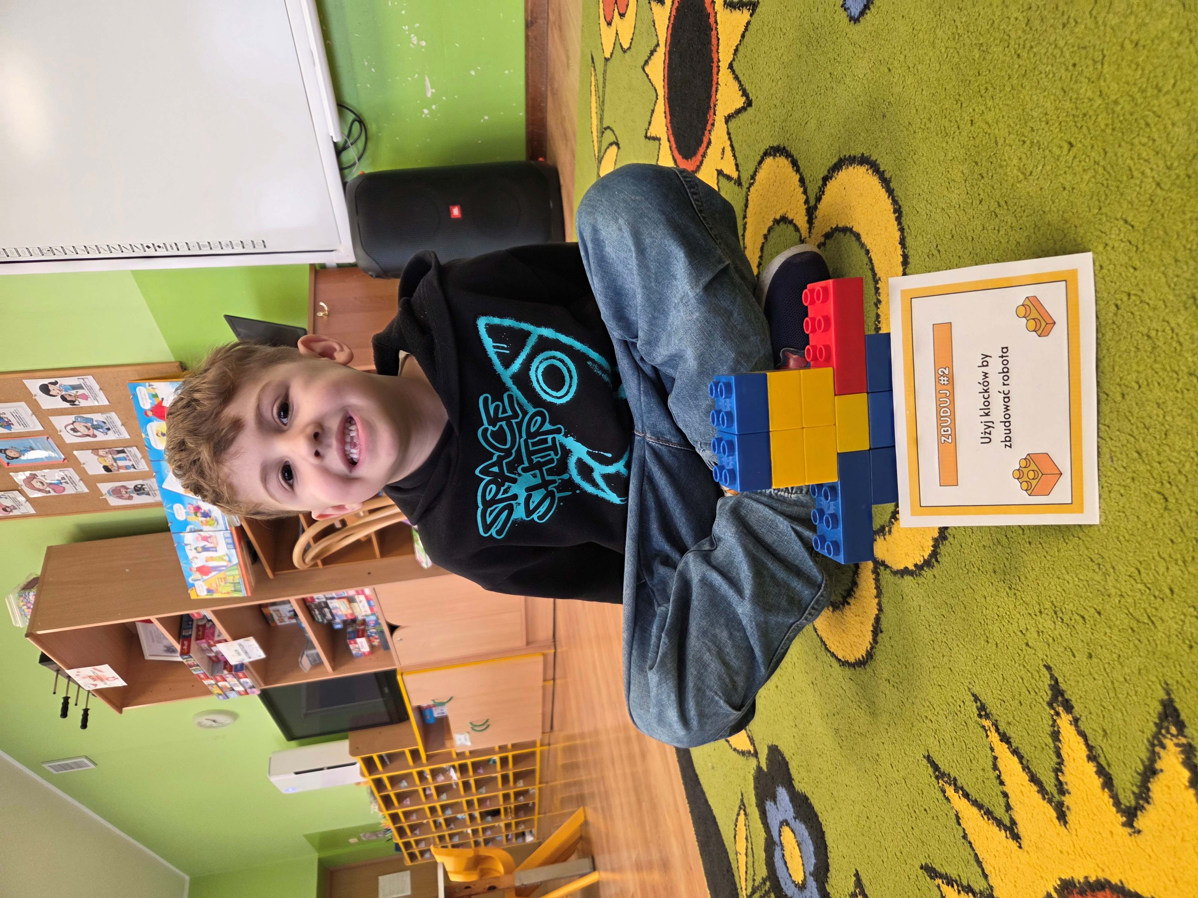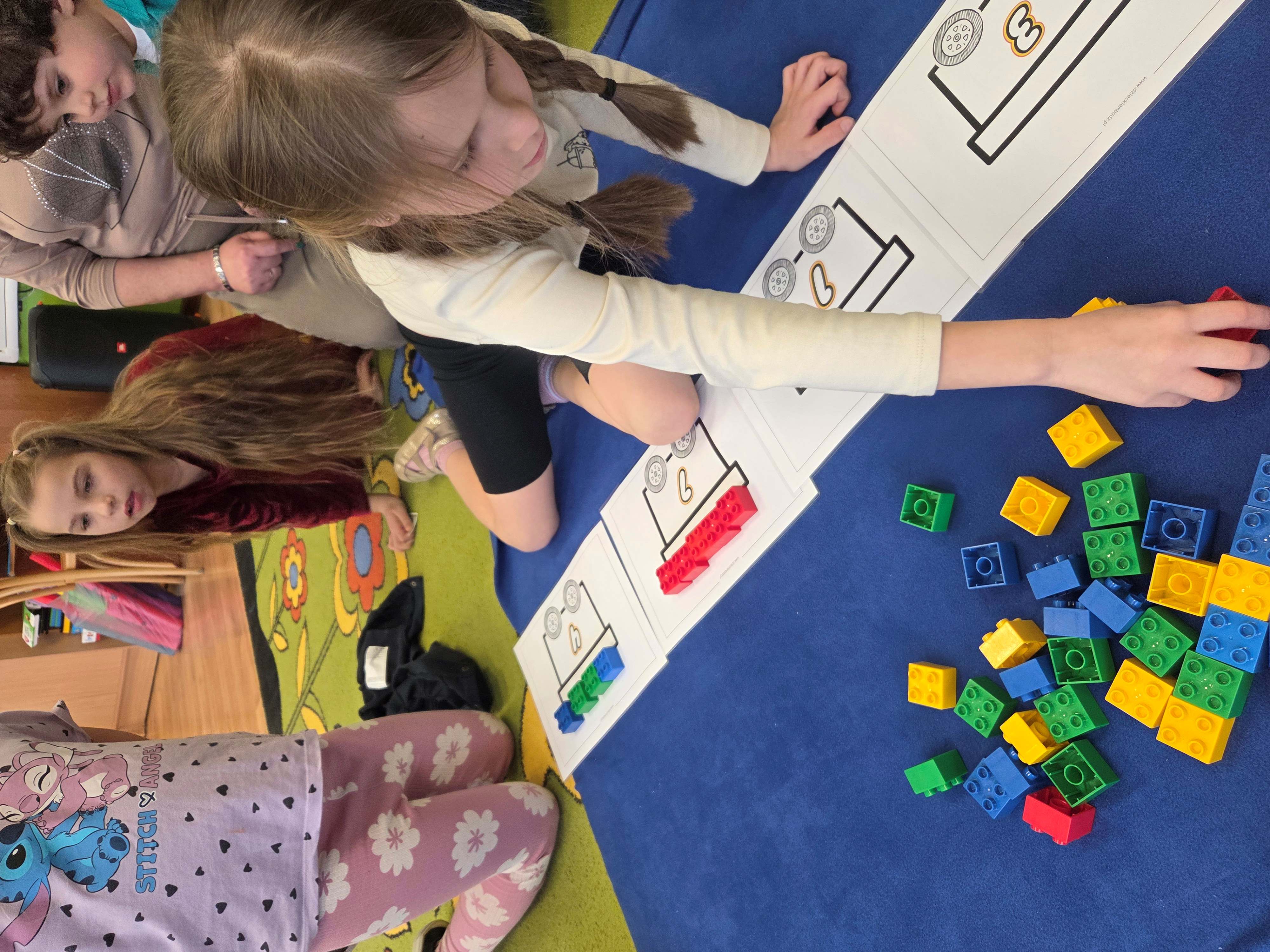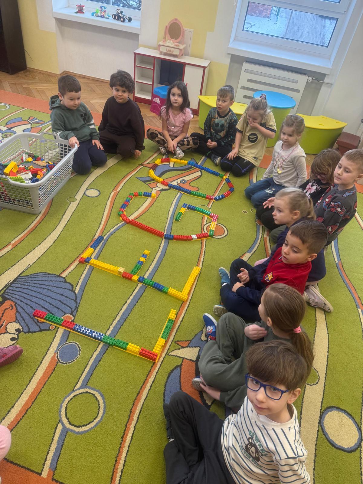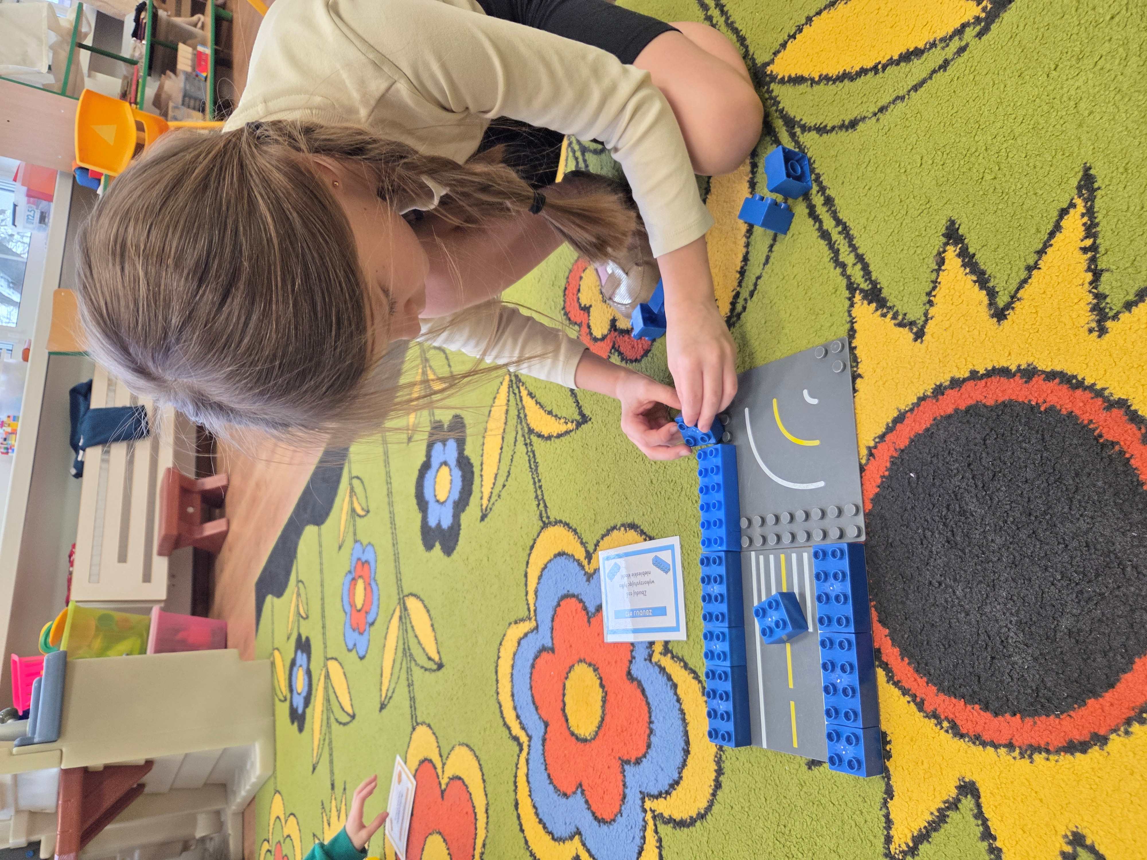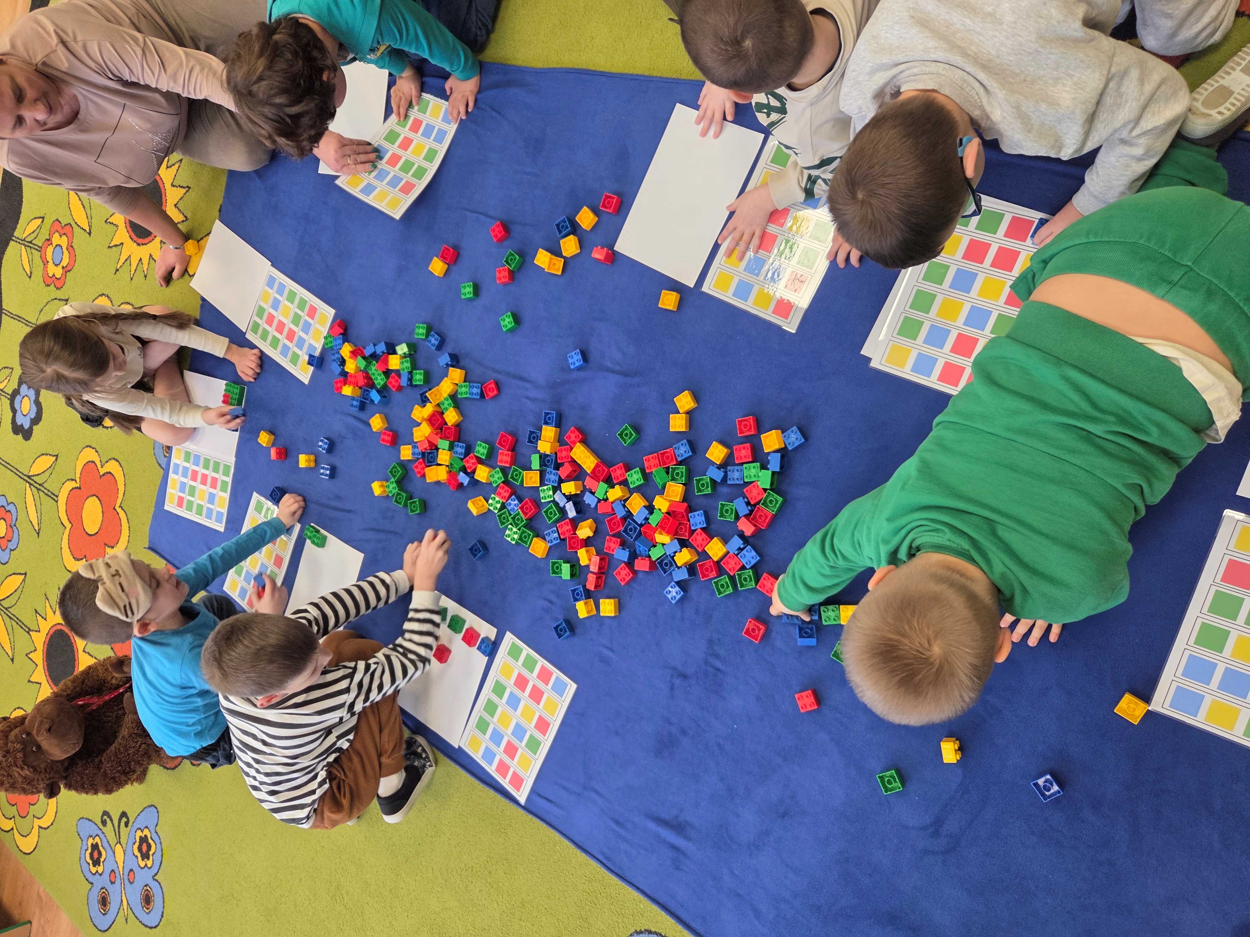 Z tej okazji nasze przedszkolaki wzięły udział w zajęciach dydaktycznych poświęconych właśnie klockom LEGO. Nie służyły one wyłącznie do konstruowania i budowania wspaniałych budowli. Były także wykorzystywane podczas zadań matematycznych, takich jak kodowanie z użyciem GeniBota, utrwalanie znajomości poznanych cyfr, układanie wyrazów z rozsypanych sylab oraz tworzenie prac plastycznych.