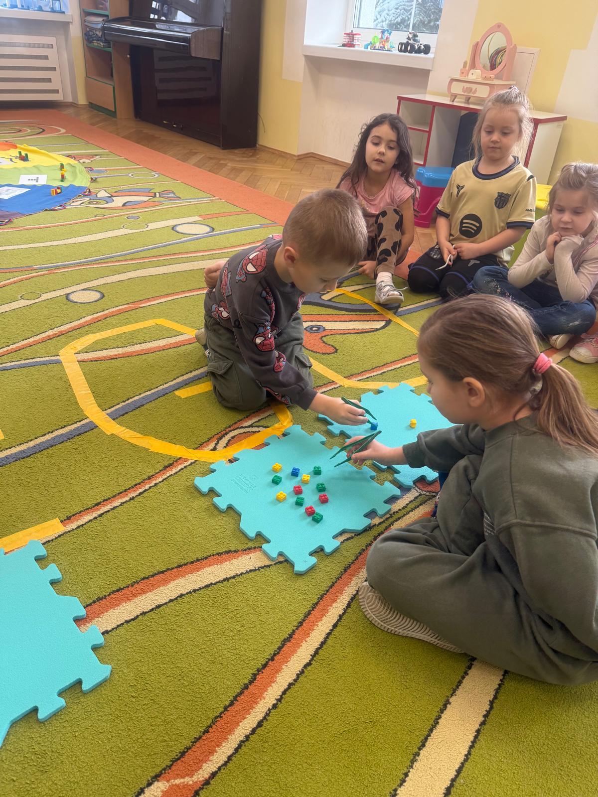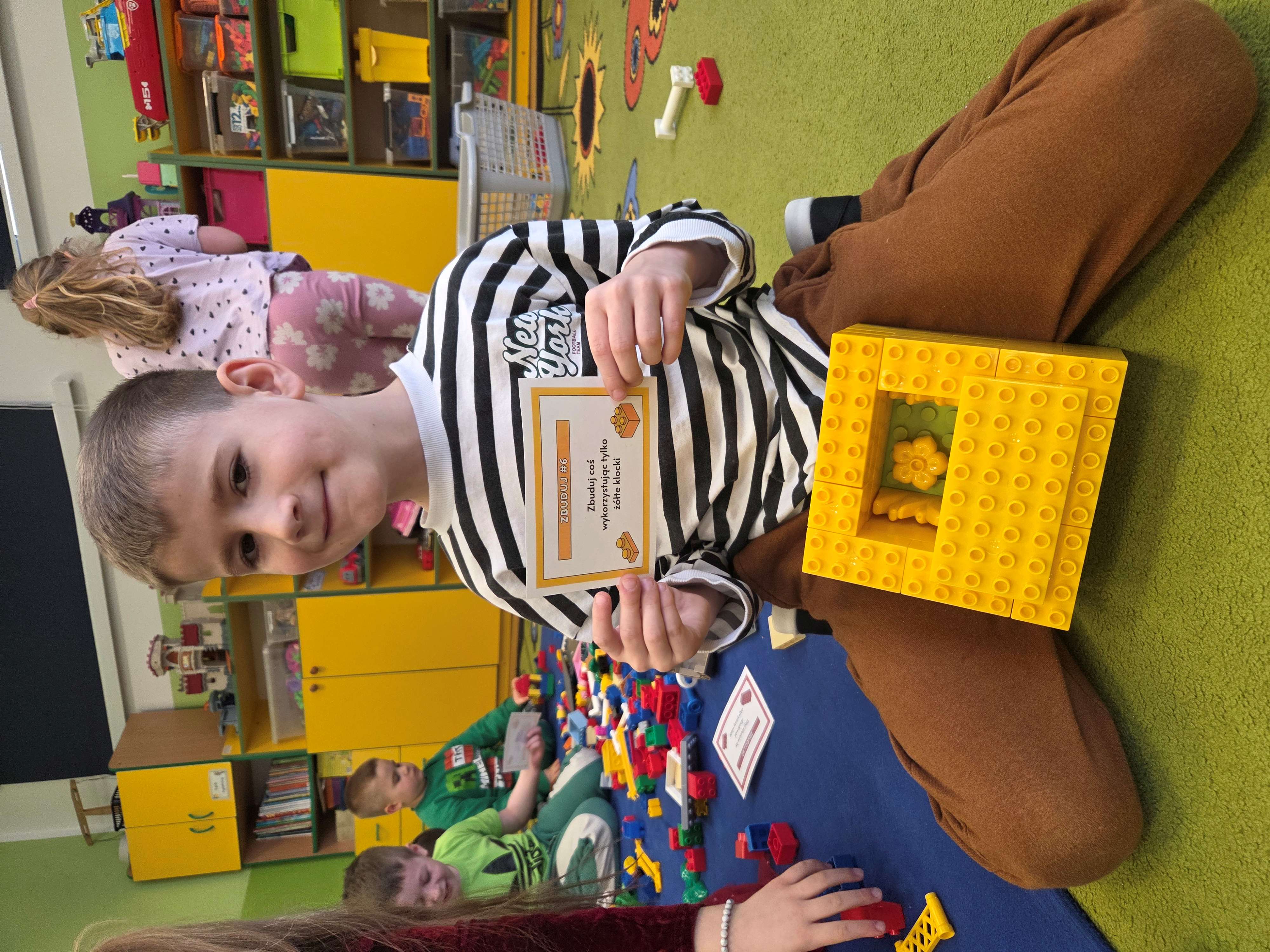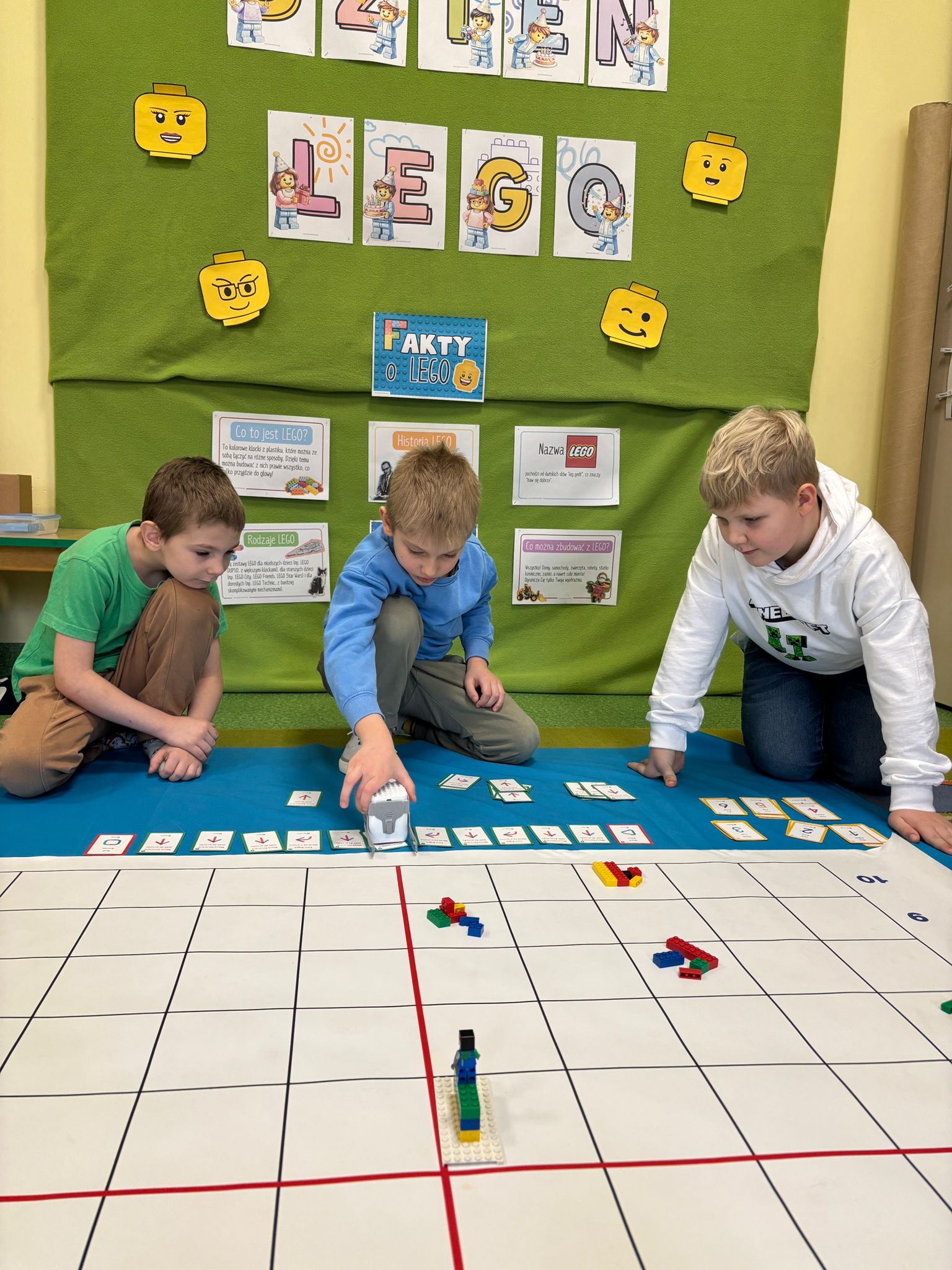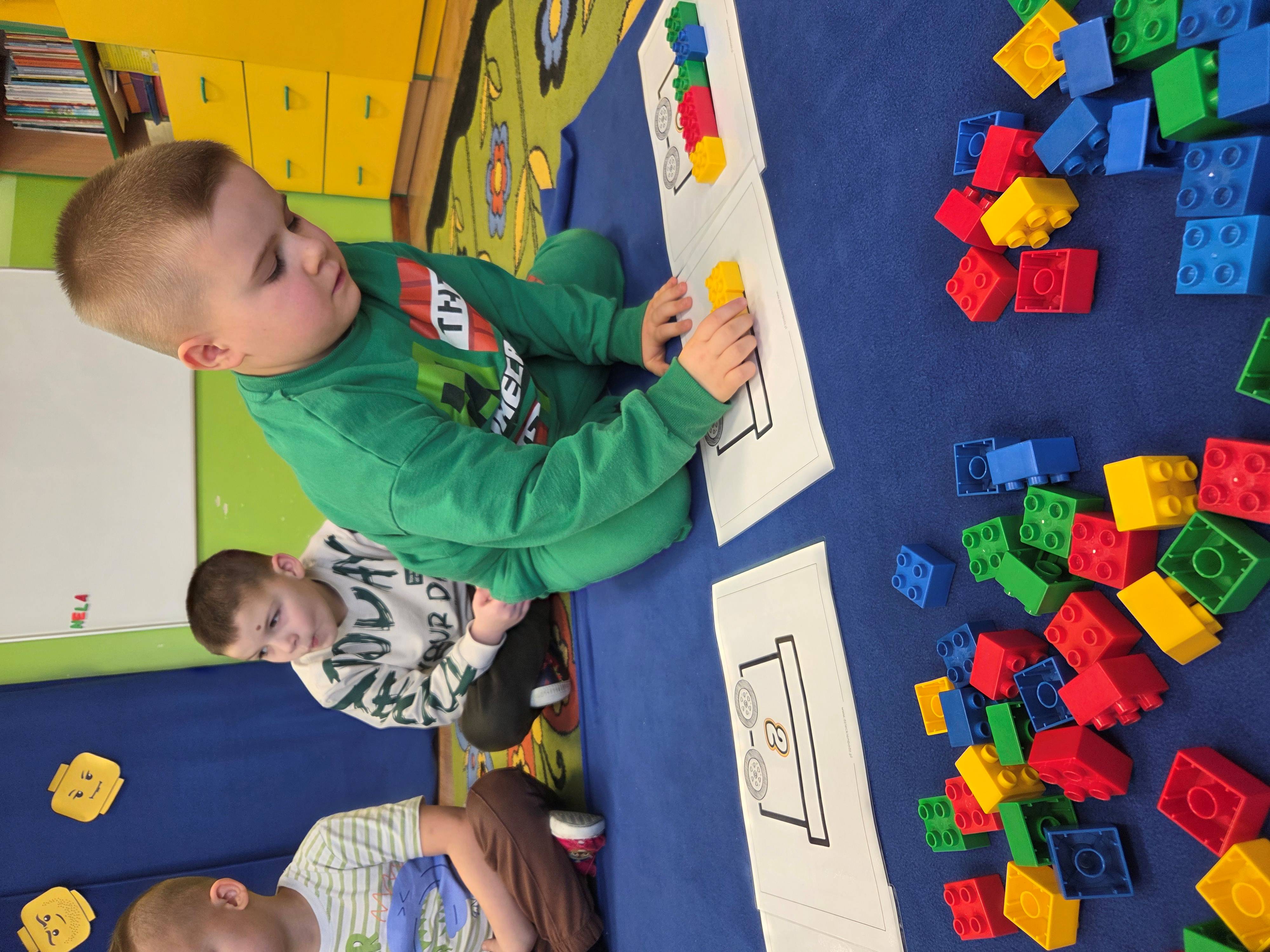 Z tej okazji nasze przedszkolaki wzięły udział w zajęciach dydaktycznych poświęconych właśnie klockom LEGO. Nie służyły one wyłącznie do konstruowania i budowania wspaniałych budowli. Były także wykorzystywane podczas zadań matematycznych, takich jak kodowanie z użyciem GeniBota, utrwalanie znajomości poznanych cyfr, układanie wyrazów z rozsypanych sylab oraz tworzenie prac plastycznych.