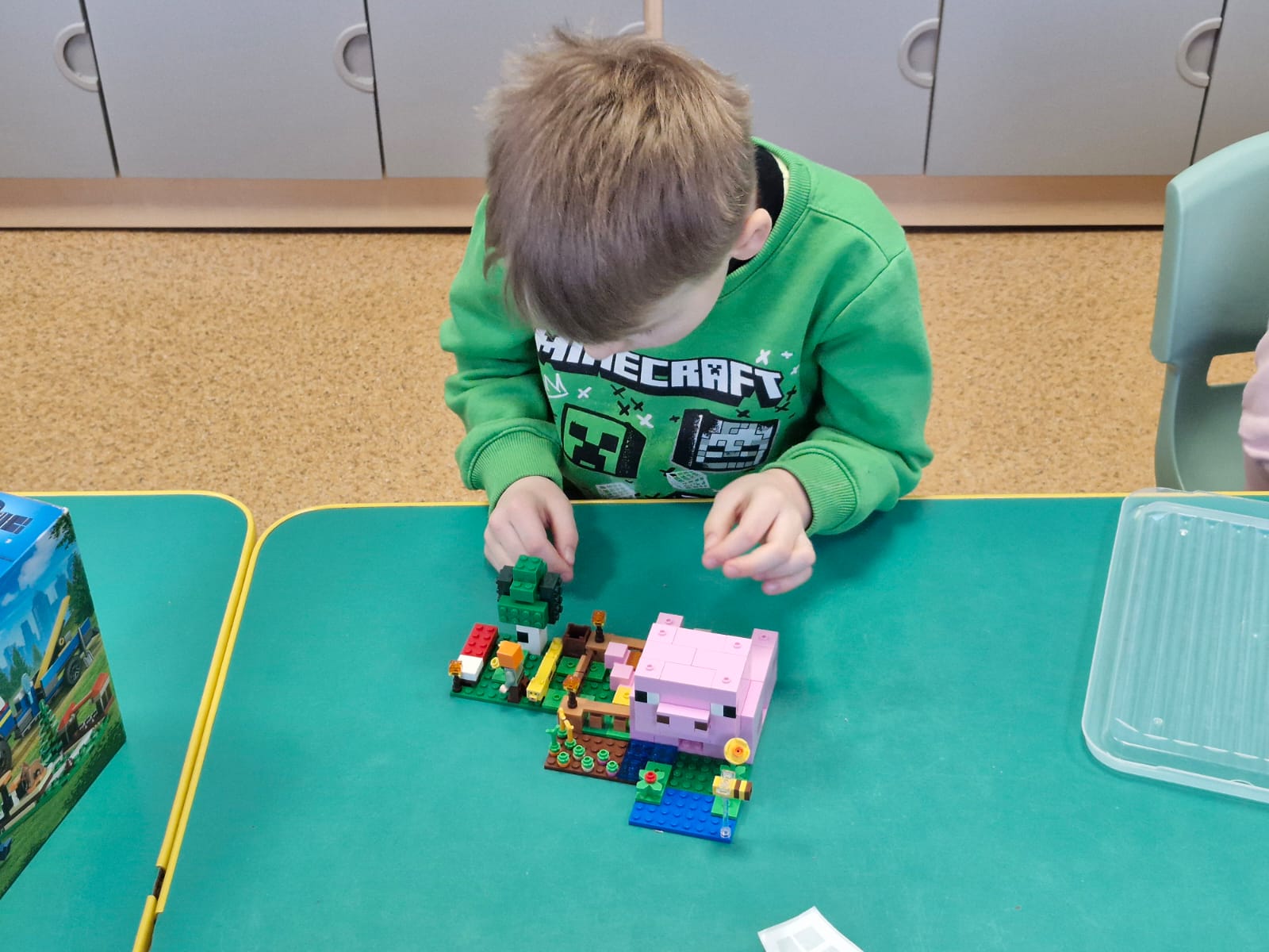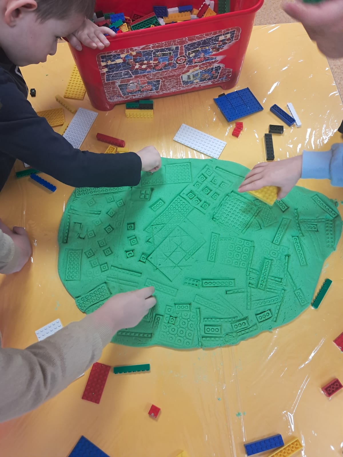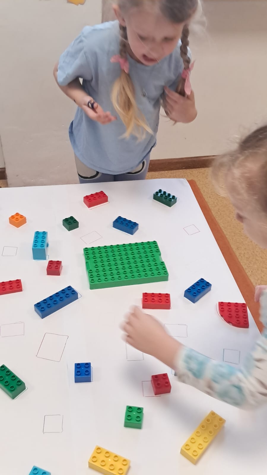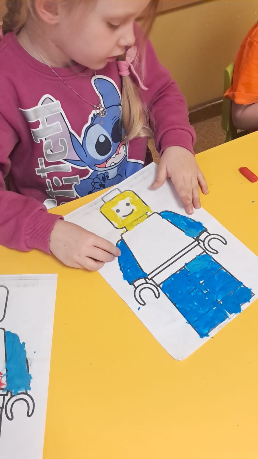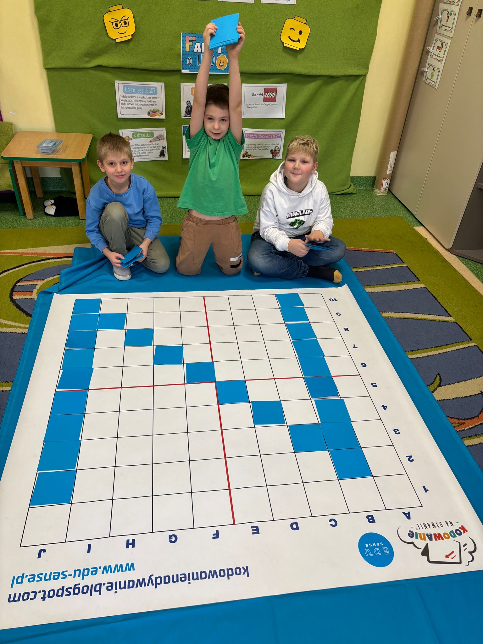 Z tej okazji nasze przedszkolaki wzięły udział w zajęciach dydaktycznych poświęconych właśnie klockom LEGO. Nie służyły one wyłącznie do konstruowania i budowania wspaniałych budowli. Były także wykorzystywane podczas zadań matematycznych, takich jak kodowanie z użyciem GeniBota, utrwalanie znajomości poznanych cyfr, układanie wyrazów z rozsypanych sylab oraz tworzenie prac plastycznych.