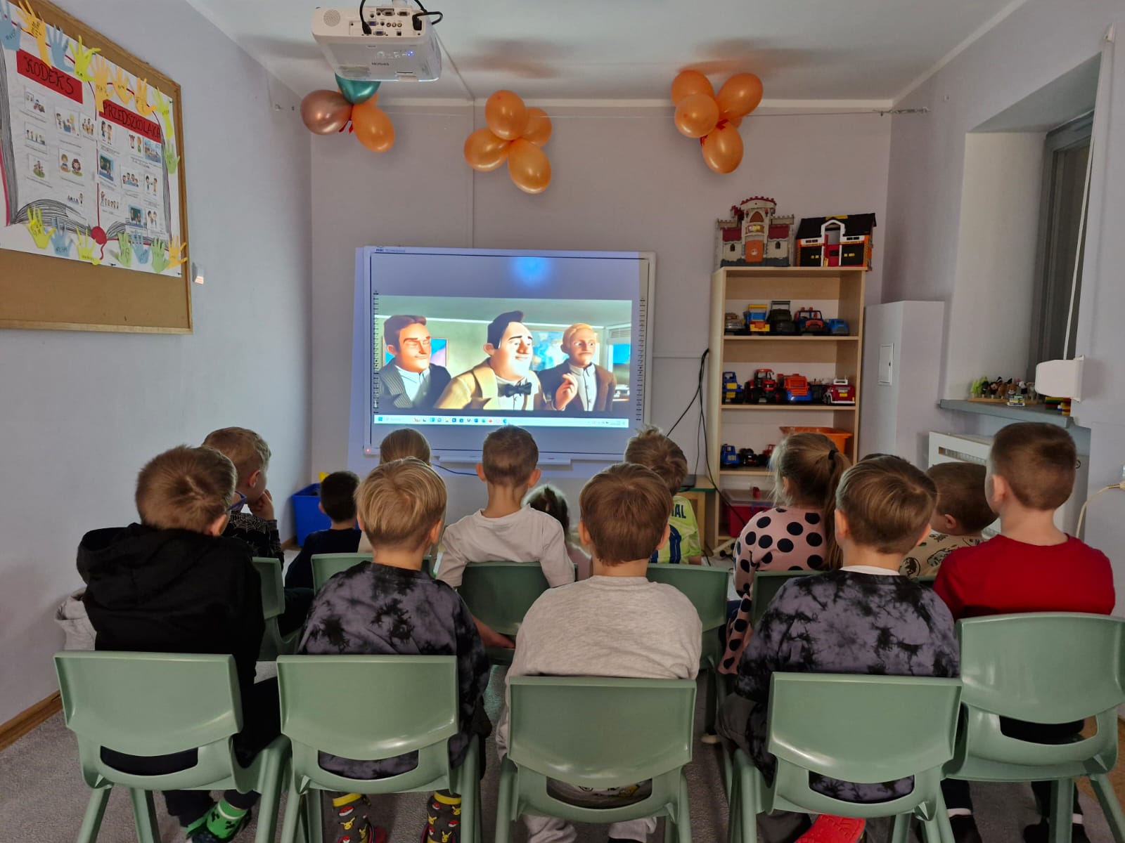 Dzieci obejrzały również filmy edukacyjne, dzięki którym dowiedziały się, w jaki sposób produkowane są klocki LEGO, skąd pochodzą oraz poznały wiele ciekawostek na ich temat. Ten dzień okazał się niezwykle atrakcyjny i sprawił przedszkolakom ogromną radość.