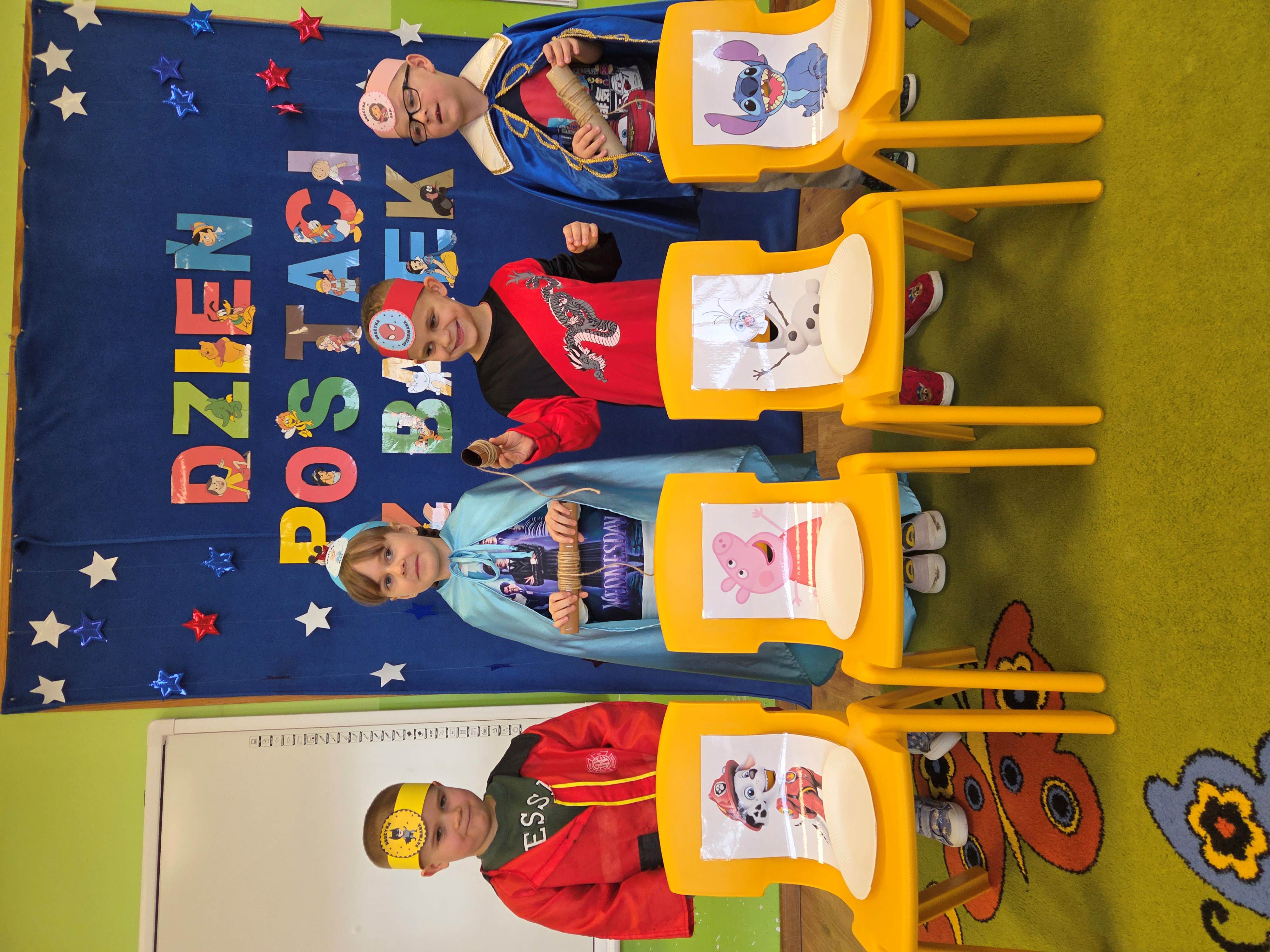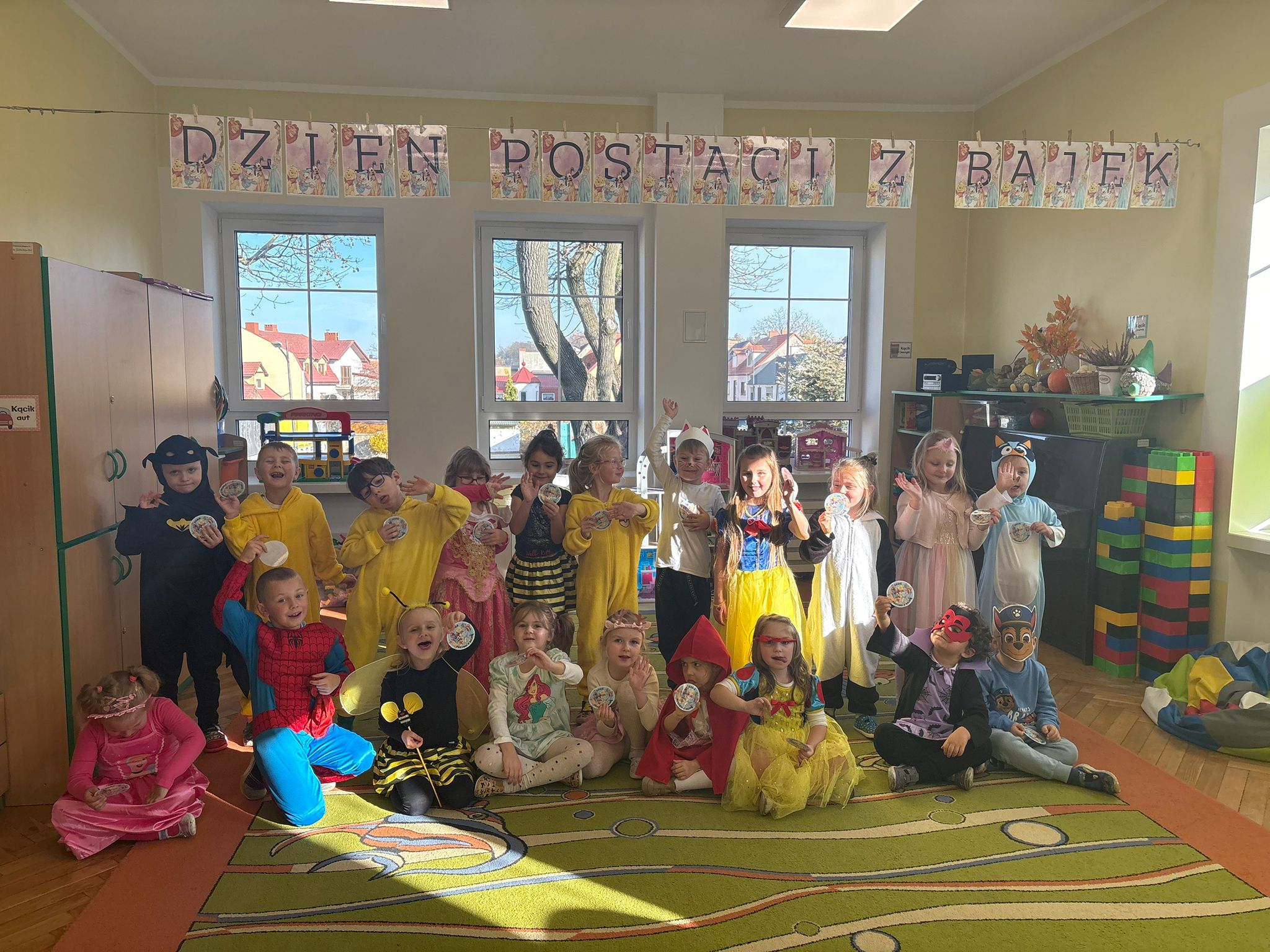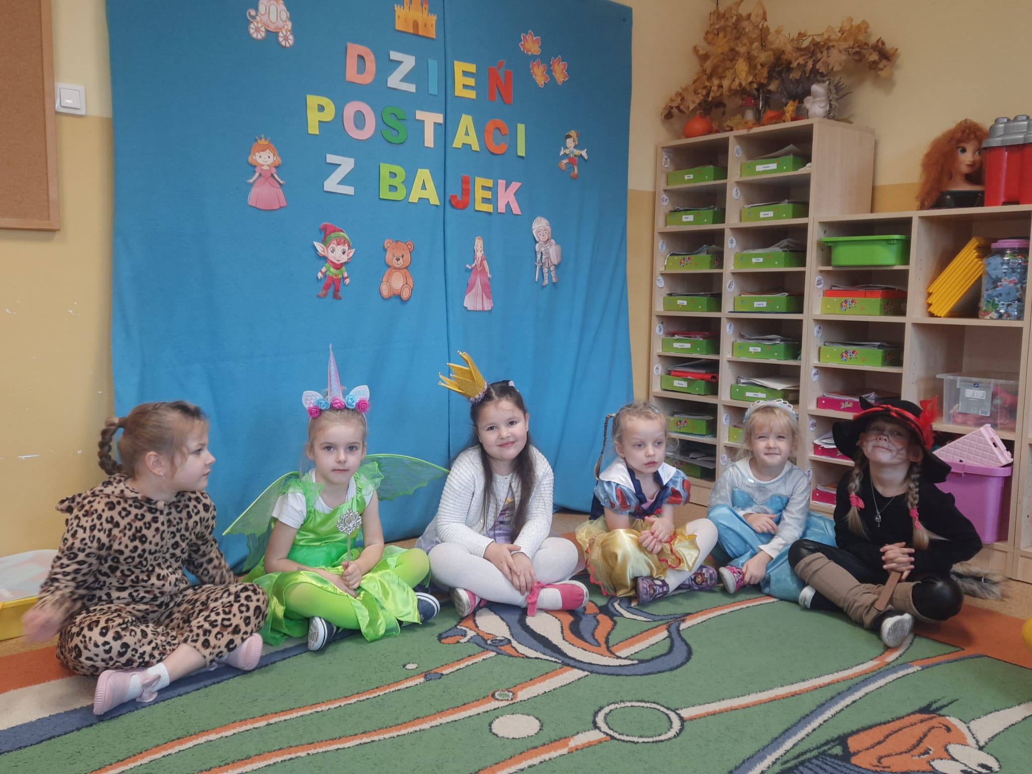 W tym dniu w naszym przedszkolu pojawiły się dzieci przebrane za swoich bajkowych ulubieńców. Przedszkolaki słuchały fragmentów bajek, rozwiązywały zagadki, rozpoznawały rekwizyty z bajek oraz kolorowały bajkowe postacie. Nie zabrakło tańców i zabaw przy wesołych piosenkach znanych również z ulubionych bajek. Dzień ten był wyjątkowy, pełen radości i uśmiechu, wszystko to możliwe było dzięki magicznej mocy jaką niosą ze sobą bajki.