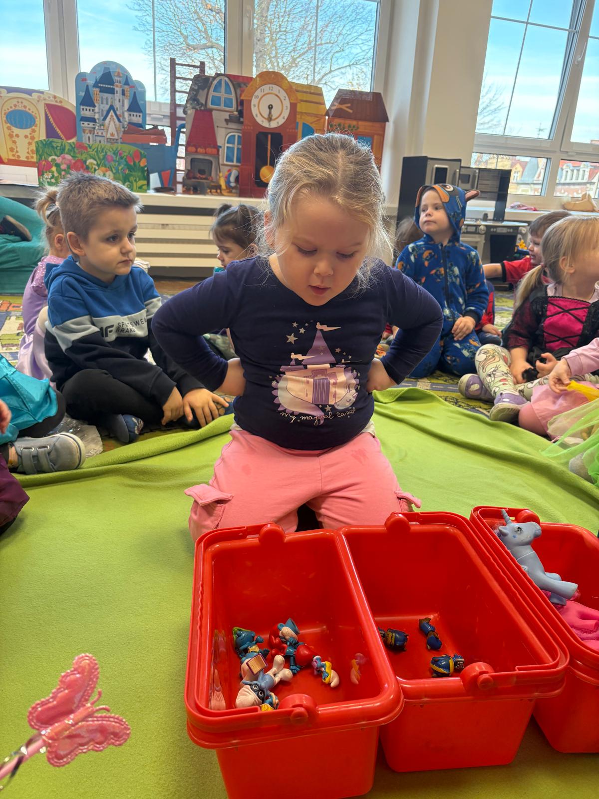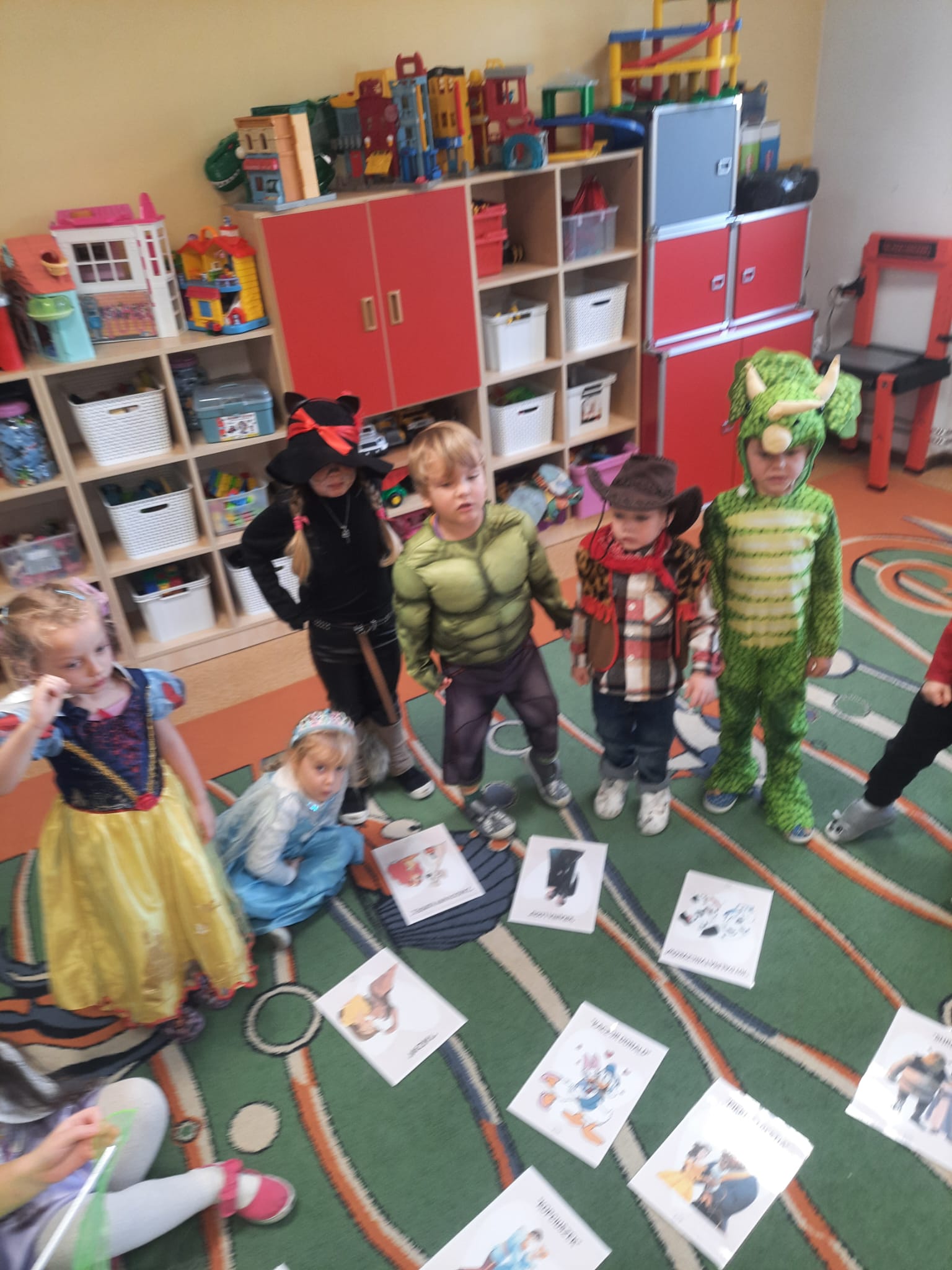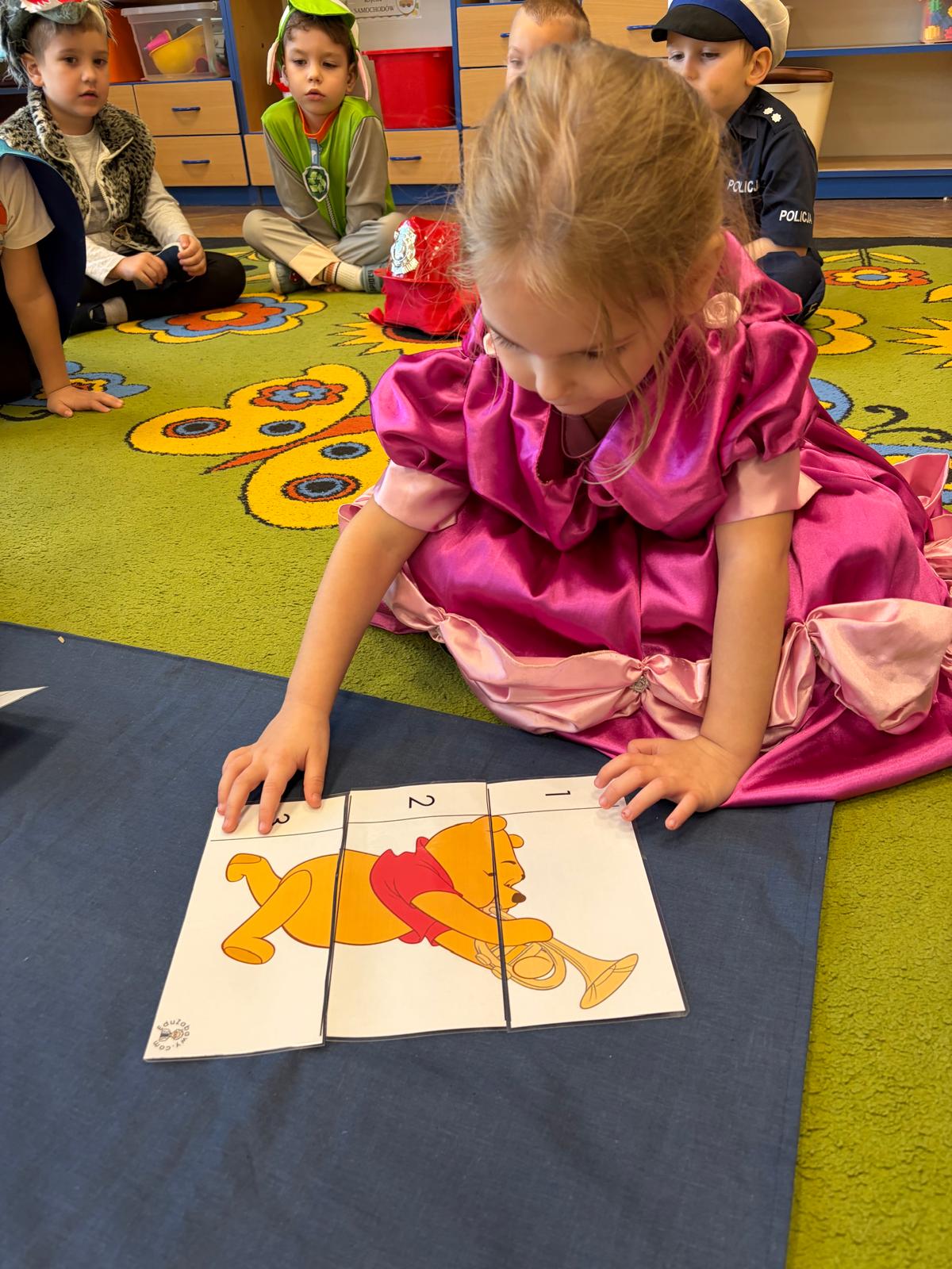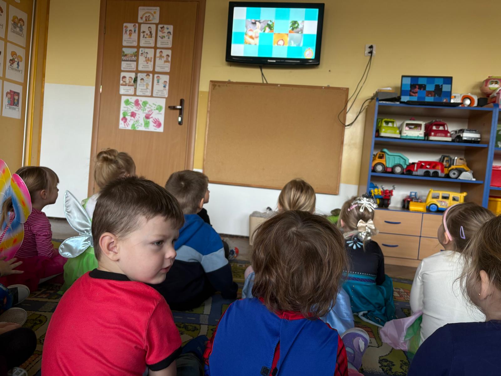 W tym dniu w naszym przedszkolu pojawiły się dzieci przebrane za swoich bajkowych ulubieńców. Przedszkolaki słuchały fragmentów bajek, rozwiązywały zagadki, rozpoznawały rekwizyty z bajek oraz kolorowały bajkowe postacie. Nie zabrakło tańców i zabaw przy wesołych piosenkach znanych również z ulubionych bajek. Dzień ten był wyjątkowy, pełen radości i uśmiechu, wszystko to możliwe było dzięki magicznej mocy jaką niosą ze sobą bajki.