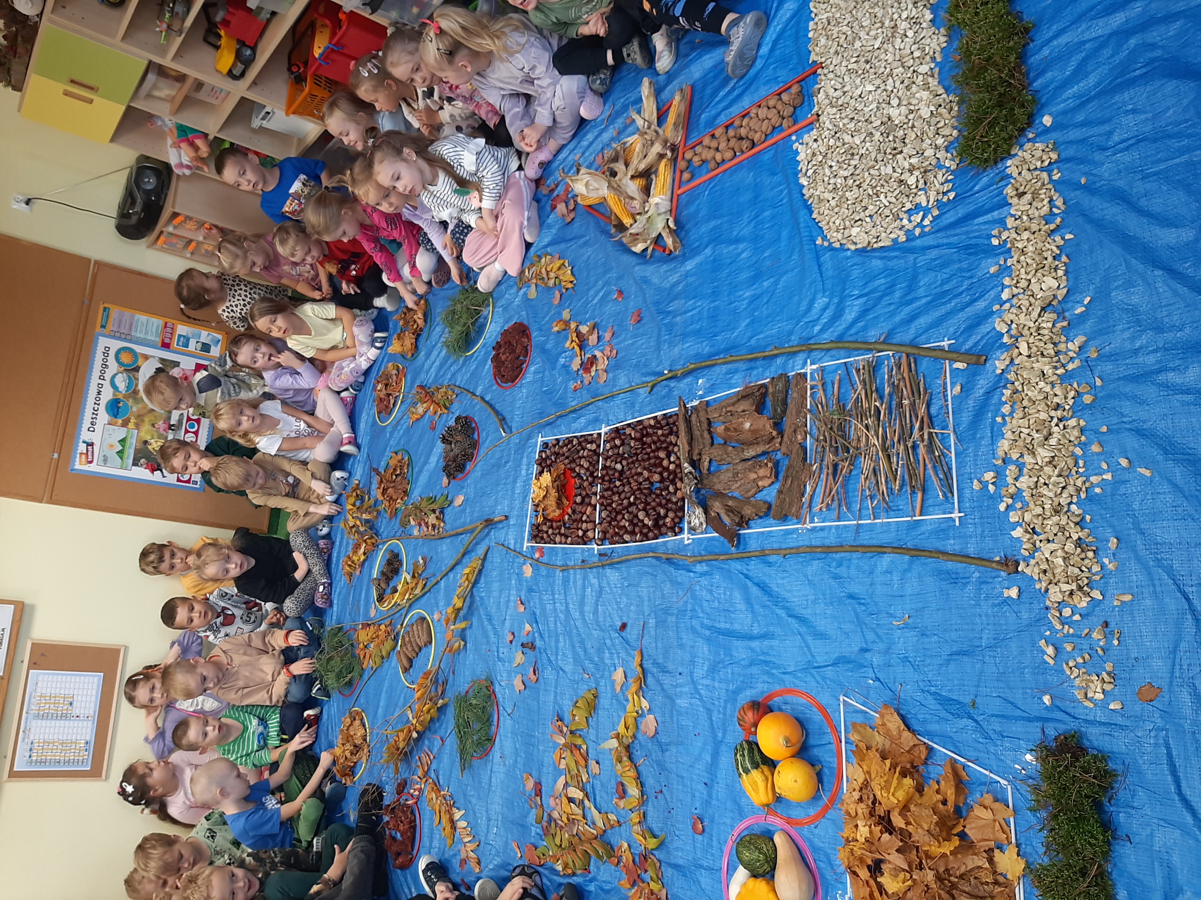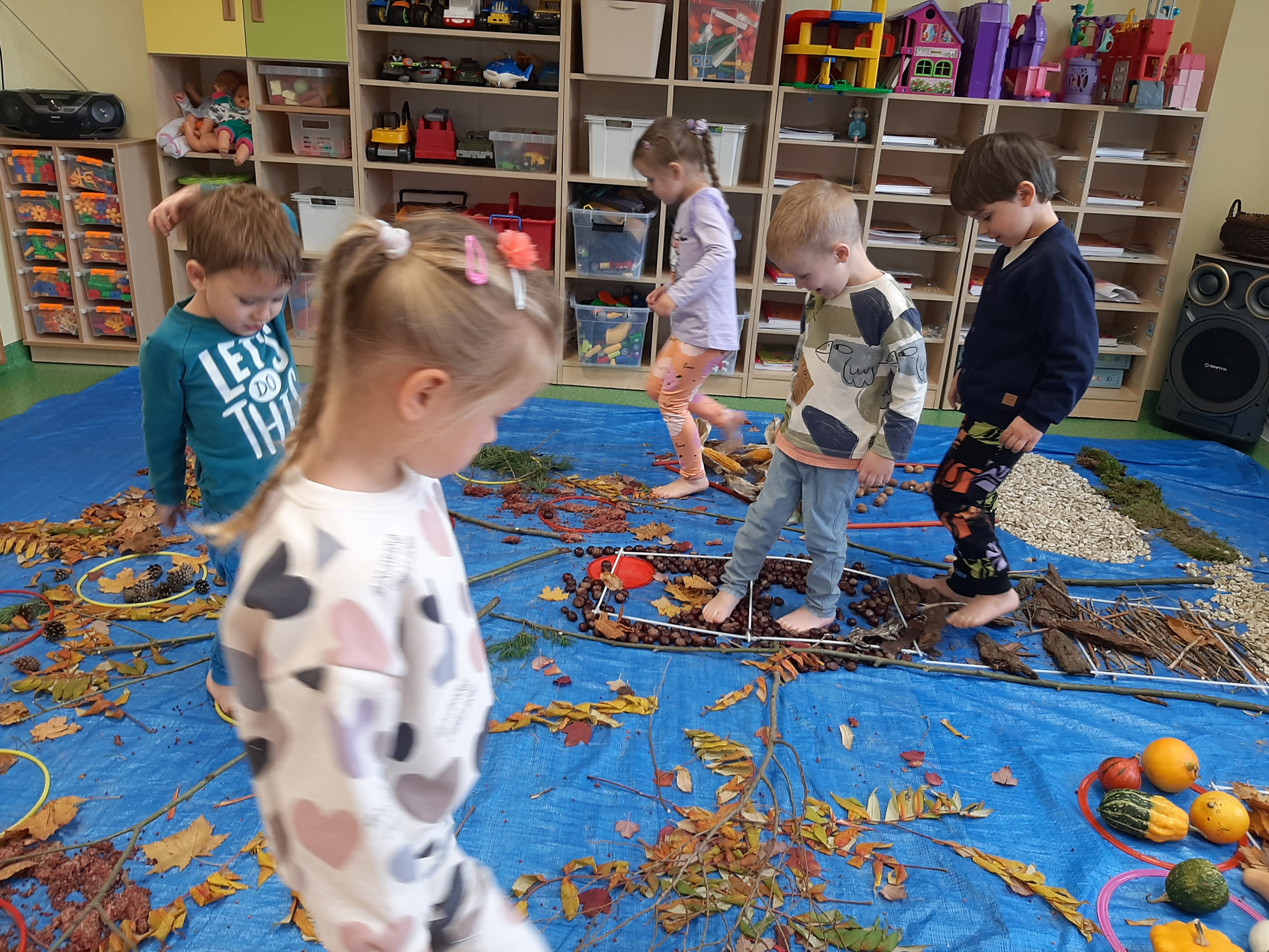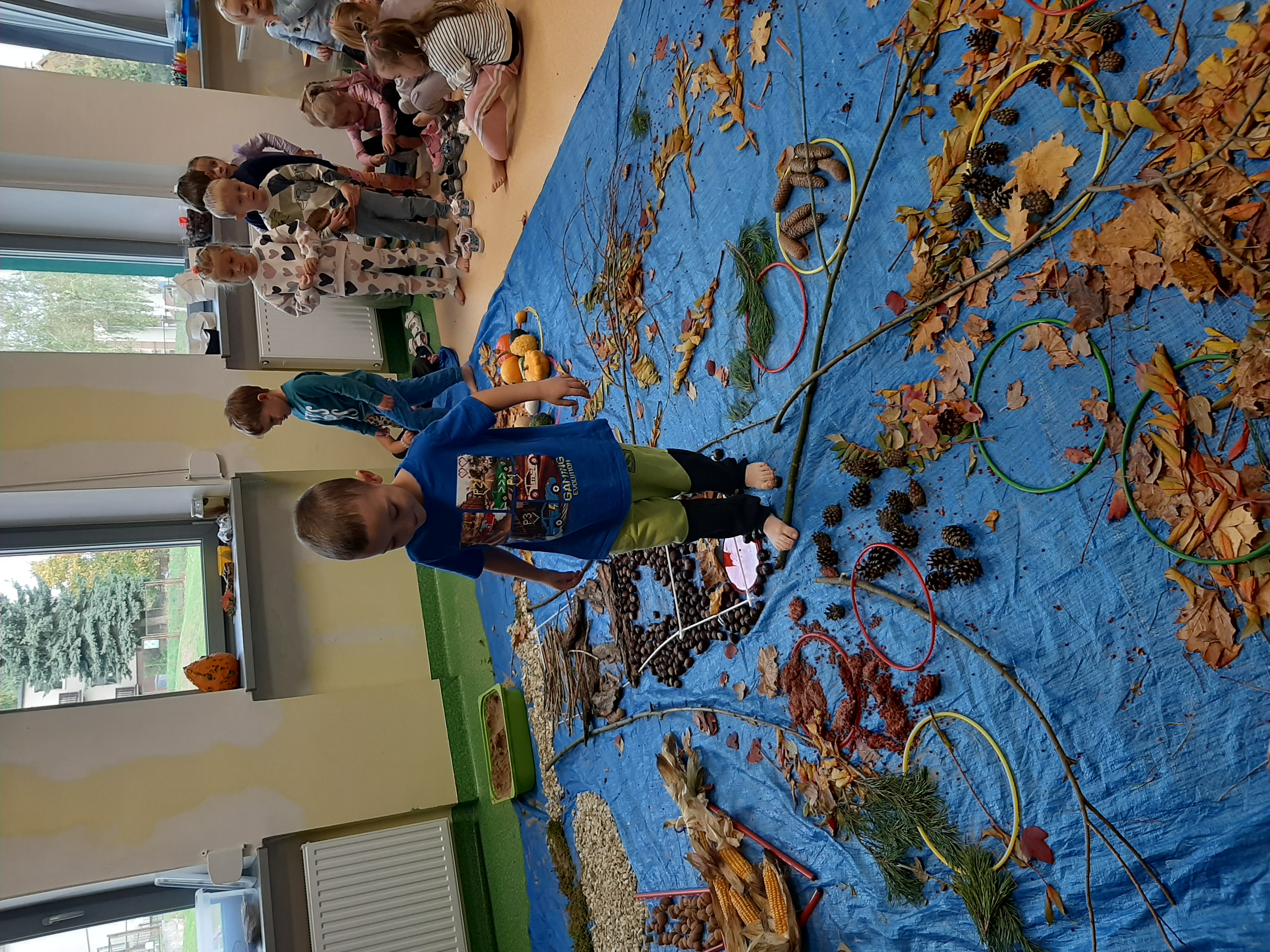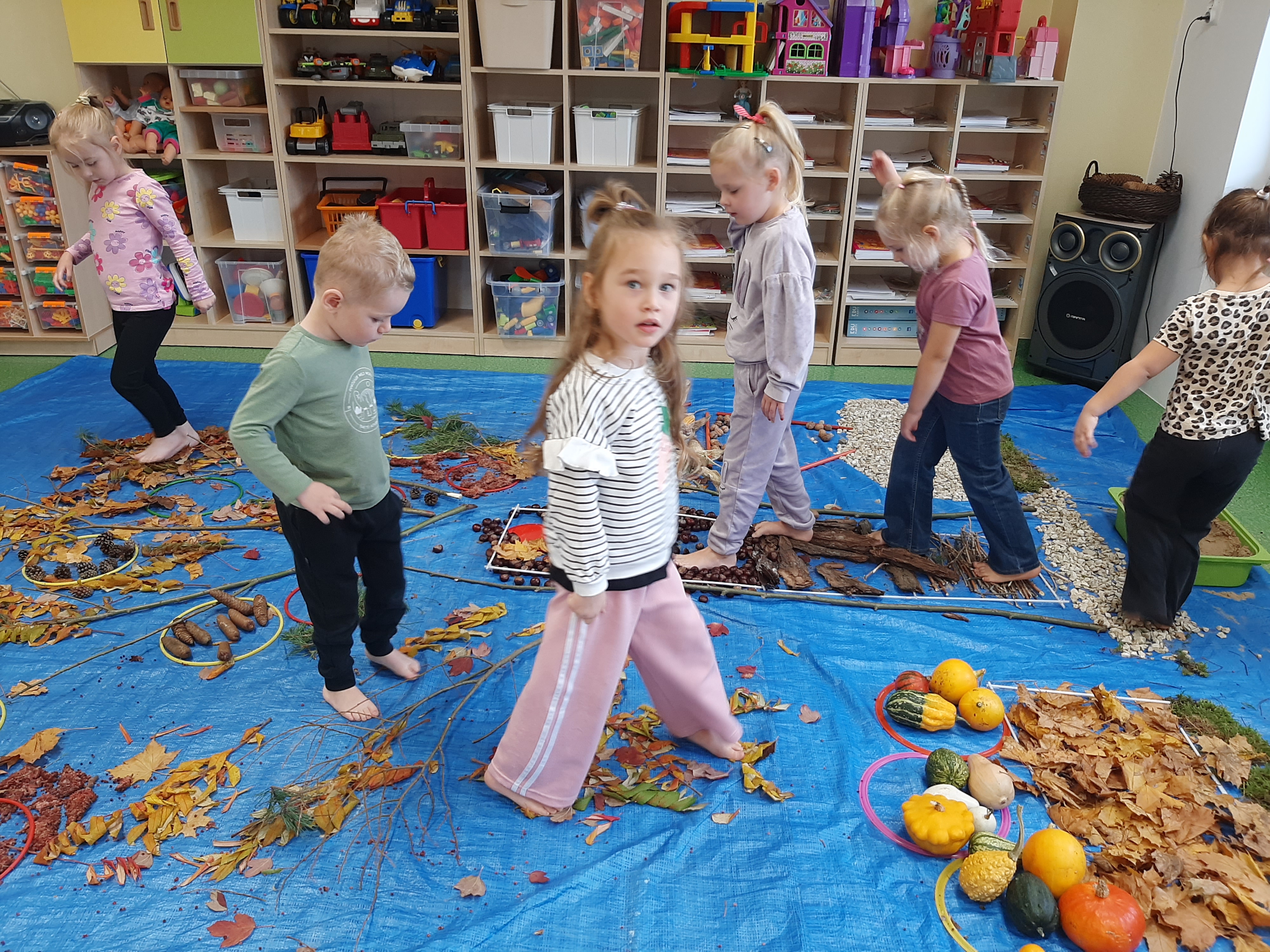 Geometryczny krajobraz z wykorzystaniem skarbów jesieni - ścieżka sensoryczna 22.10.2025r.