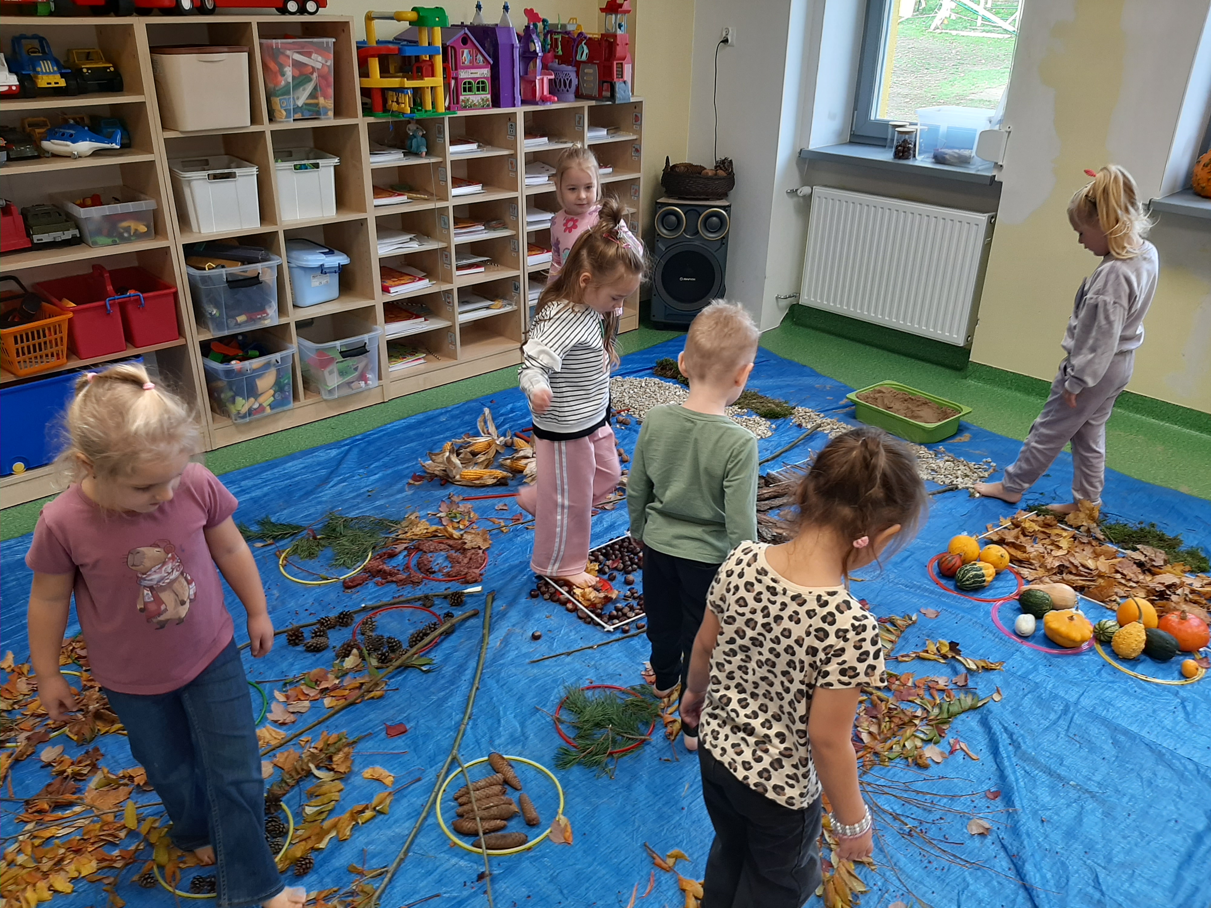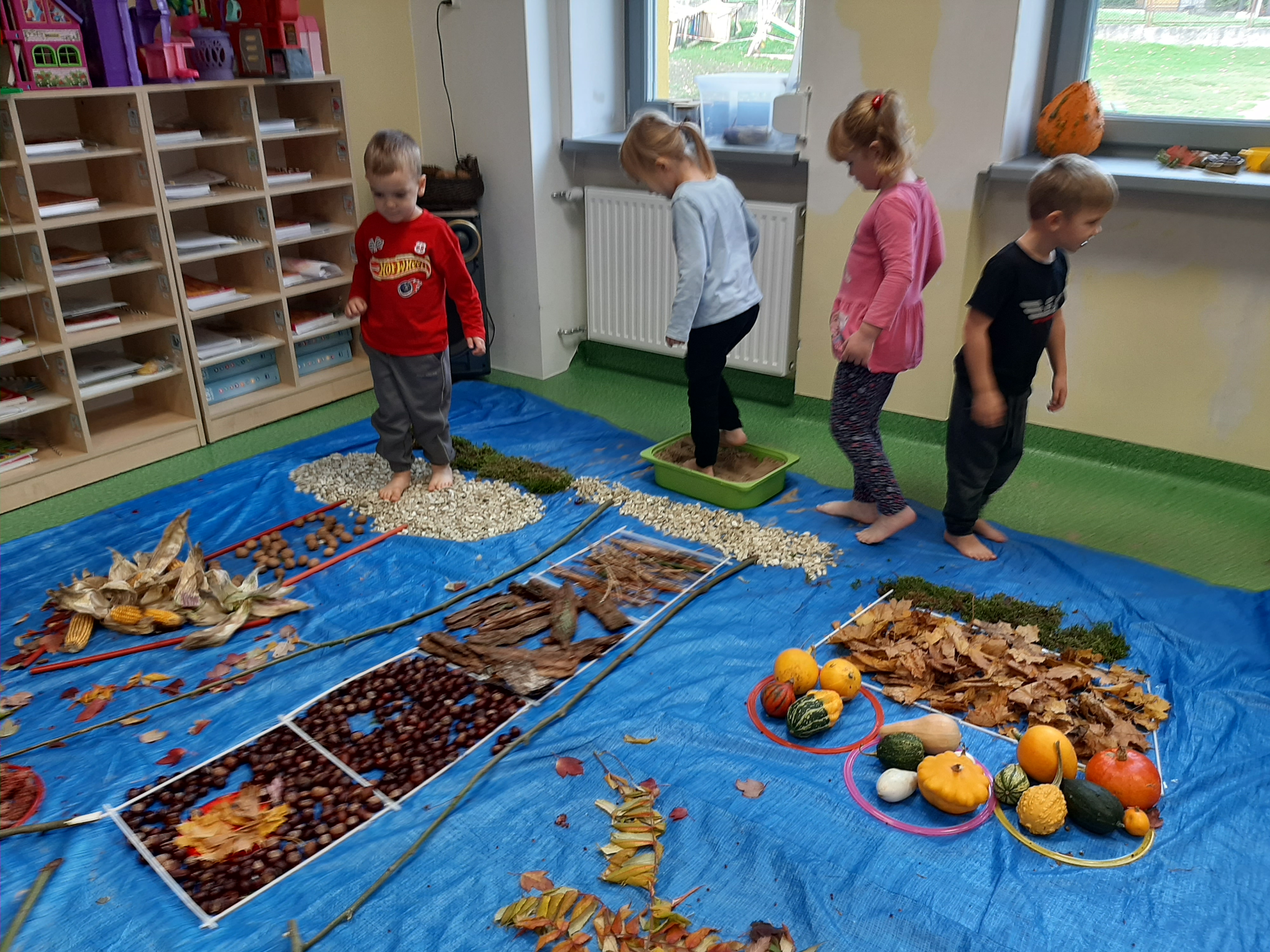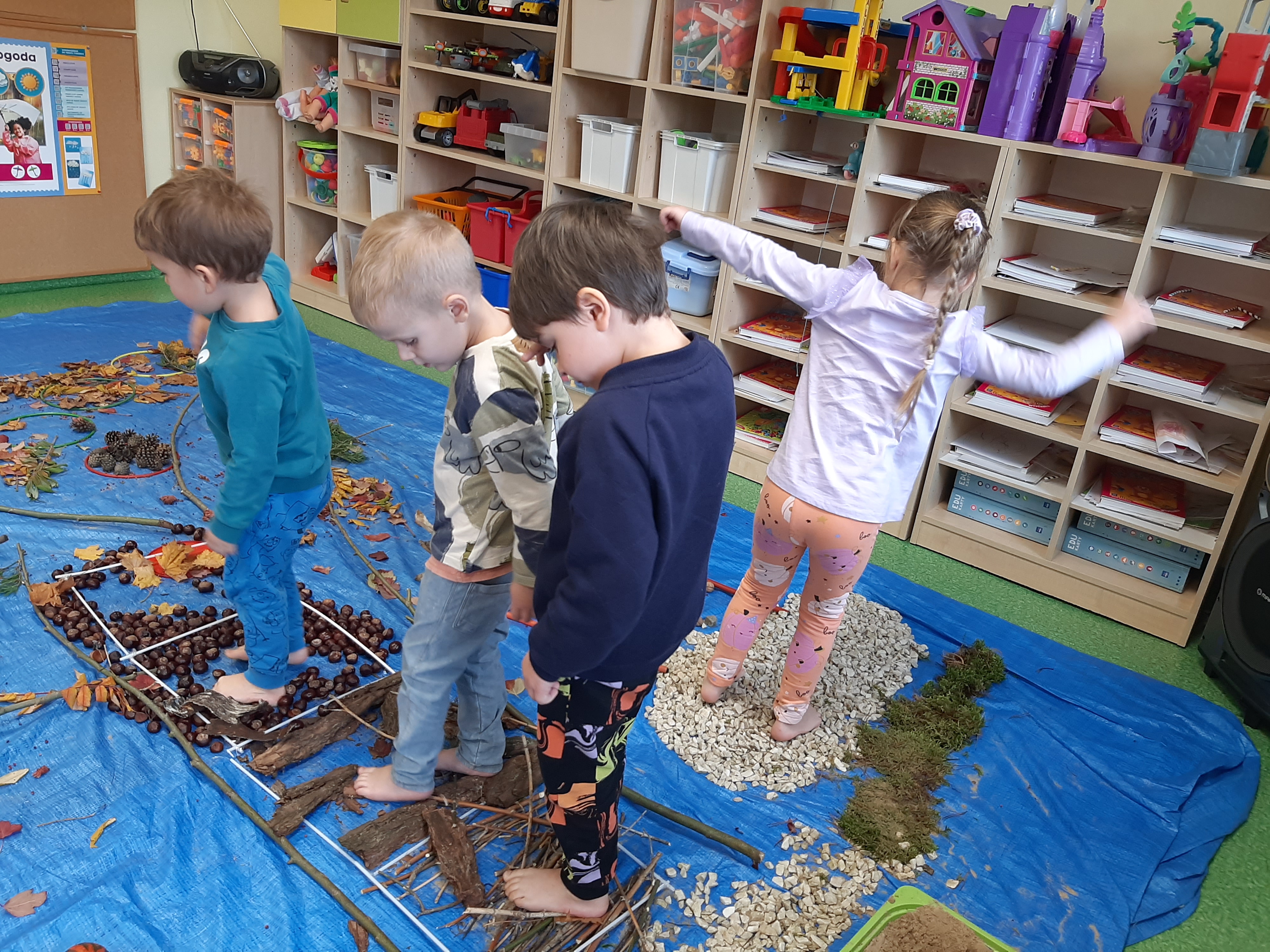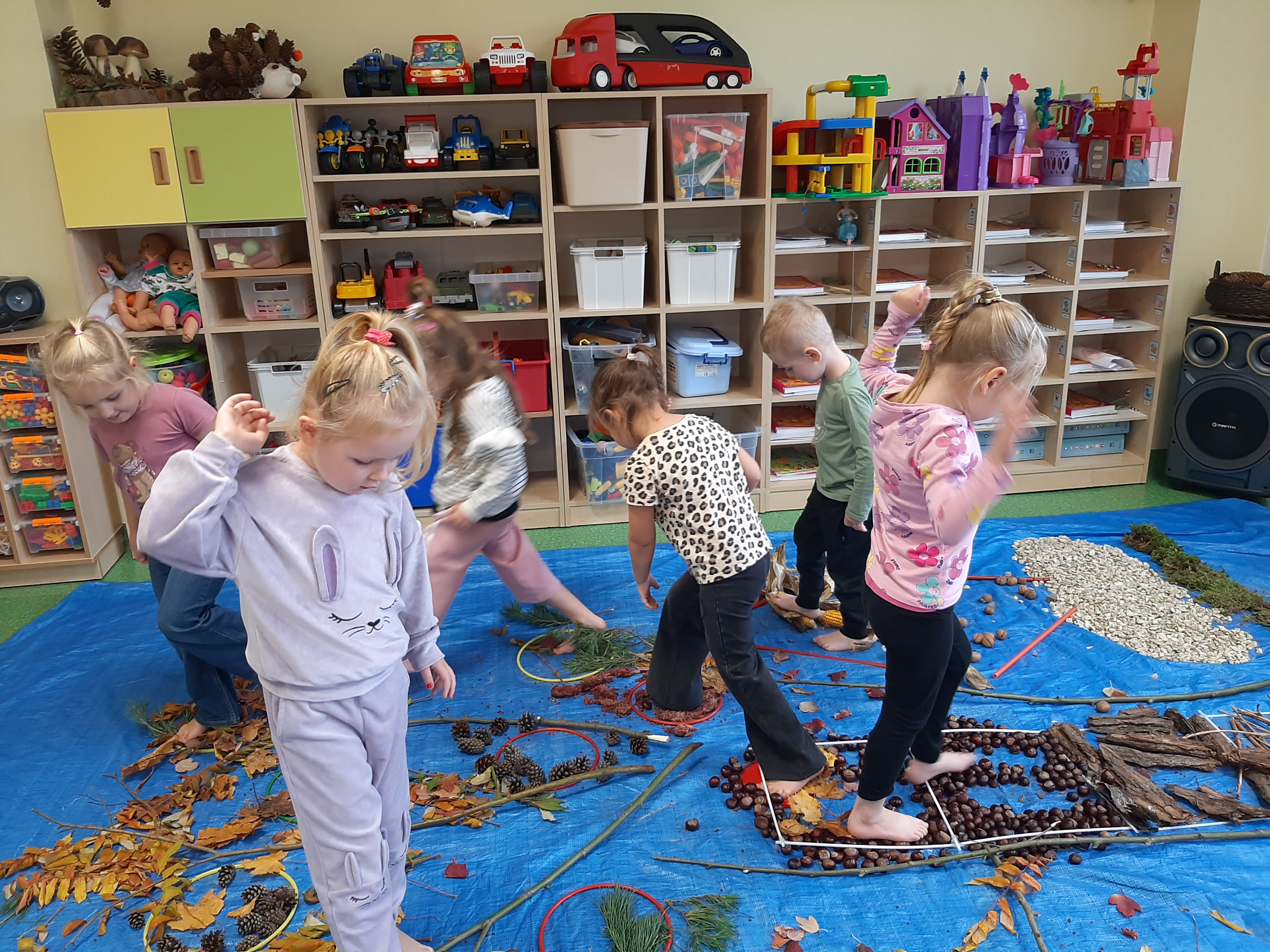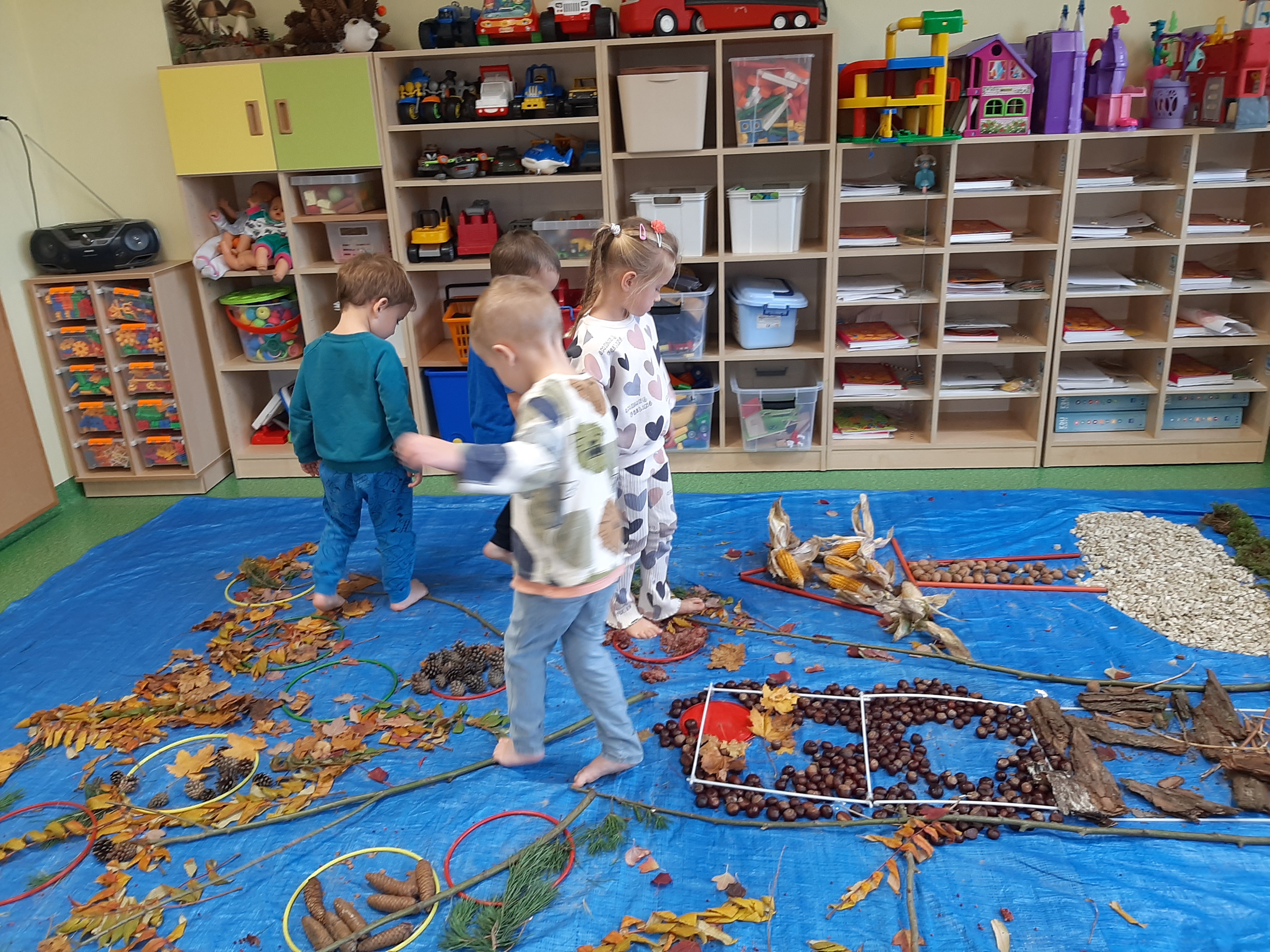 Geometryczny krajobraz z wykorzystaniem skarbów jesieni - ścieżka sensoryczna 22.10.2025r.