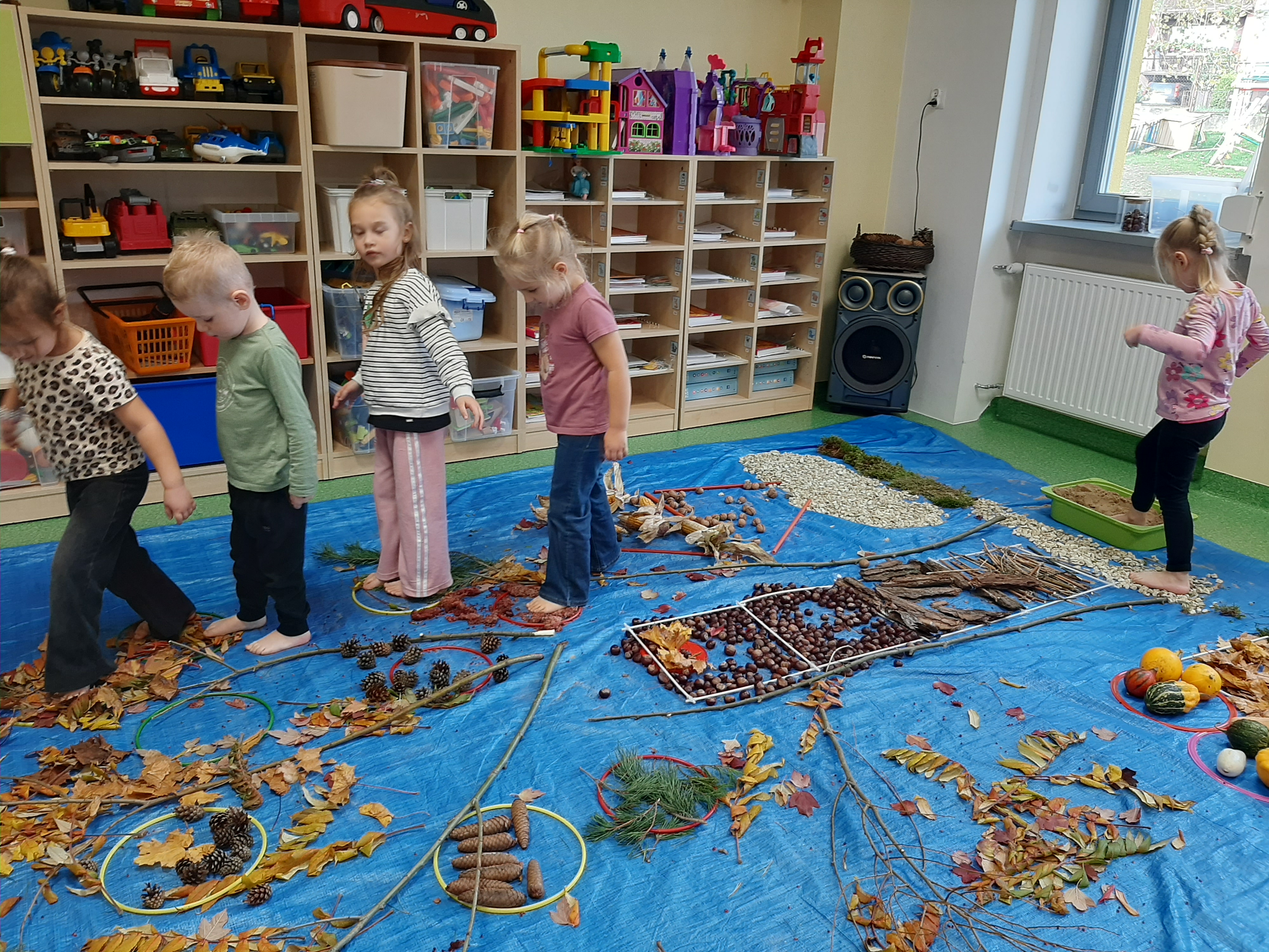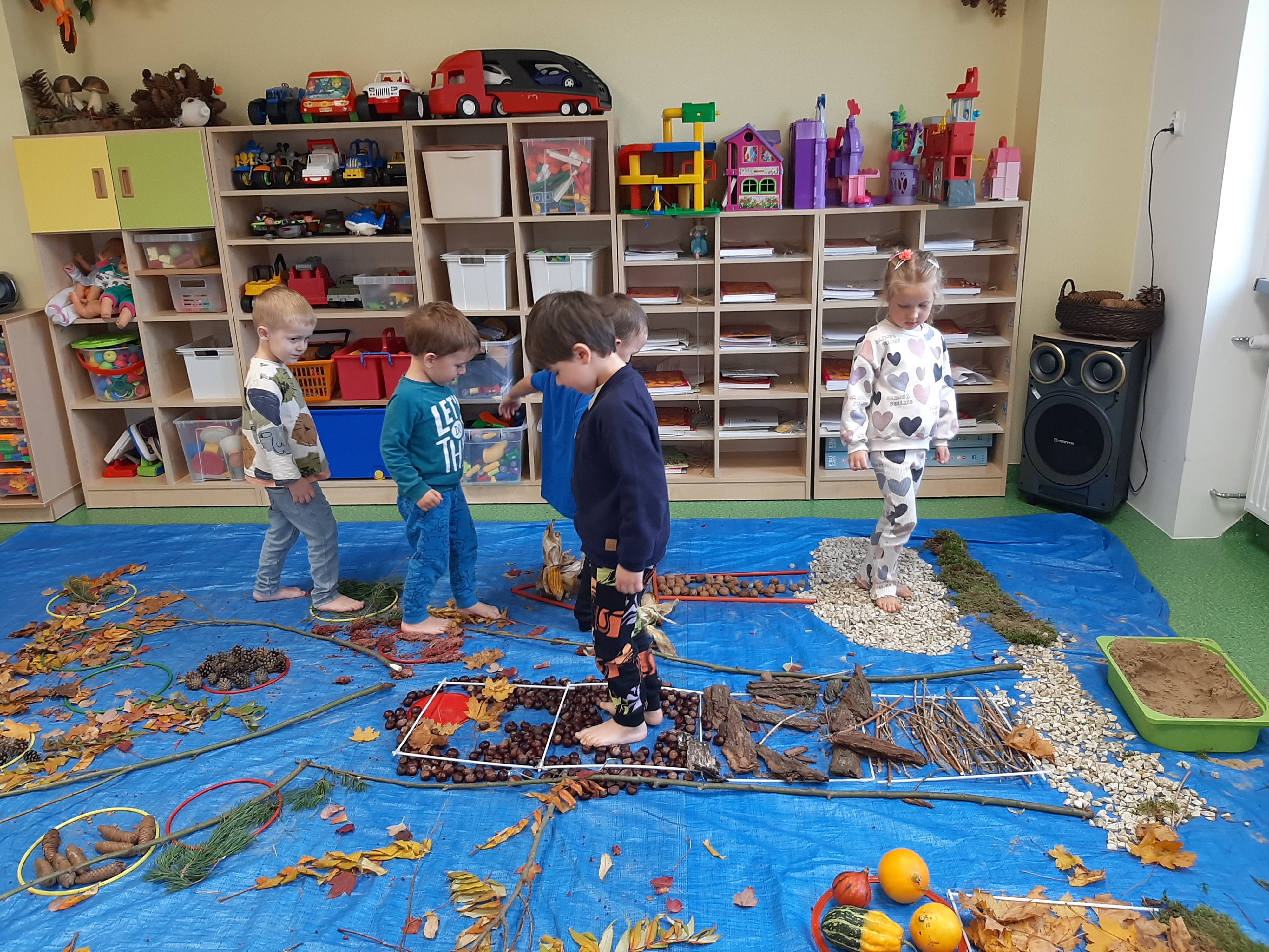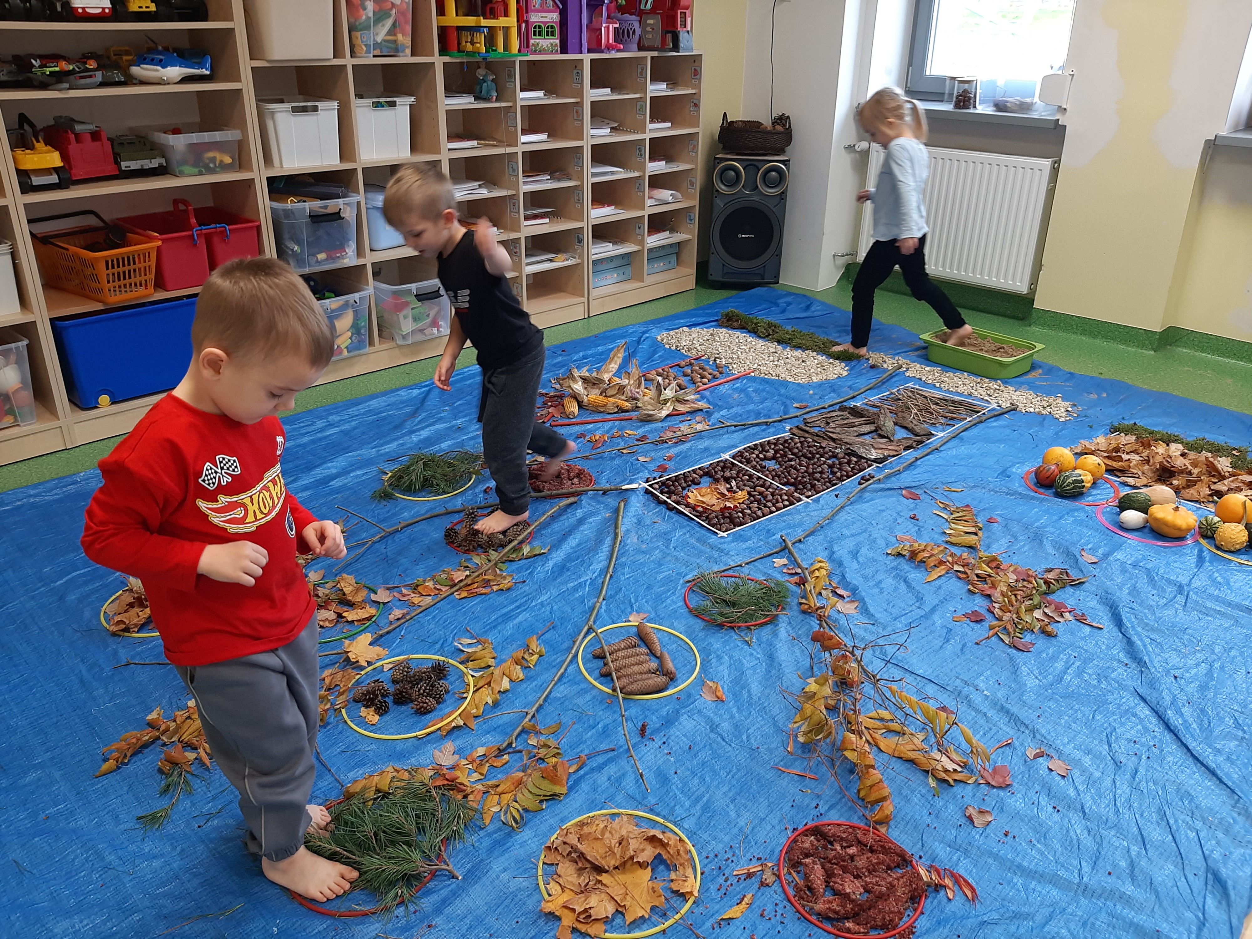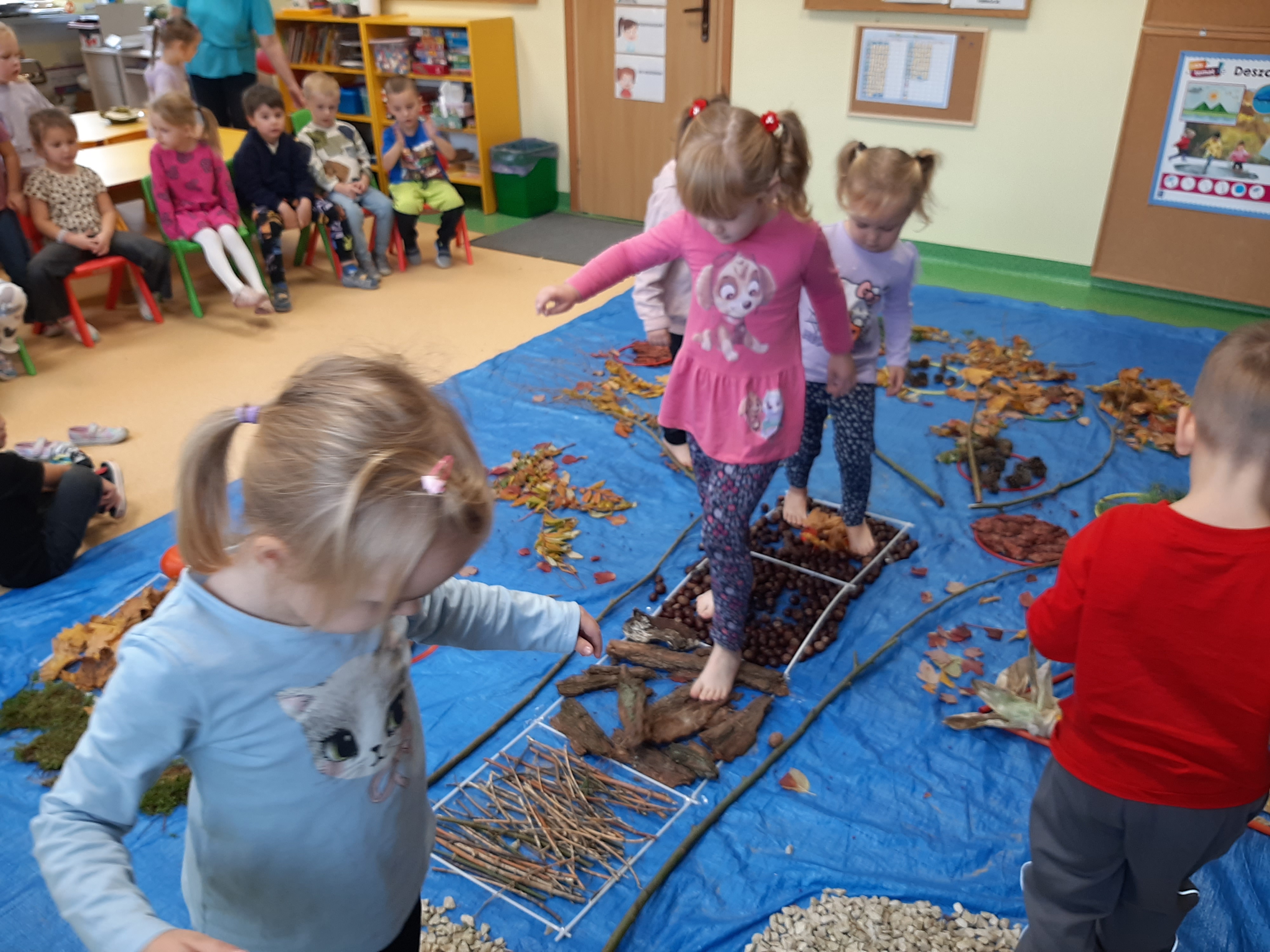 Geometryczny krajobraz z wykorzystaniem skarbów jesieni - ścieżka sensoryczna 22.10.2025r.