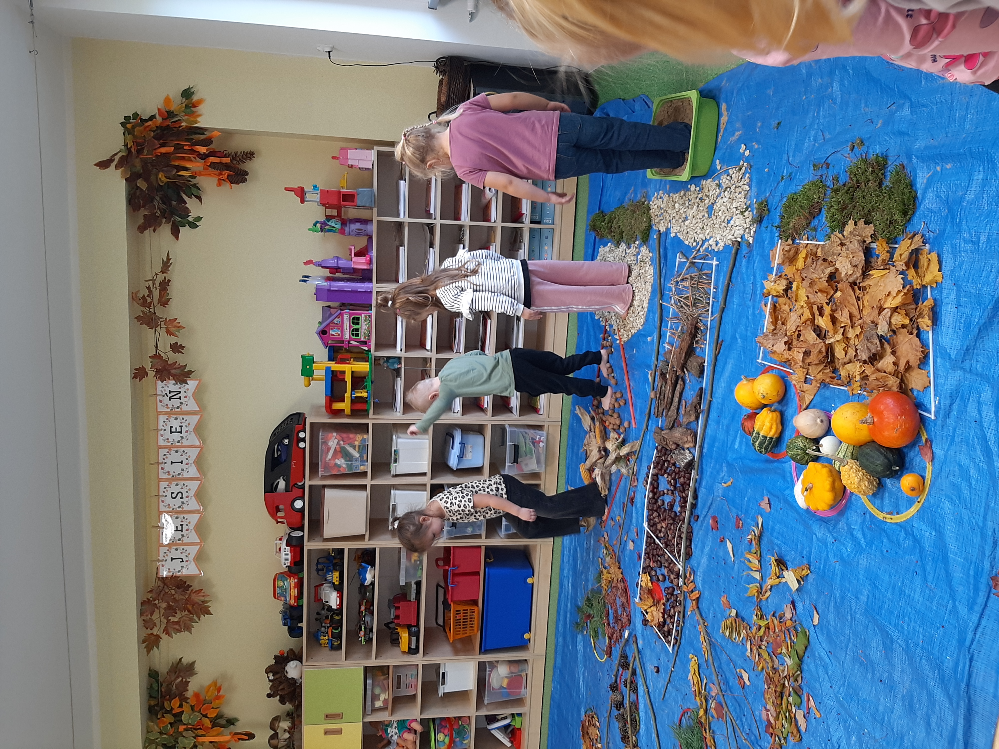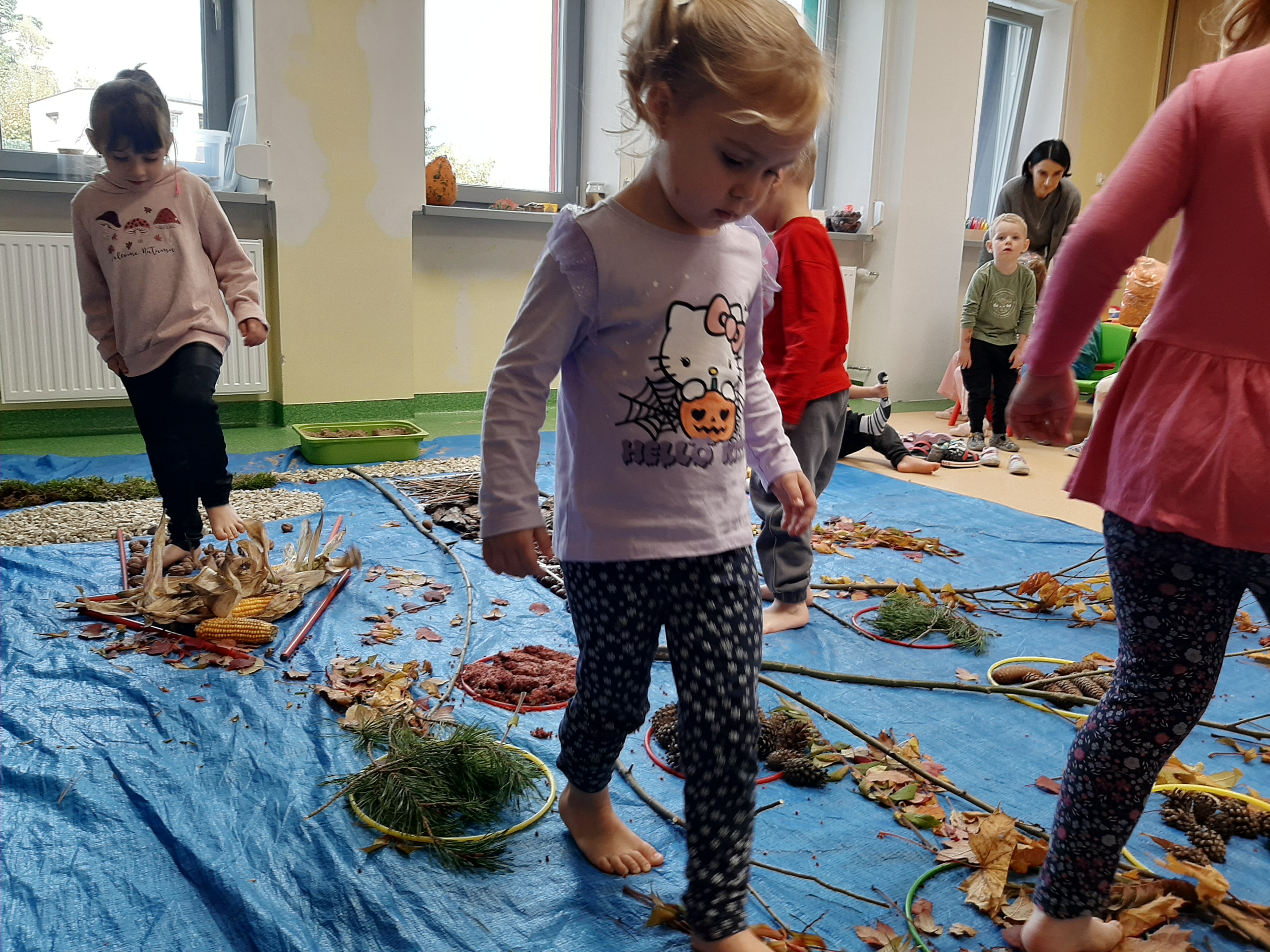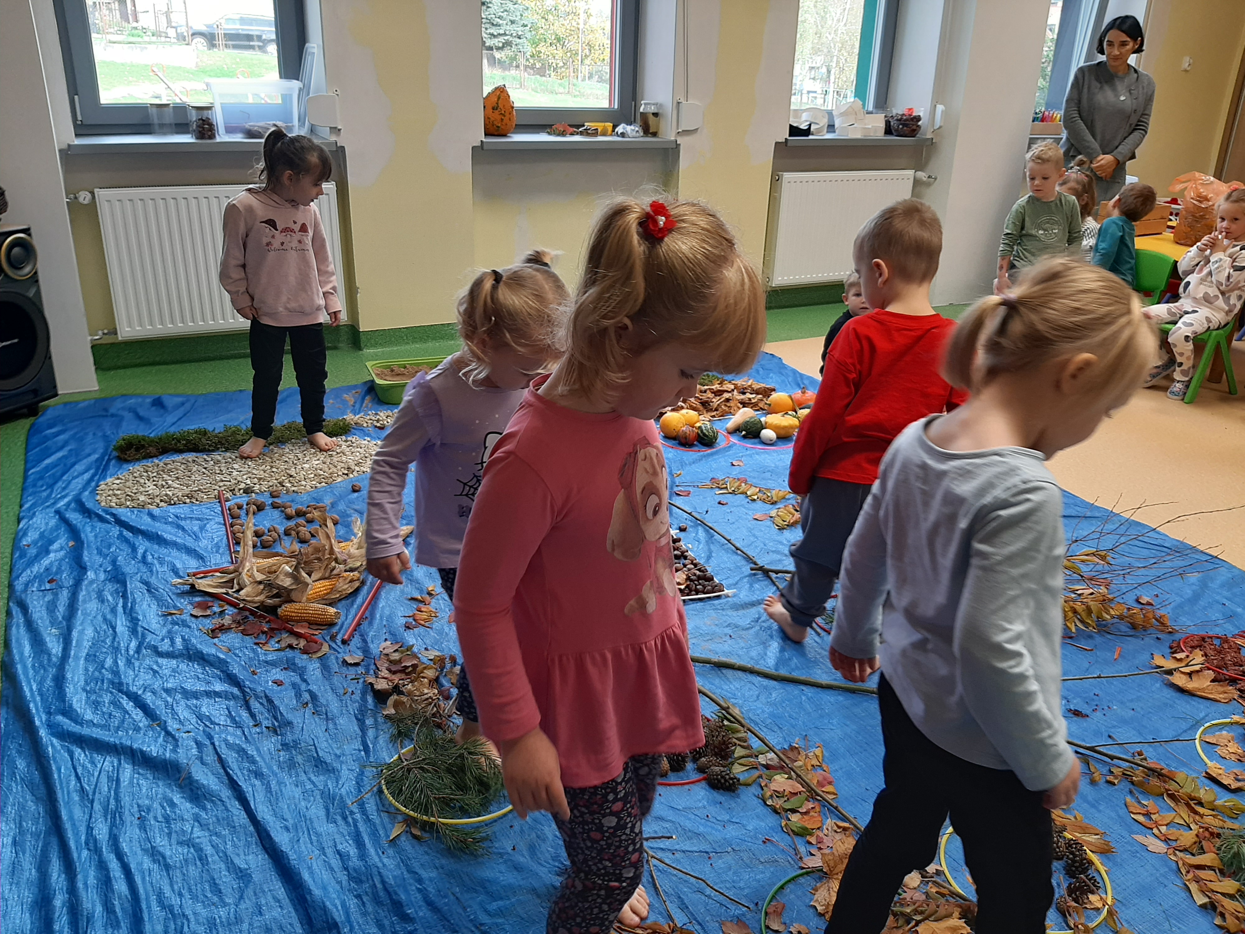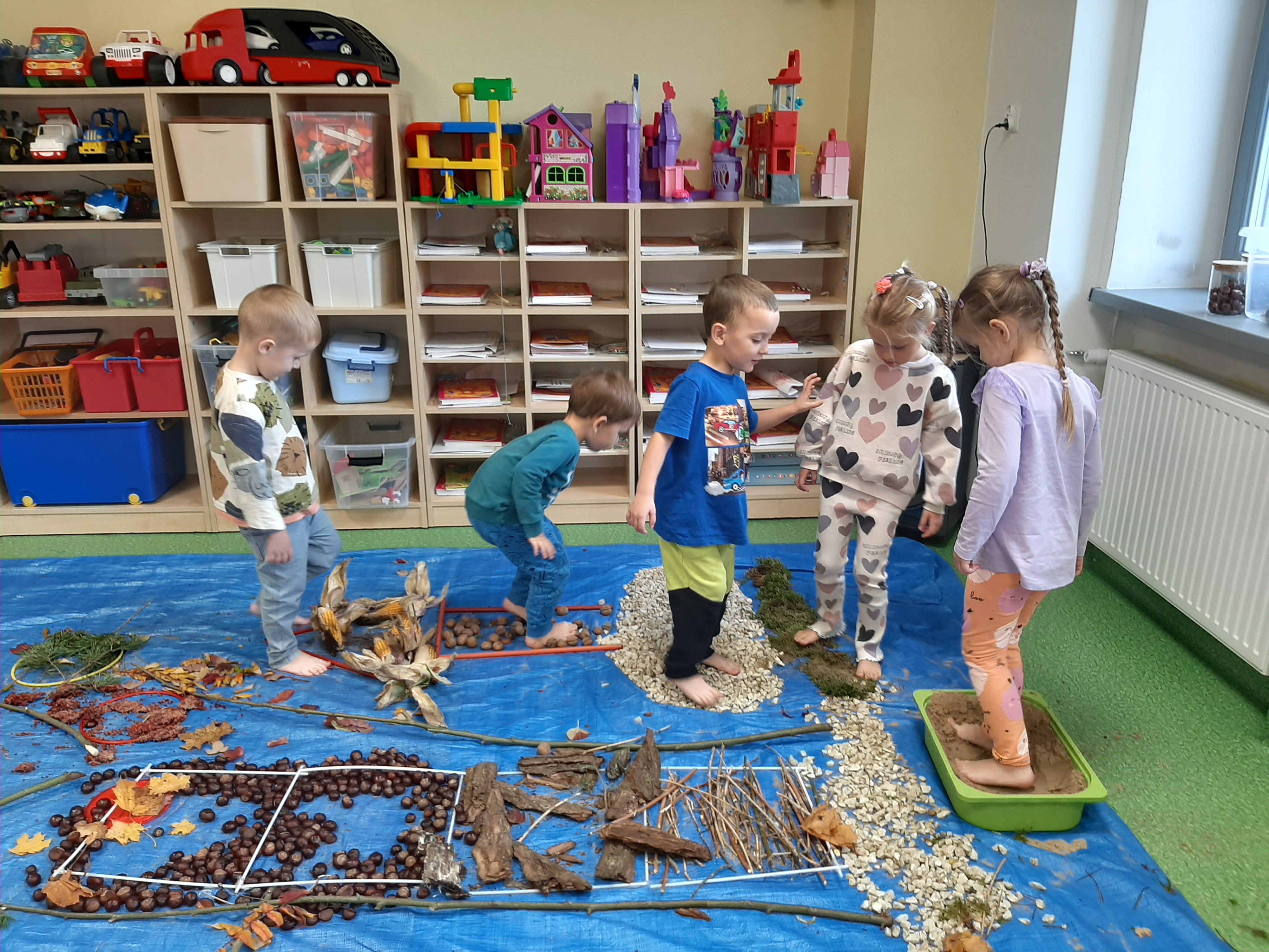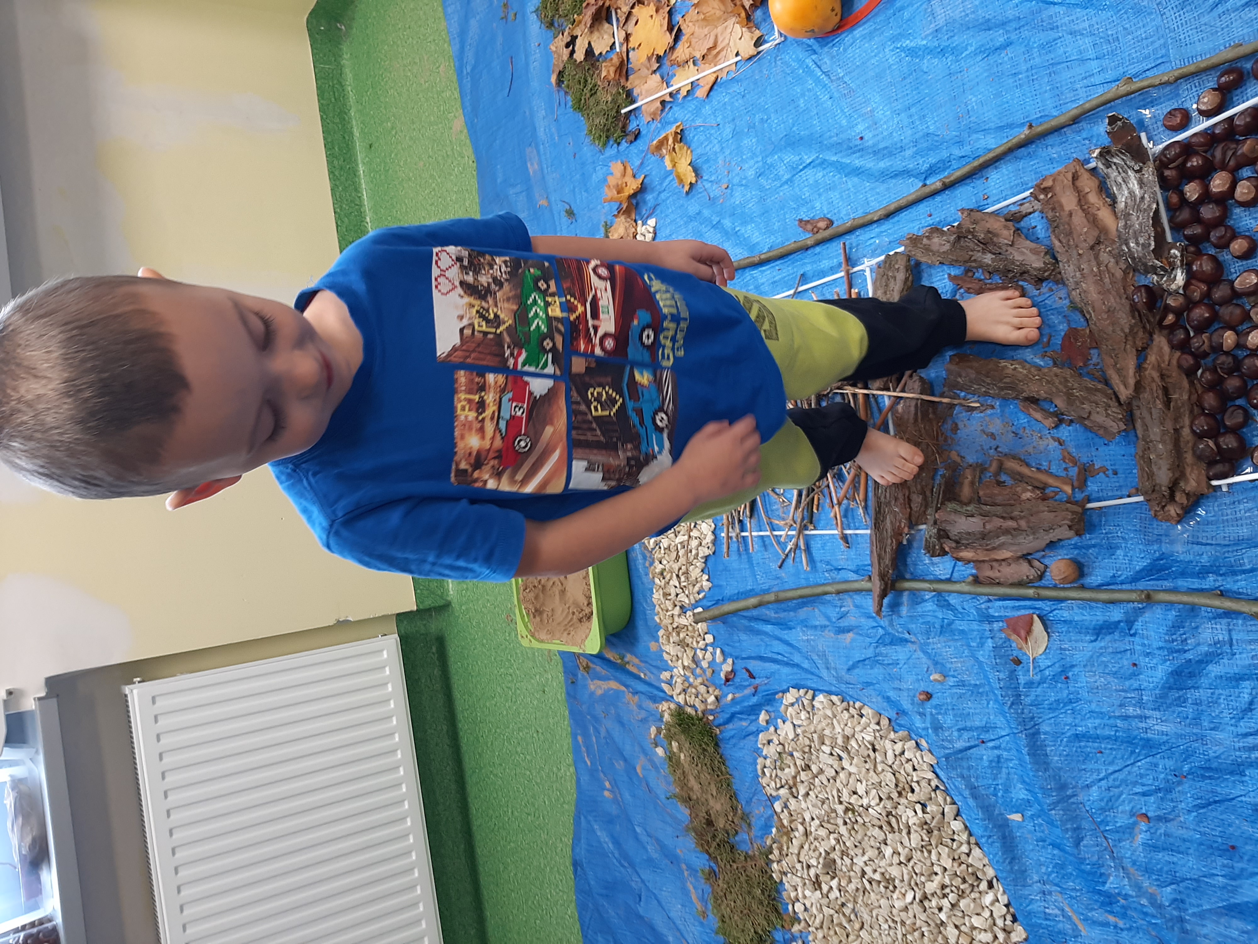 Geometryczny krajobraz z wykorzystaniem skarbów jesieni - ścieżka sensoryczna 22.10.2025r.