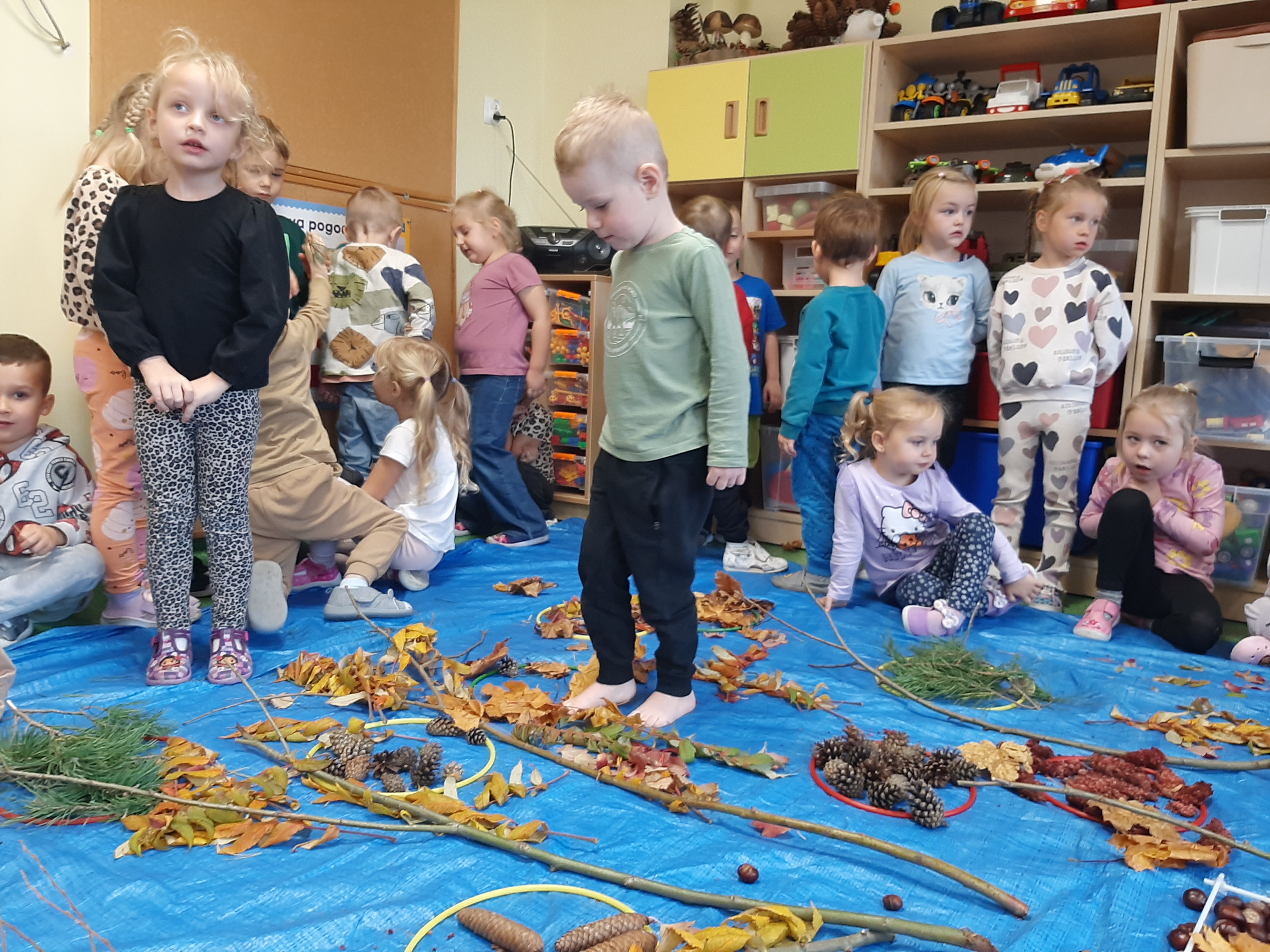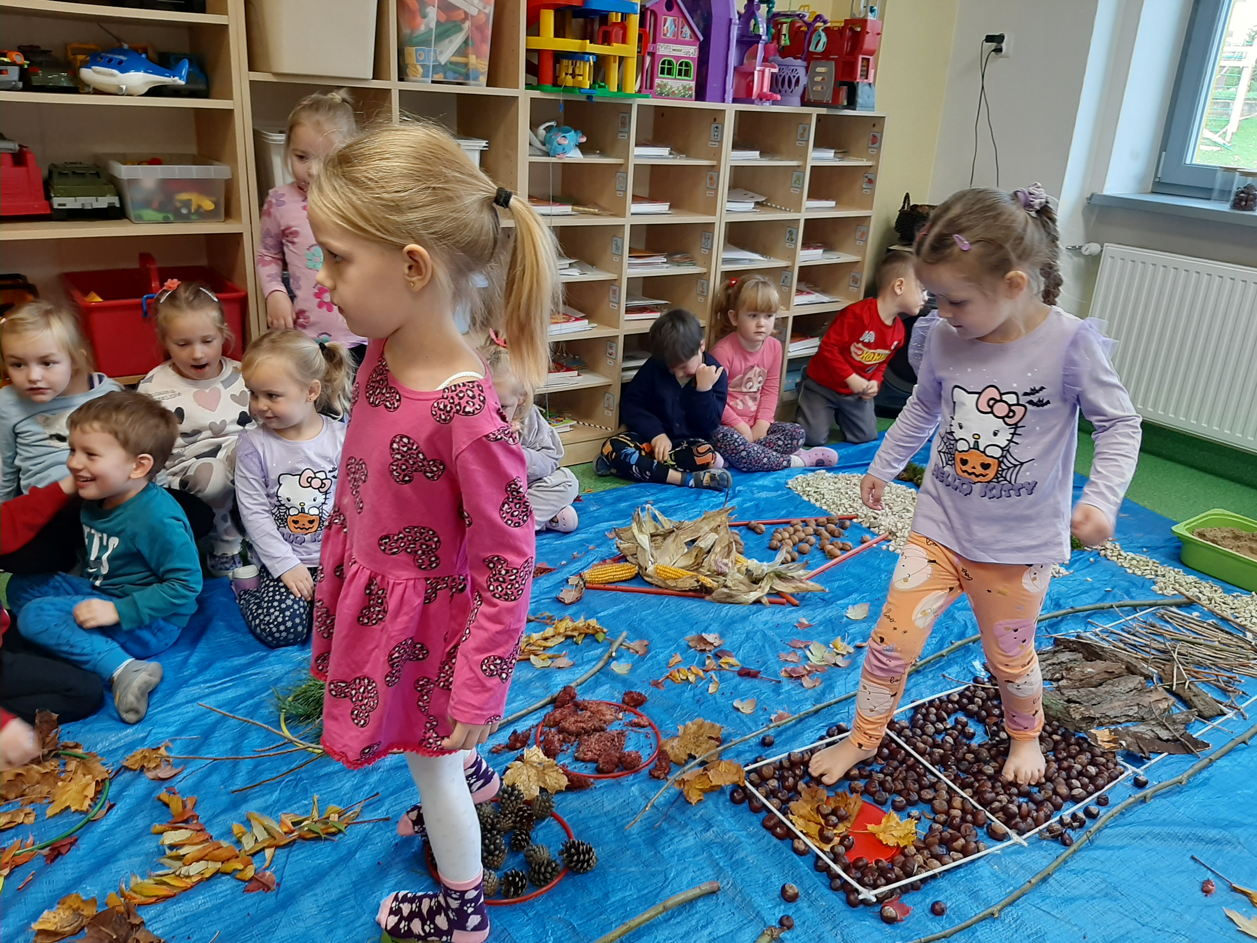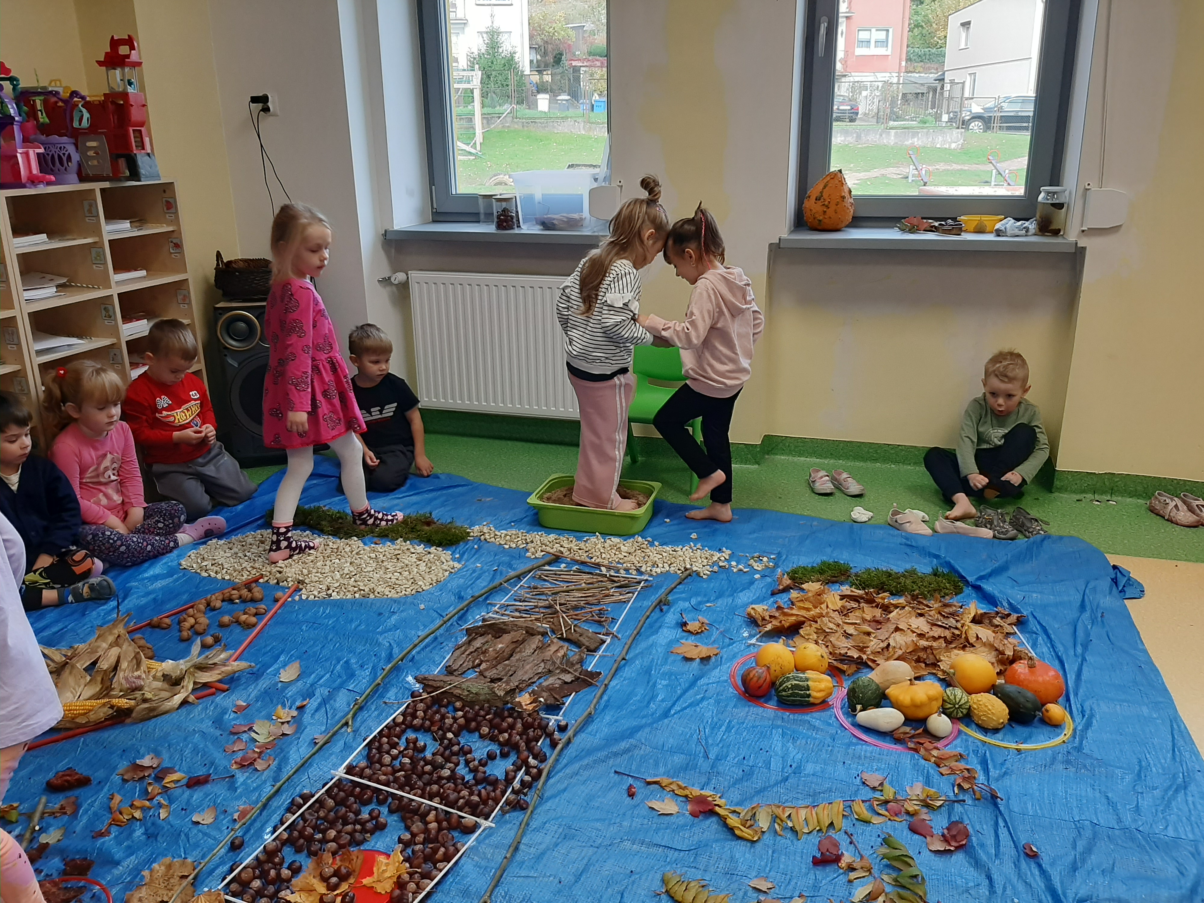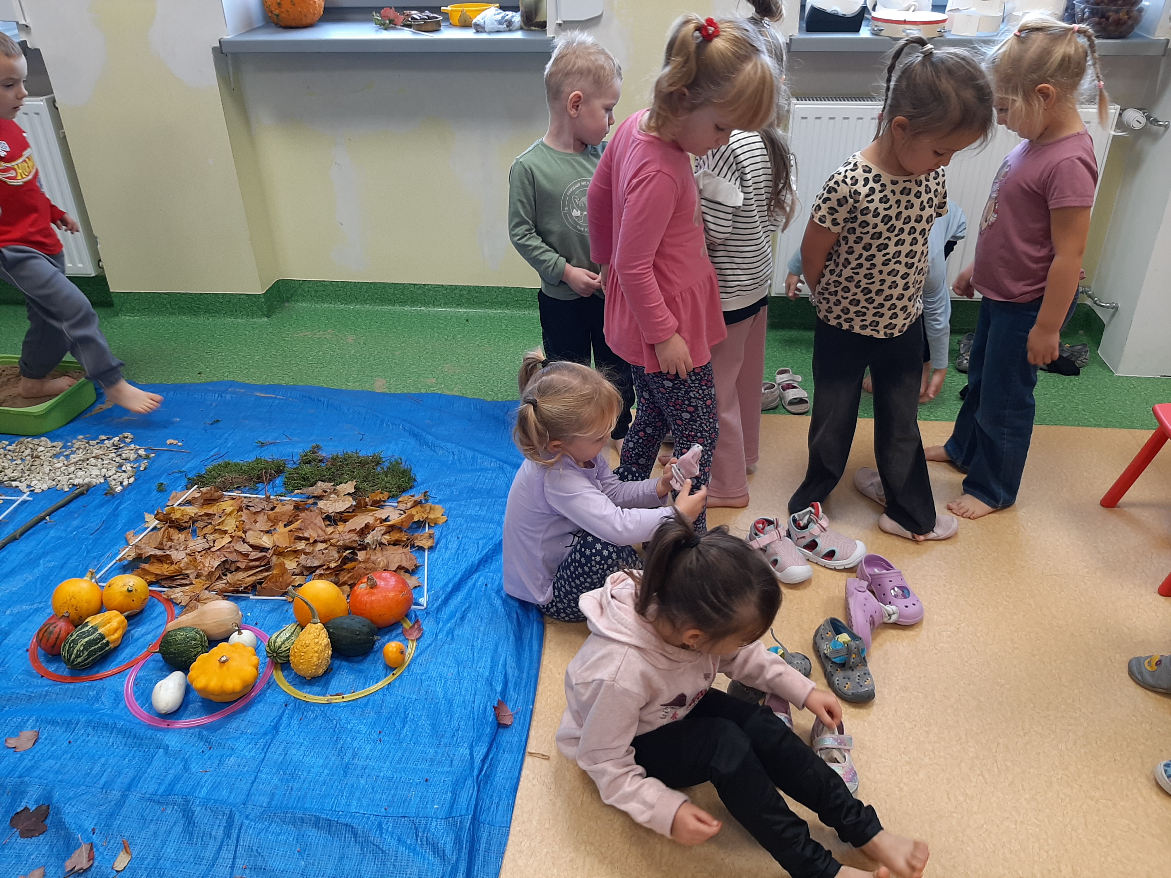Geometryczny krajobraz z wykorzystaniem skarbów jesieni - ścieżka sensoryczna 22.10.2025r.