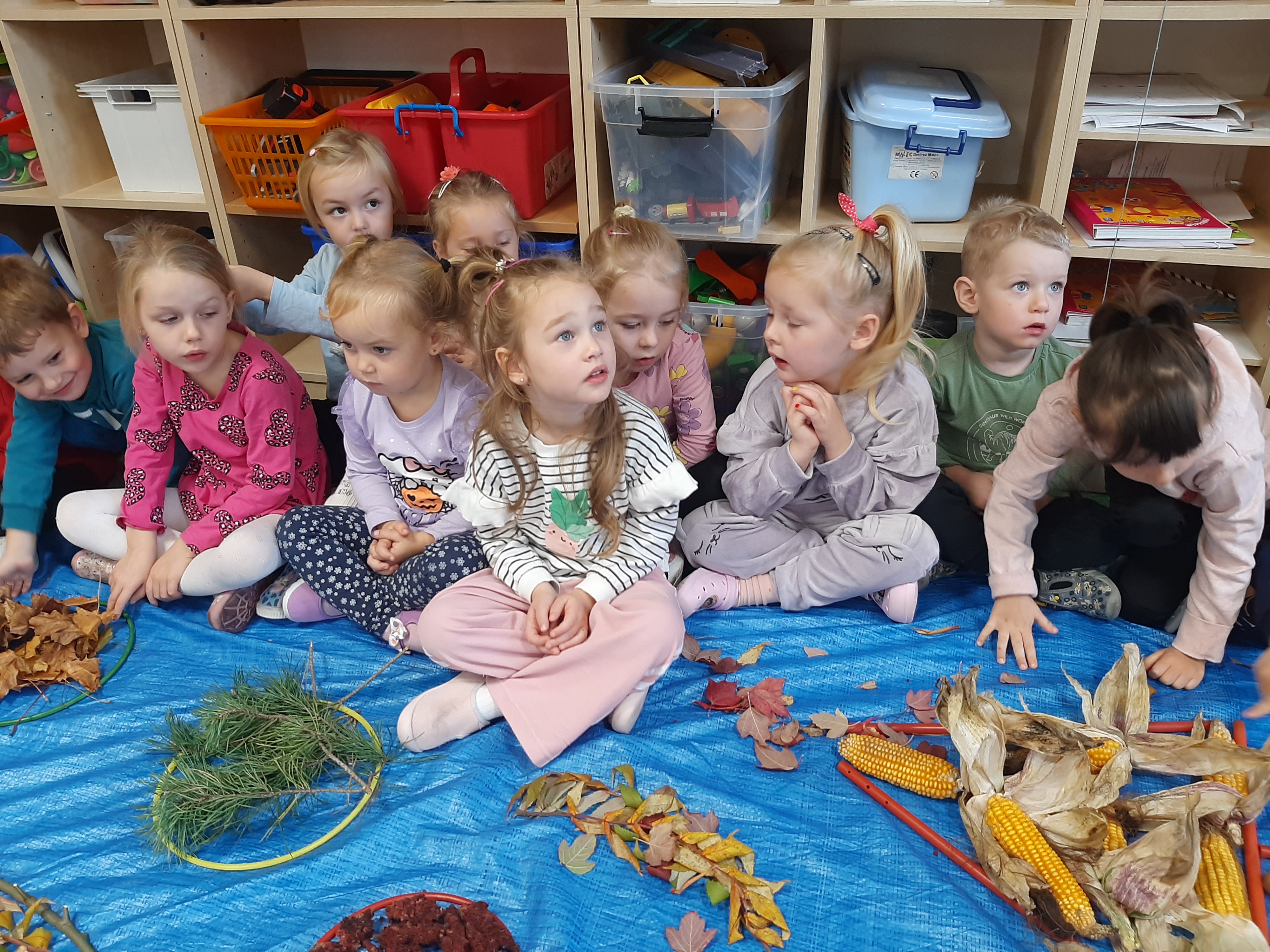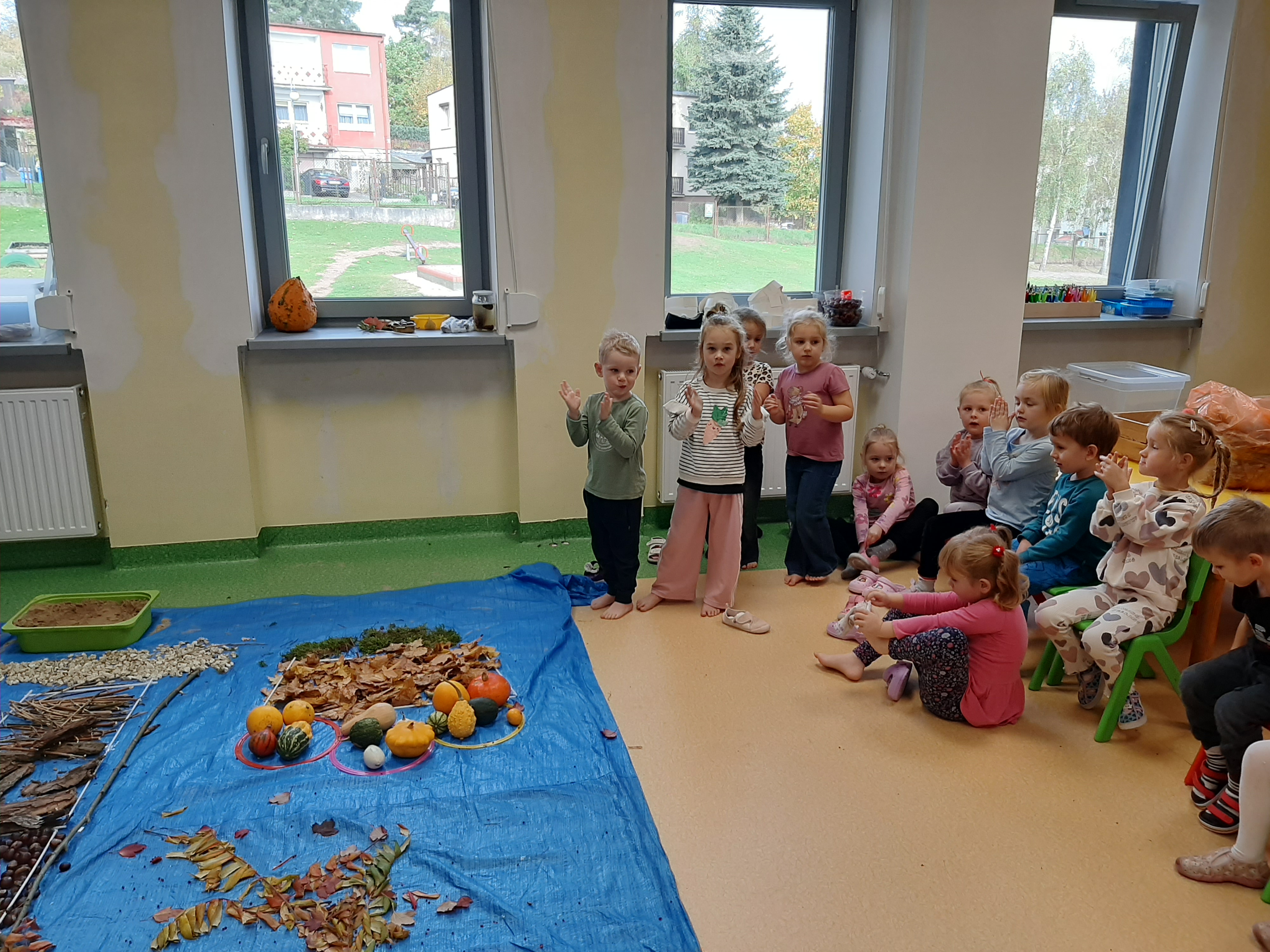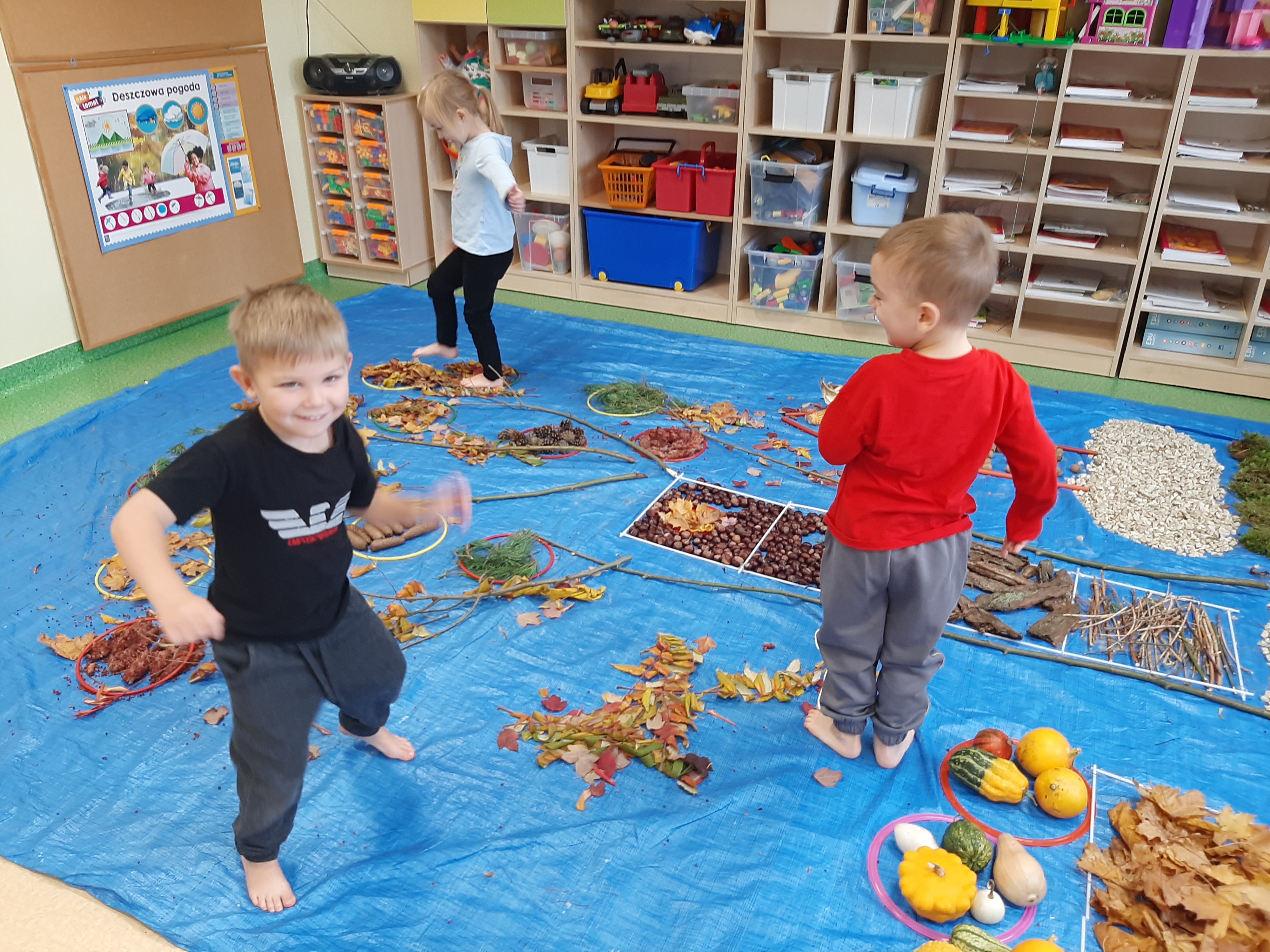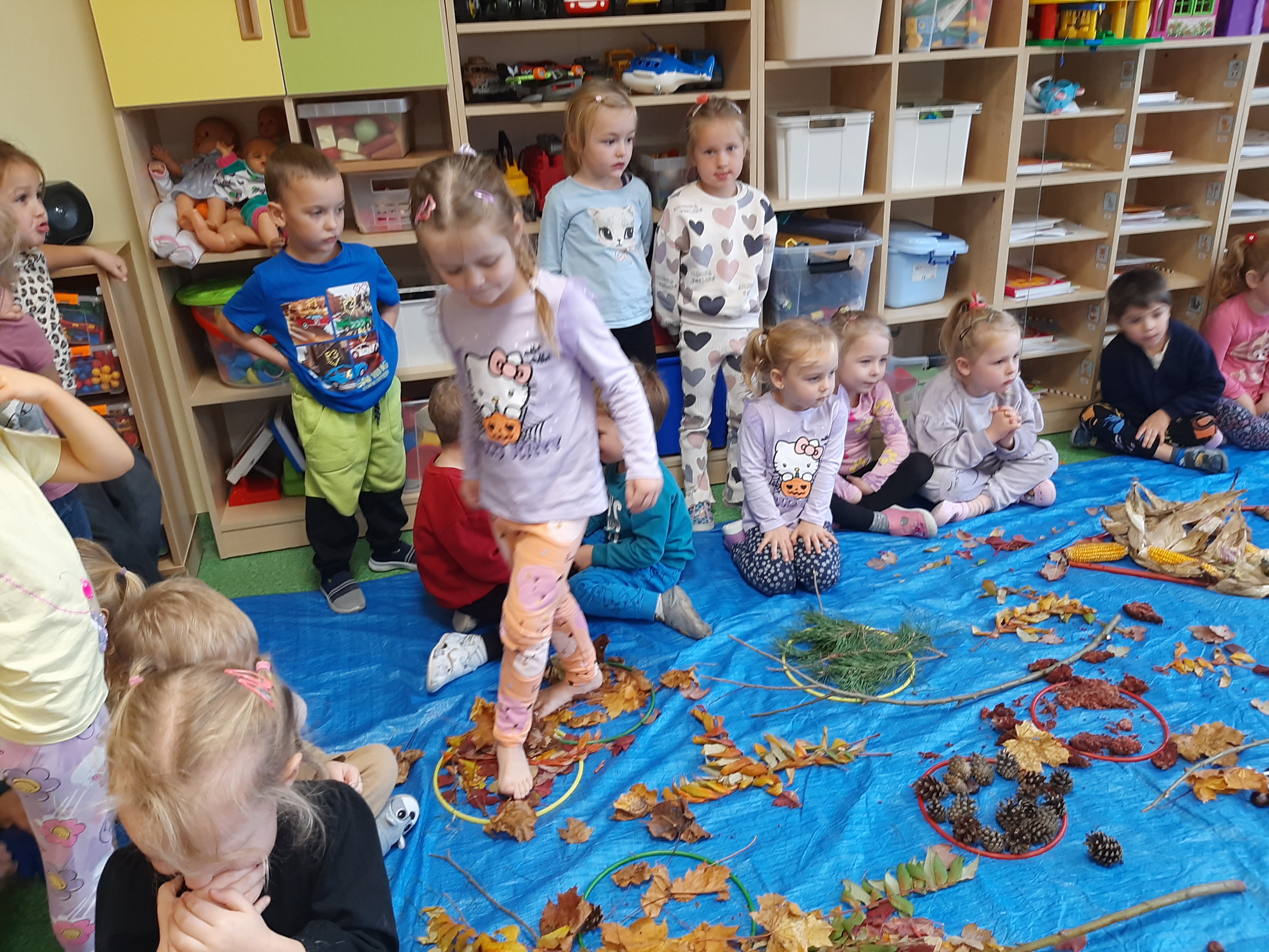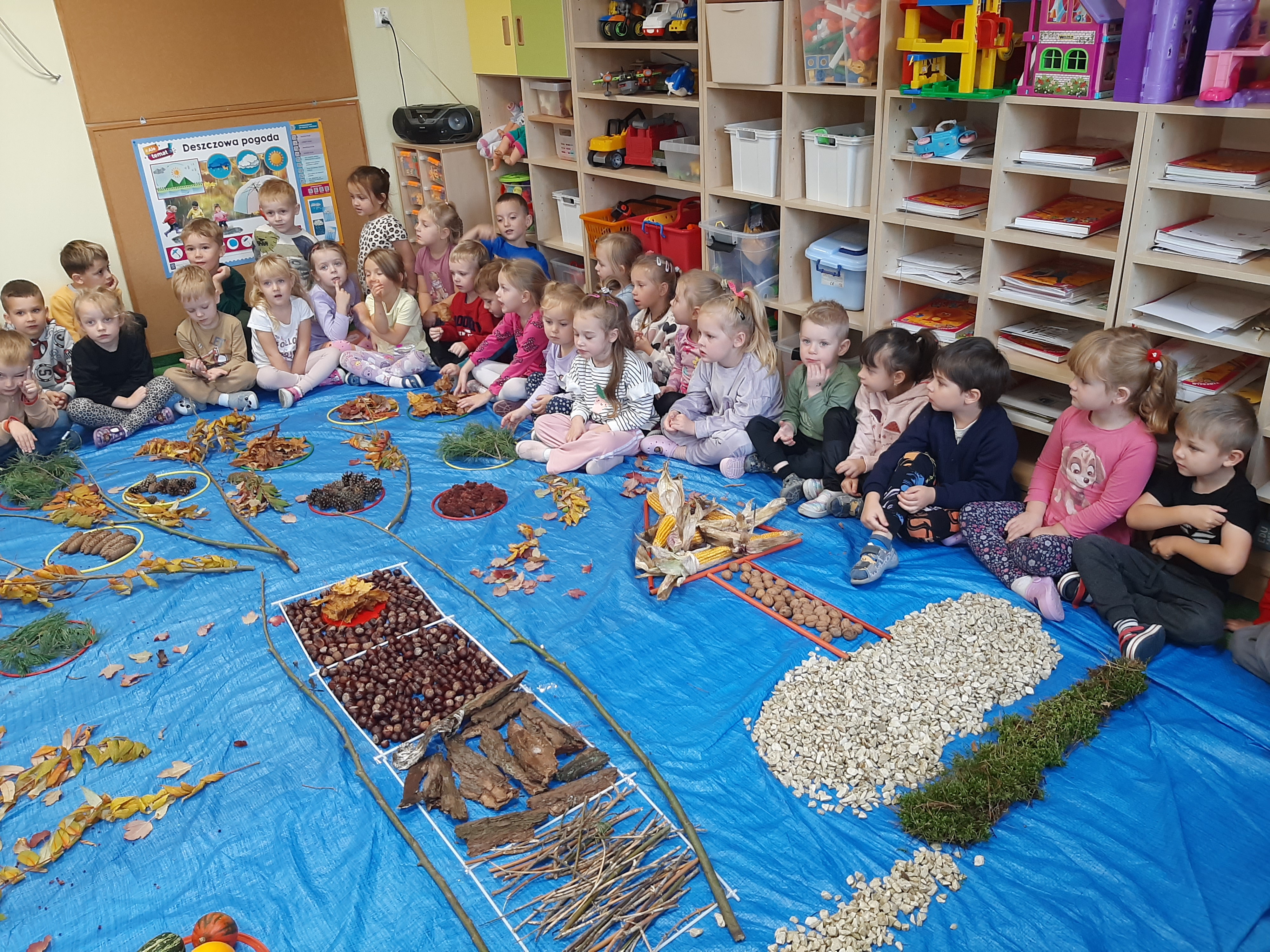 Geometryczny krajobraz z wykorzystaniem skarbów jesieni - ścieżka sensoryczna 22.10.2025r.