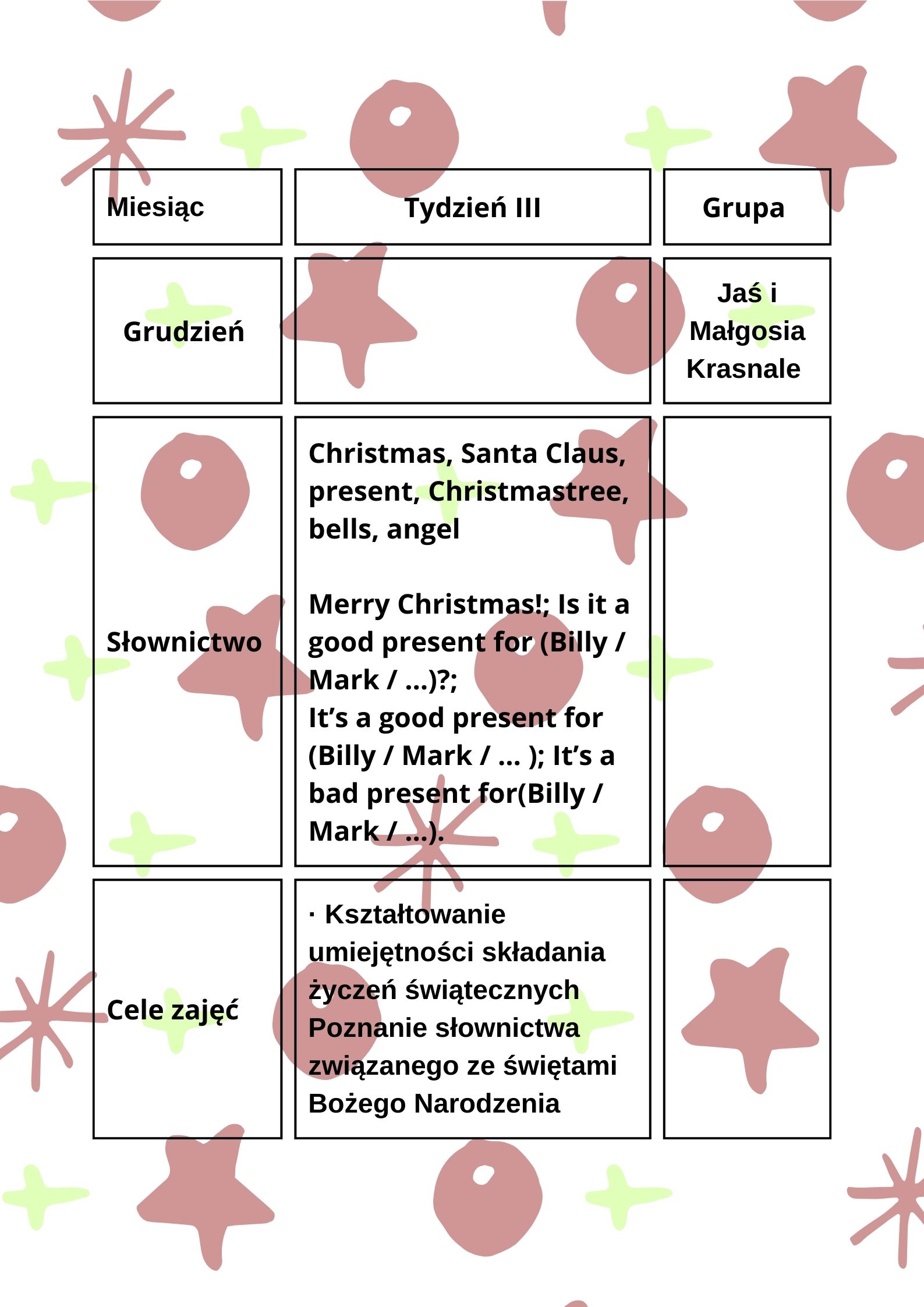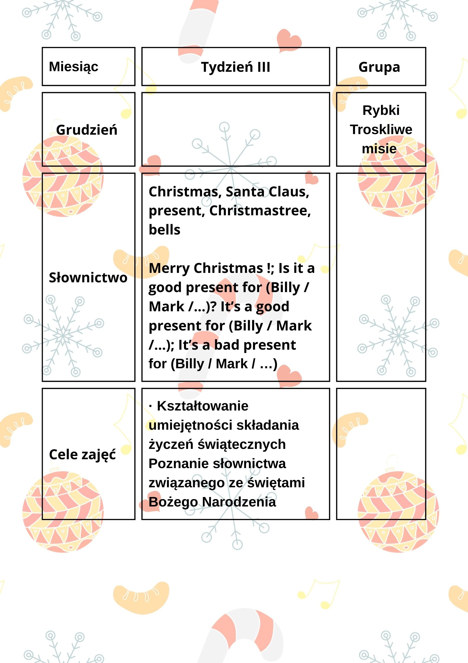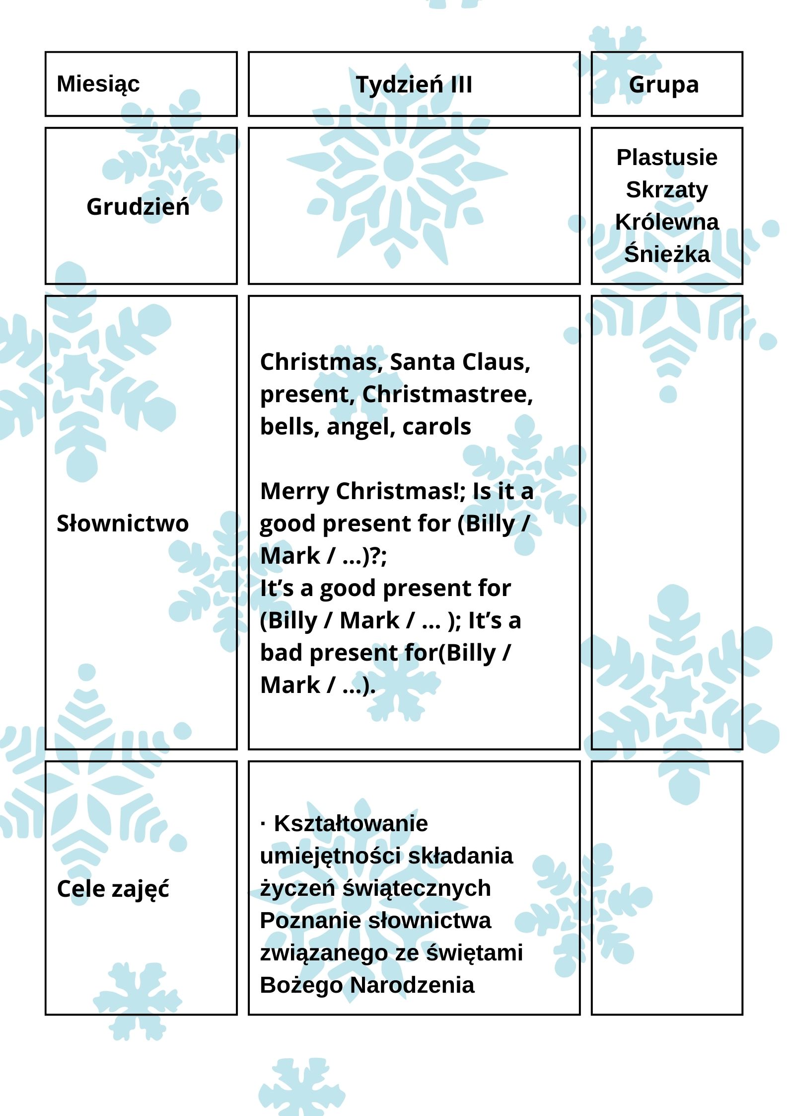 Grudzień III - Przedszkole Miejskie nr 1 Bajkowy Świat w Czarnkowie REKRUTACJA ROK SZKOLNY 2025/2026 (kliknij w pasek)