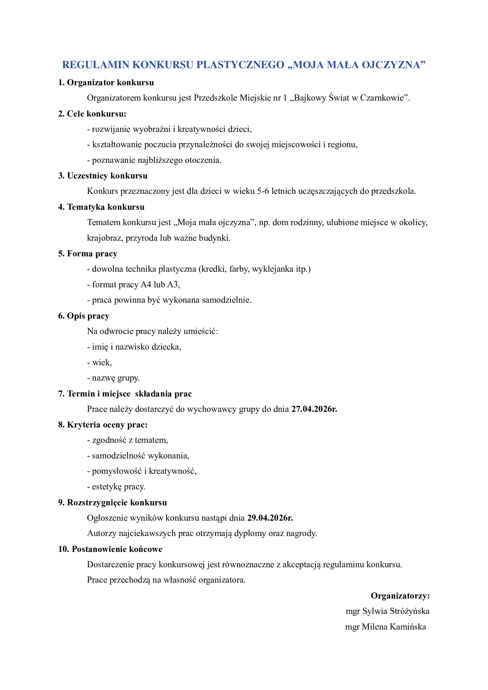 KONKURS PLASTYCZNY ''MOJA MAŁA OJCZYZNA''