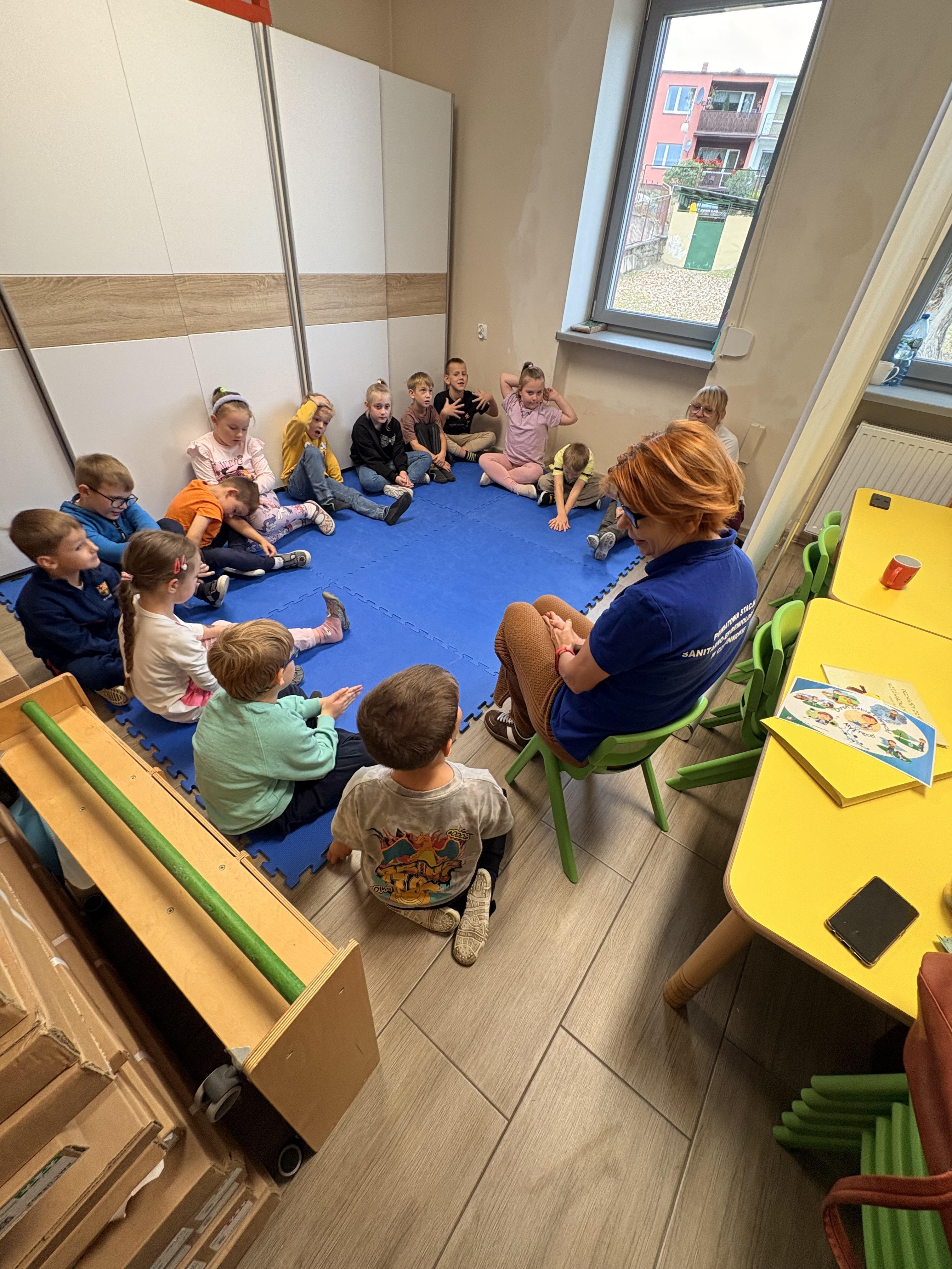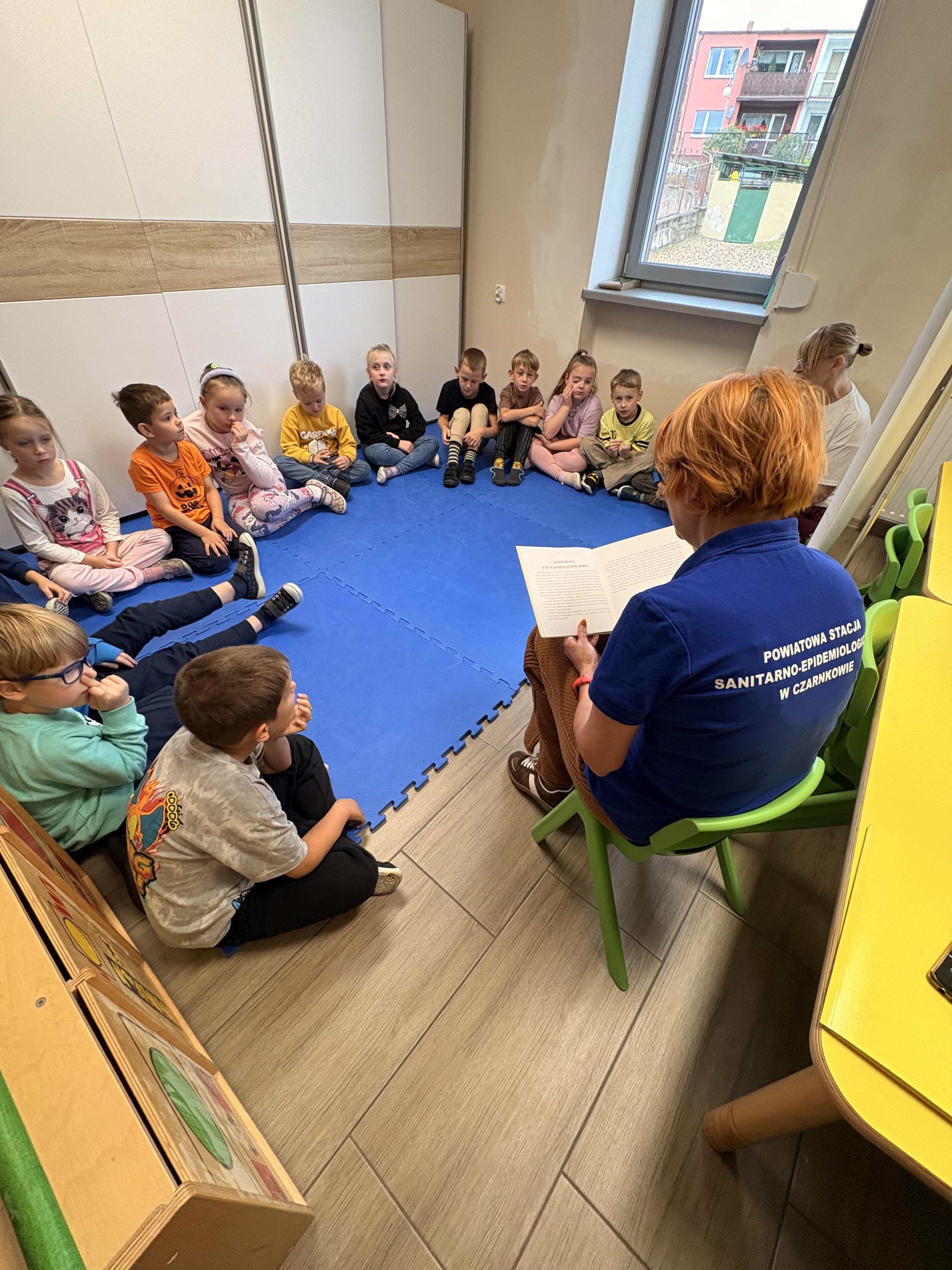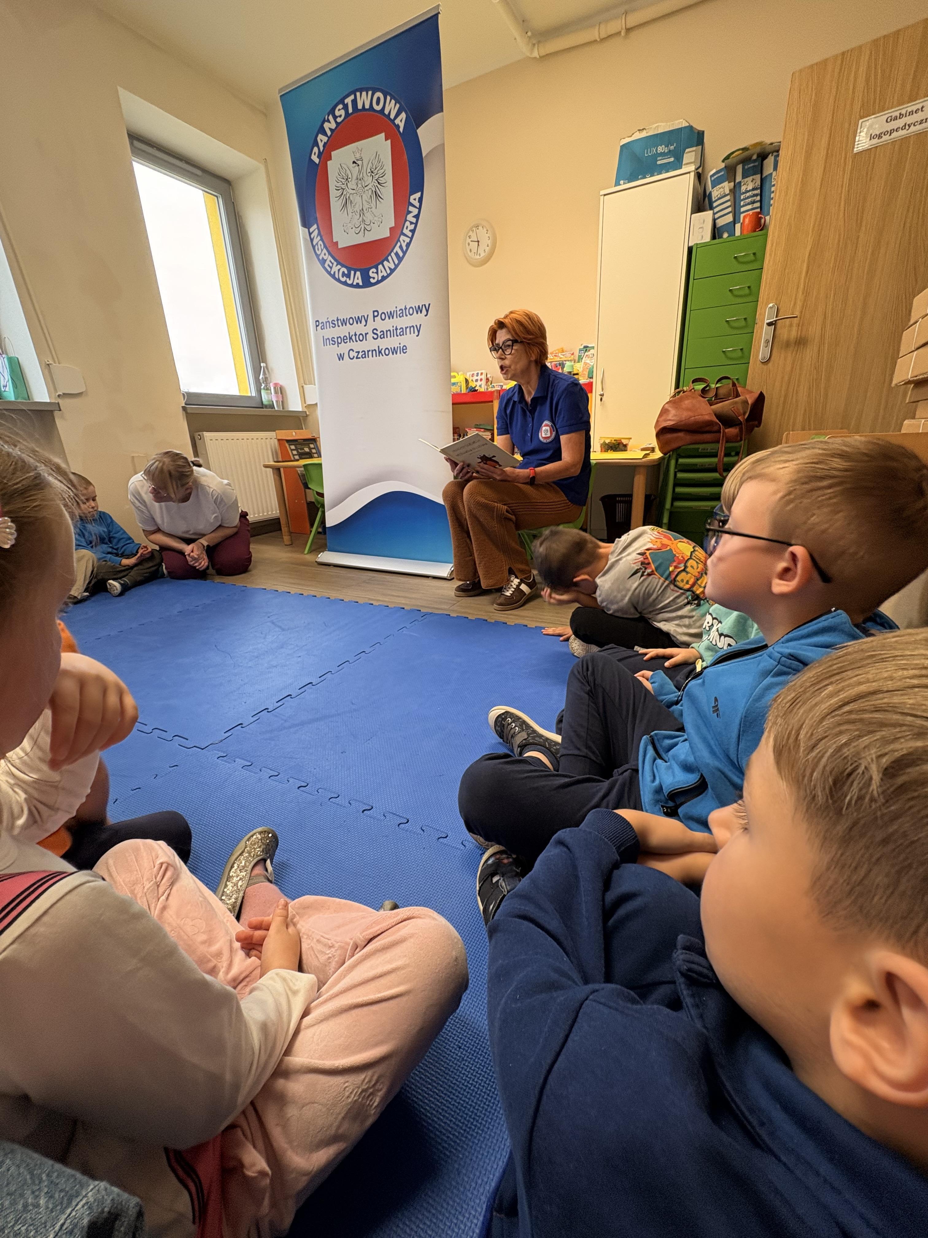 Dziś w naszej grupie 6-latków gościliśmy Panią z Państwowej Inspekcji Sanitarnej. Opowiadała dzieciom o wirusach, higienie i dlaczego szczepienia są ważne. Przeczytała też bajkę „Przygody dzielnego niedźwiadka Szczepana” – o misiu, który pracuje w przychodni i pomaga dzieciom pokonać strach przed szczepieniami.