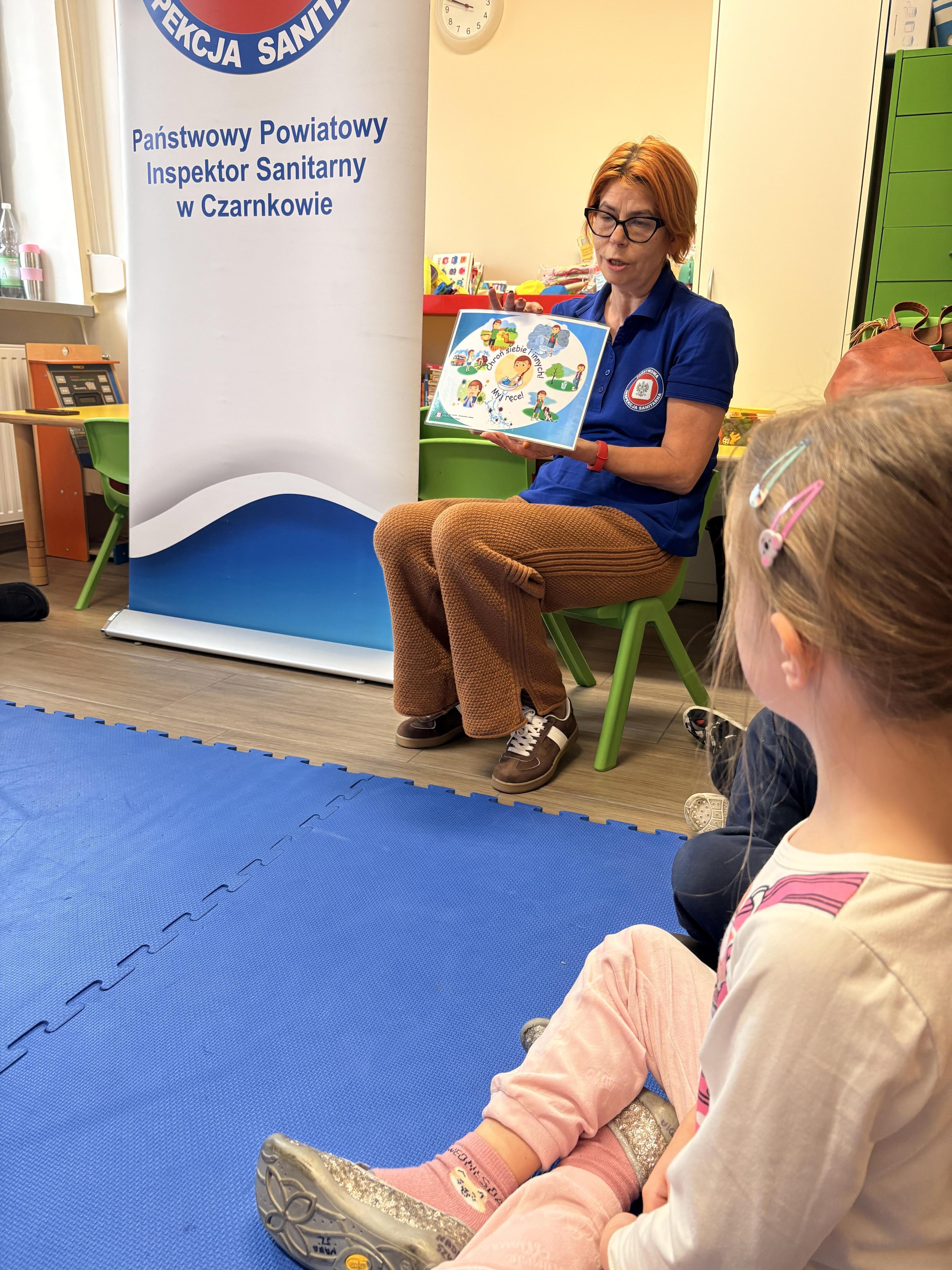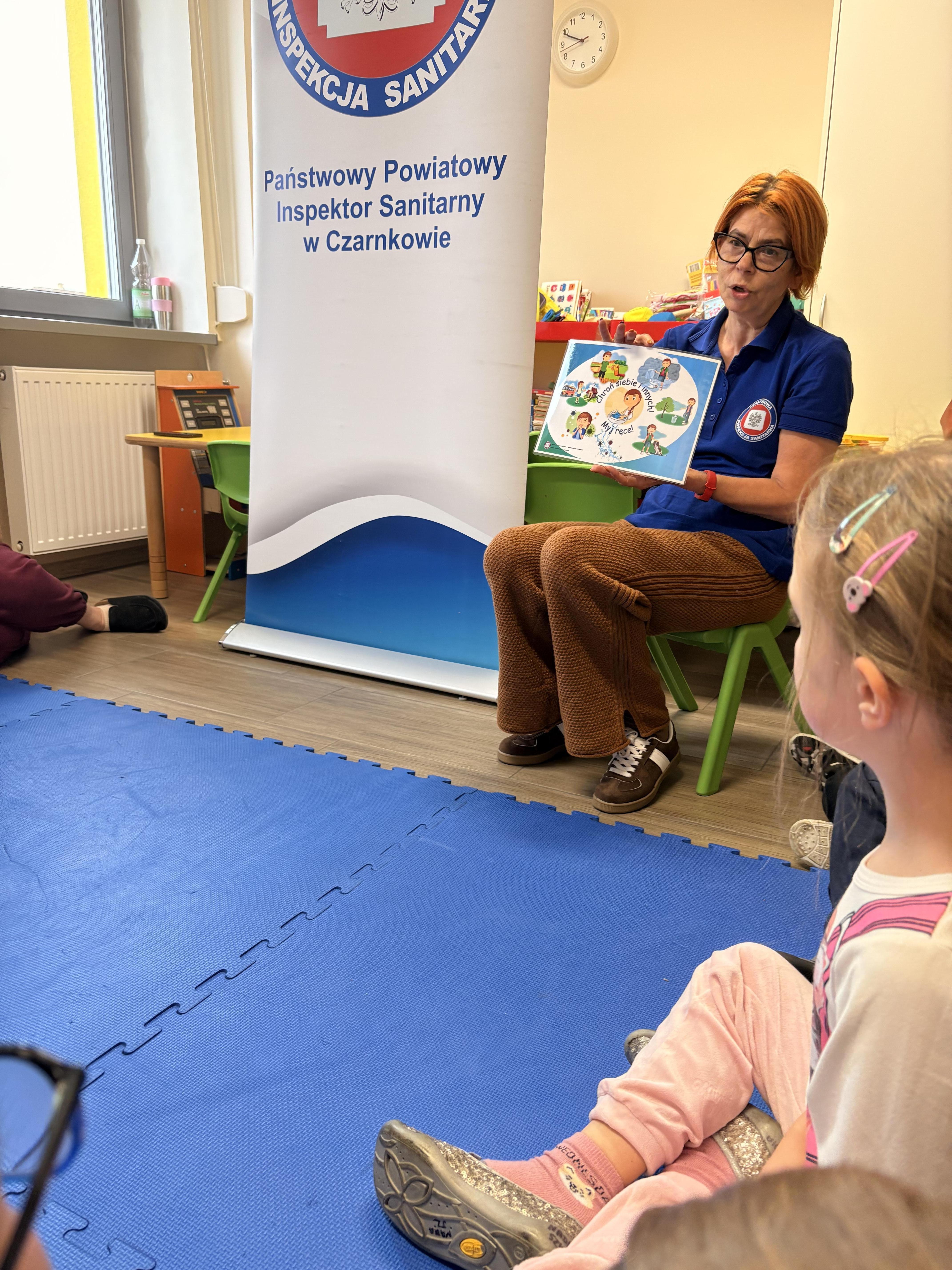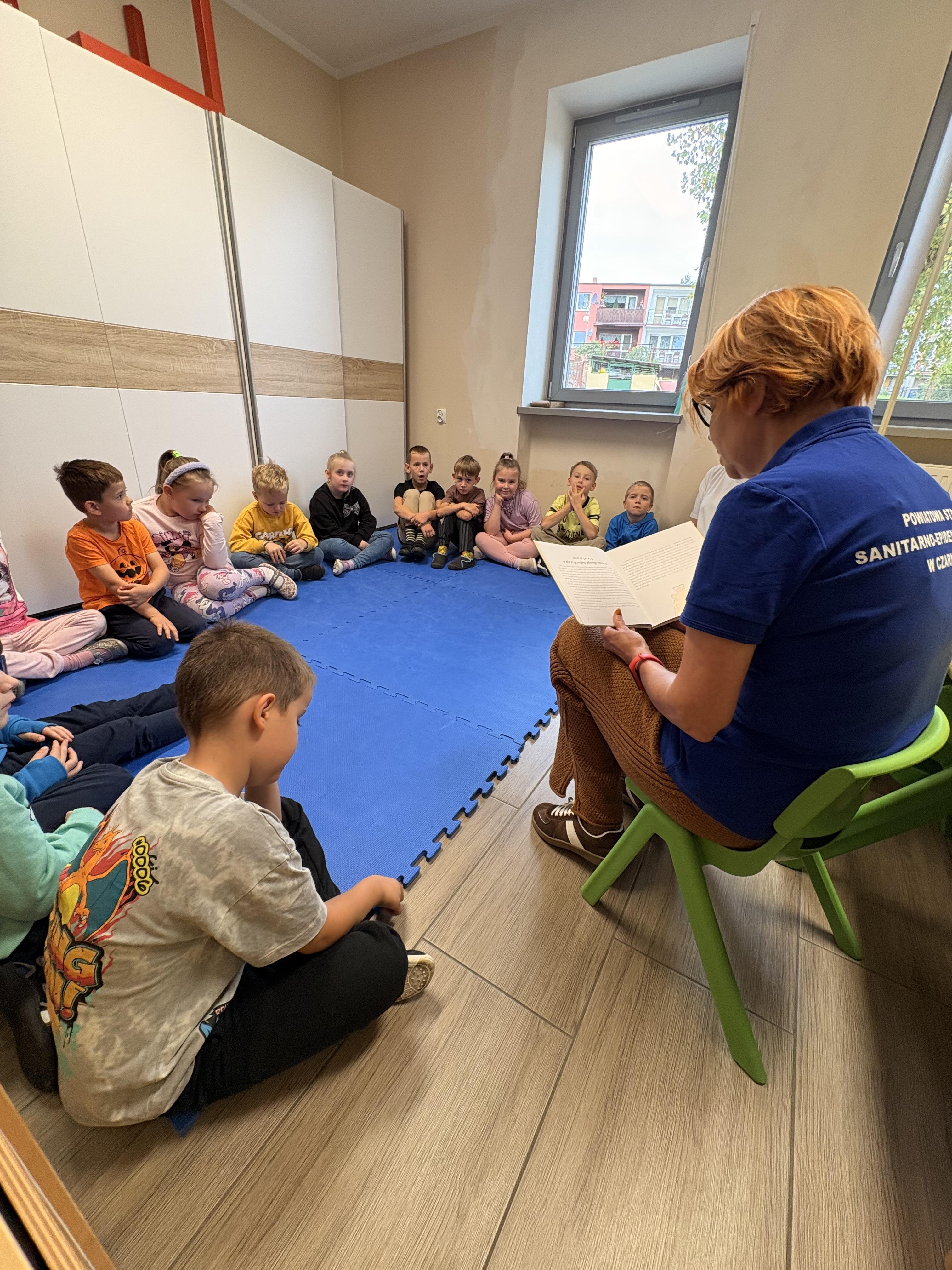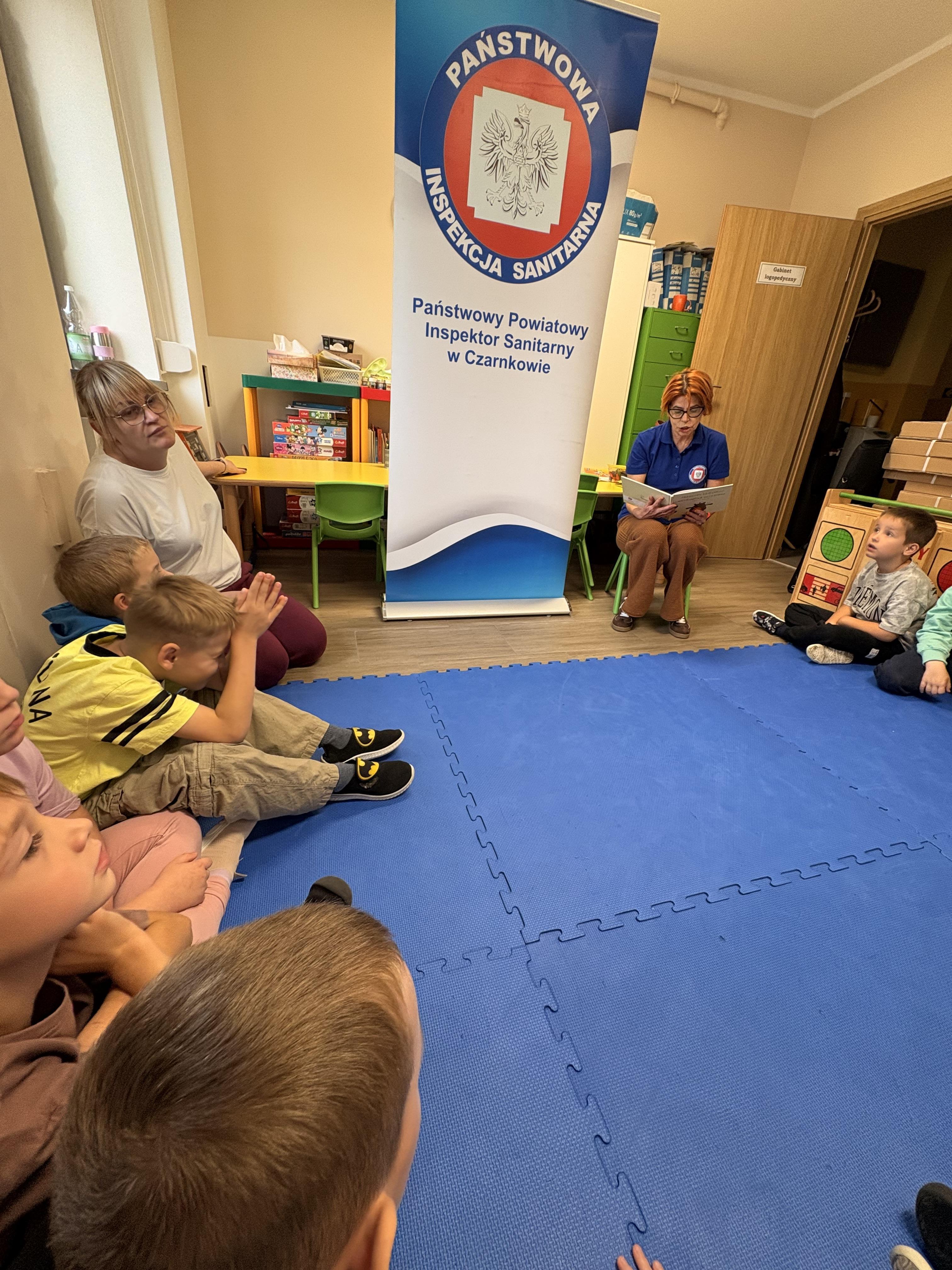 Dziś w naszej grupie 6-latków gościliśmy Panią z Państwowej Inspekcji Sanitarnej. Opowiadała dzieciom o wirusach, higienie i dlaczego szczepienia są ważne. Przeczytała też bajkę „Przygody dzielnego niedźwiadka Szczepana” – o misiu, który pracuje w przychodni i pomaga dzieciom pokonać strach przed szczepieniami.