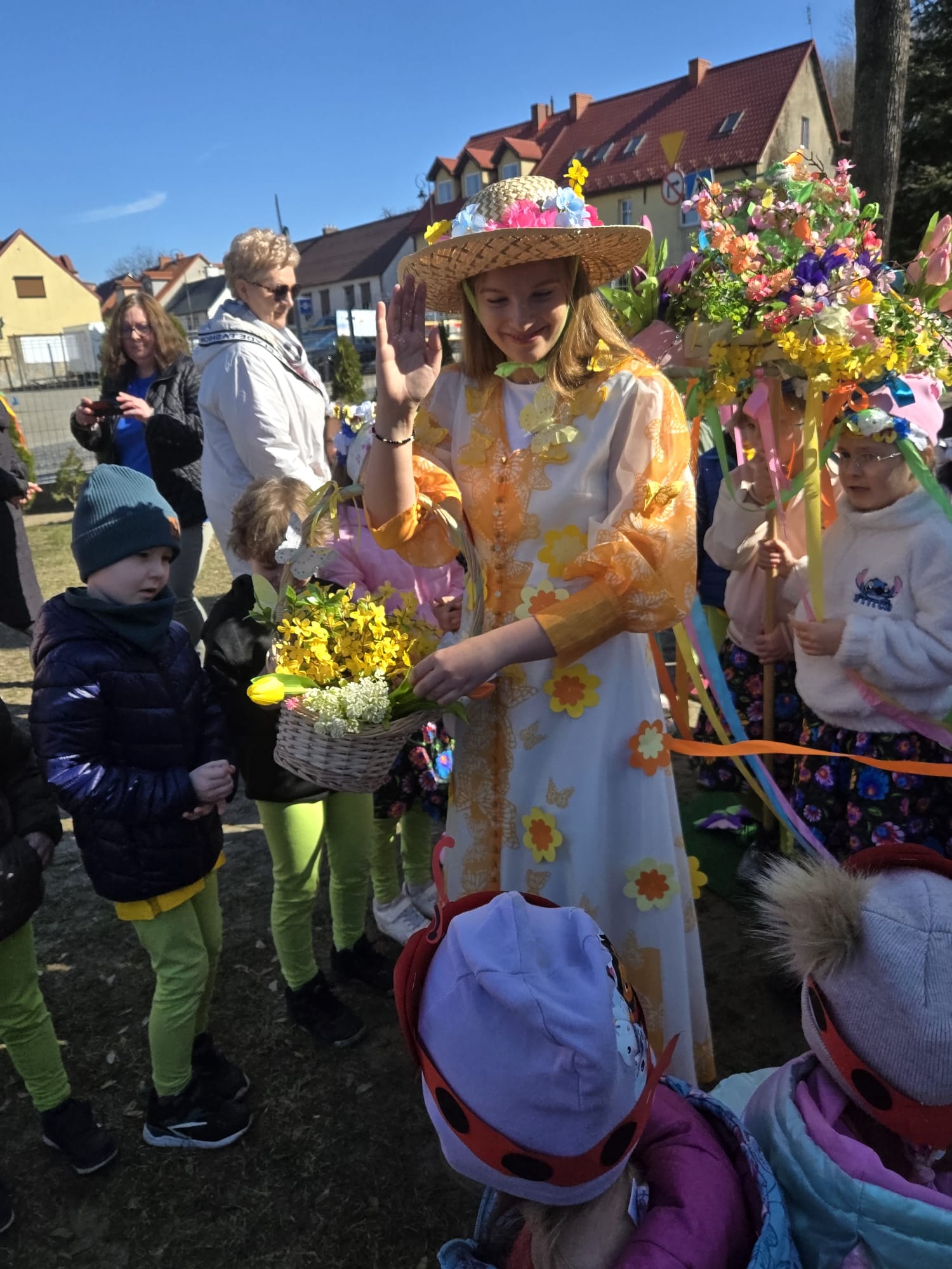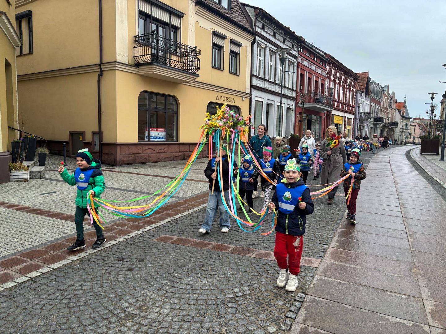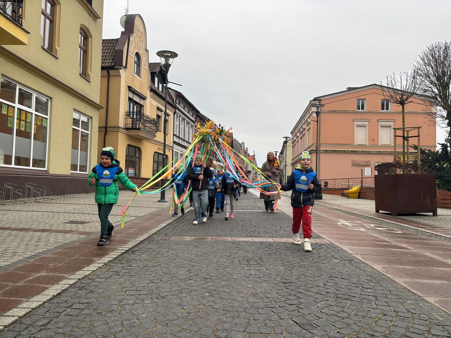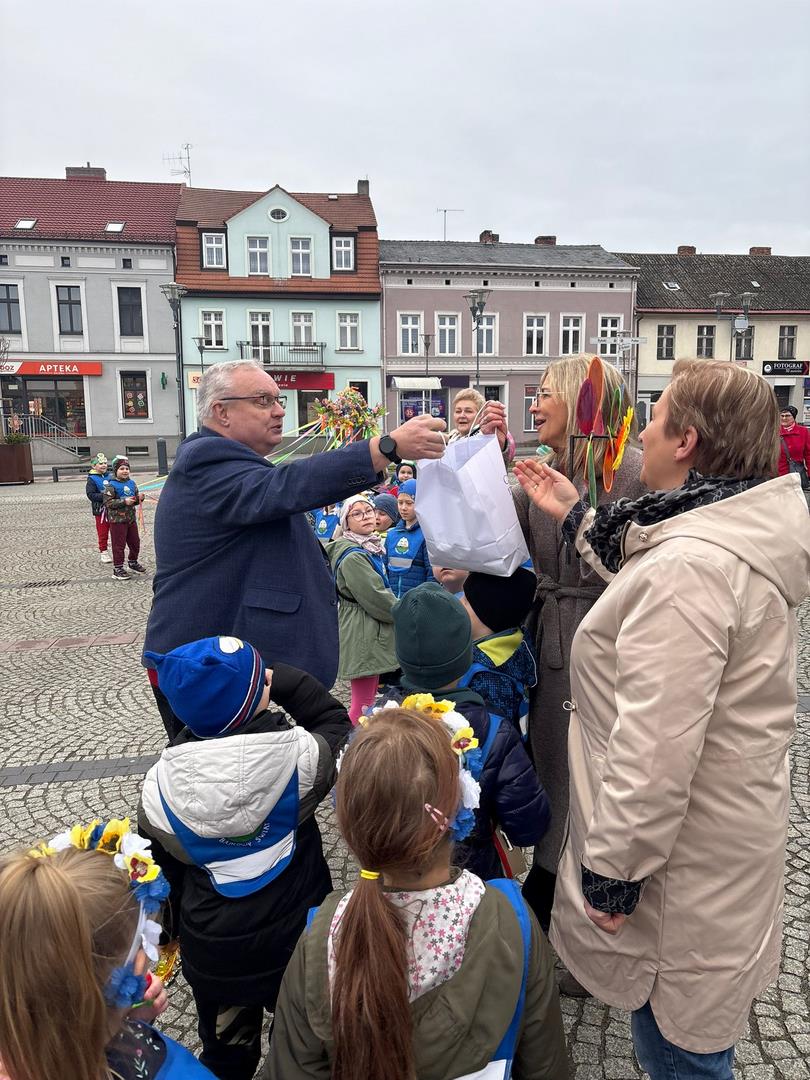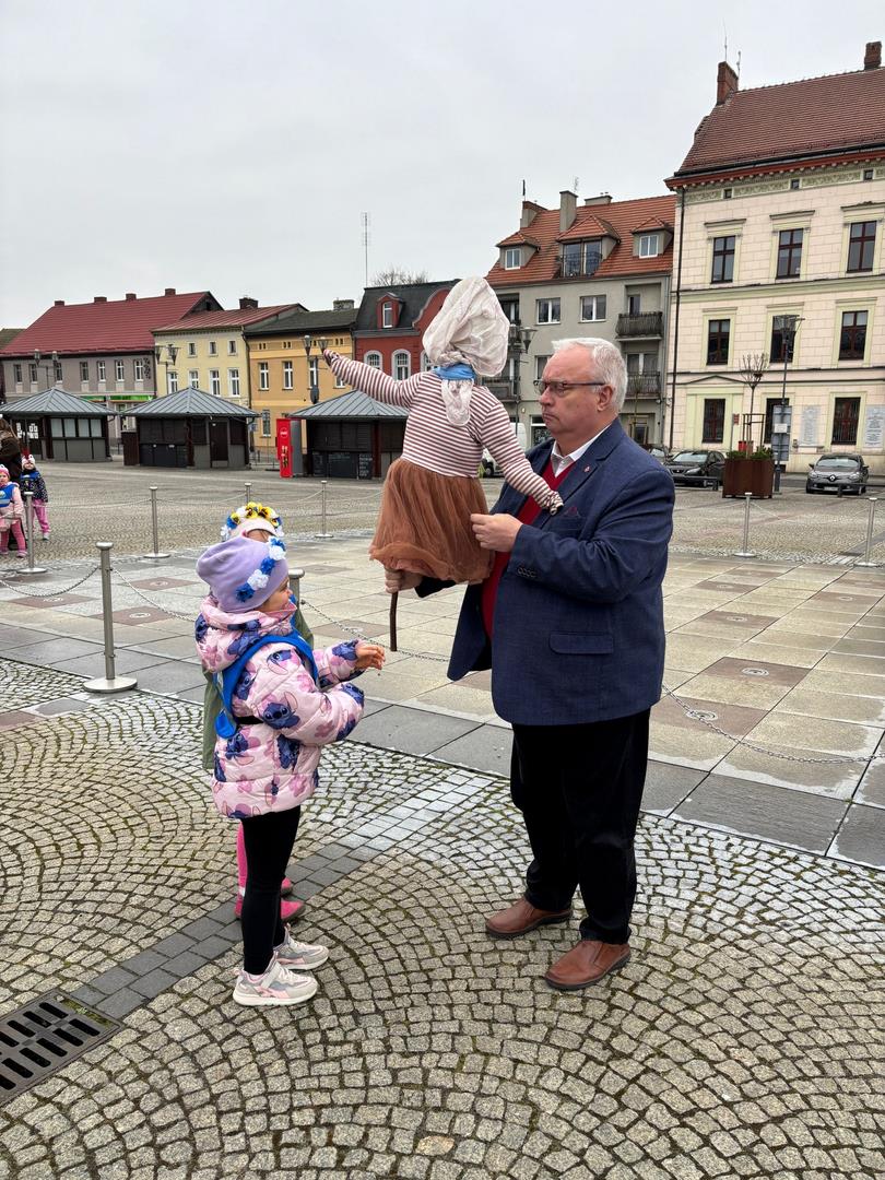 20 marca dzieci z naszego przedszkola, wraz z Panią Dyrektor Katarzyną Just, wyruszyły ulicami miasta, by radośnie powitać Panią Wiosnę. Ich kolorowe stroje oraz dźwięki instrumentów muzycznych ożywiły miasto, a szczególnie Plac Wolności w Czarnkowie, gdzie do wspólnego świętowania dołączył Burmistrz Miasta Czarnków Pan Jacek Klimaszewski. Podczas uroczystości symboliczna Pani Zima została przekazana na jego ręce, co oznacza, że od dziś w mieście oficjalnie zagościła wiosna.