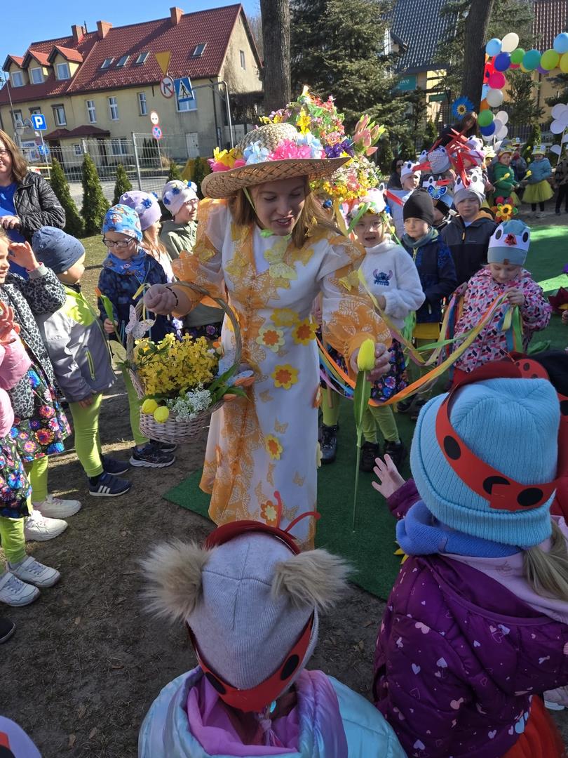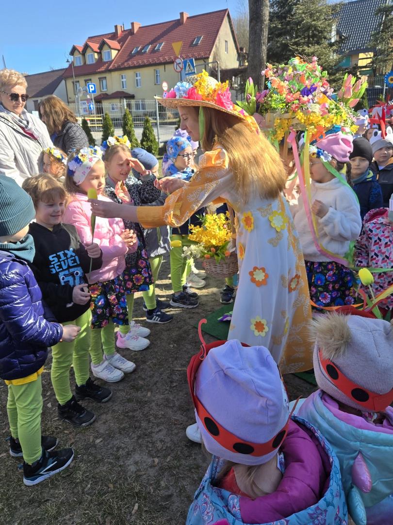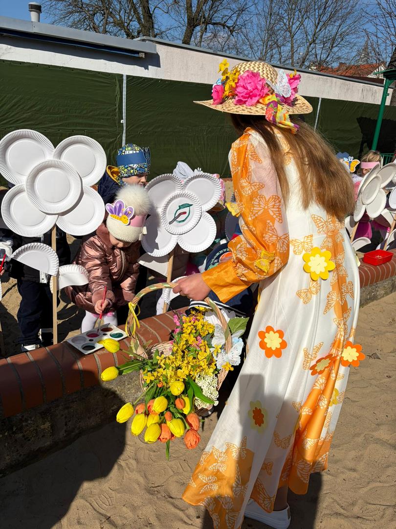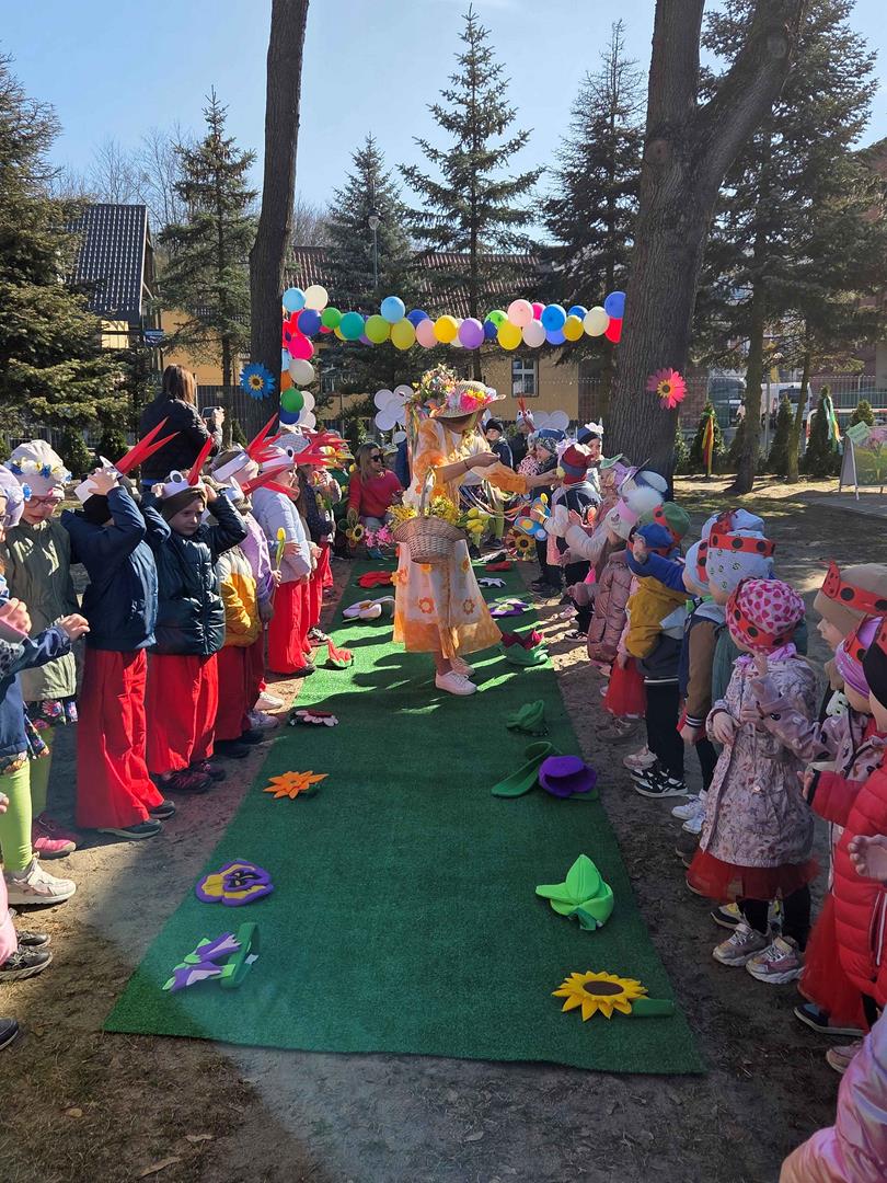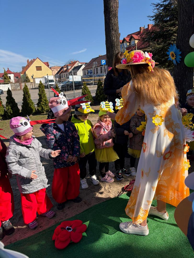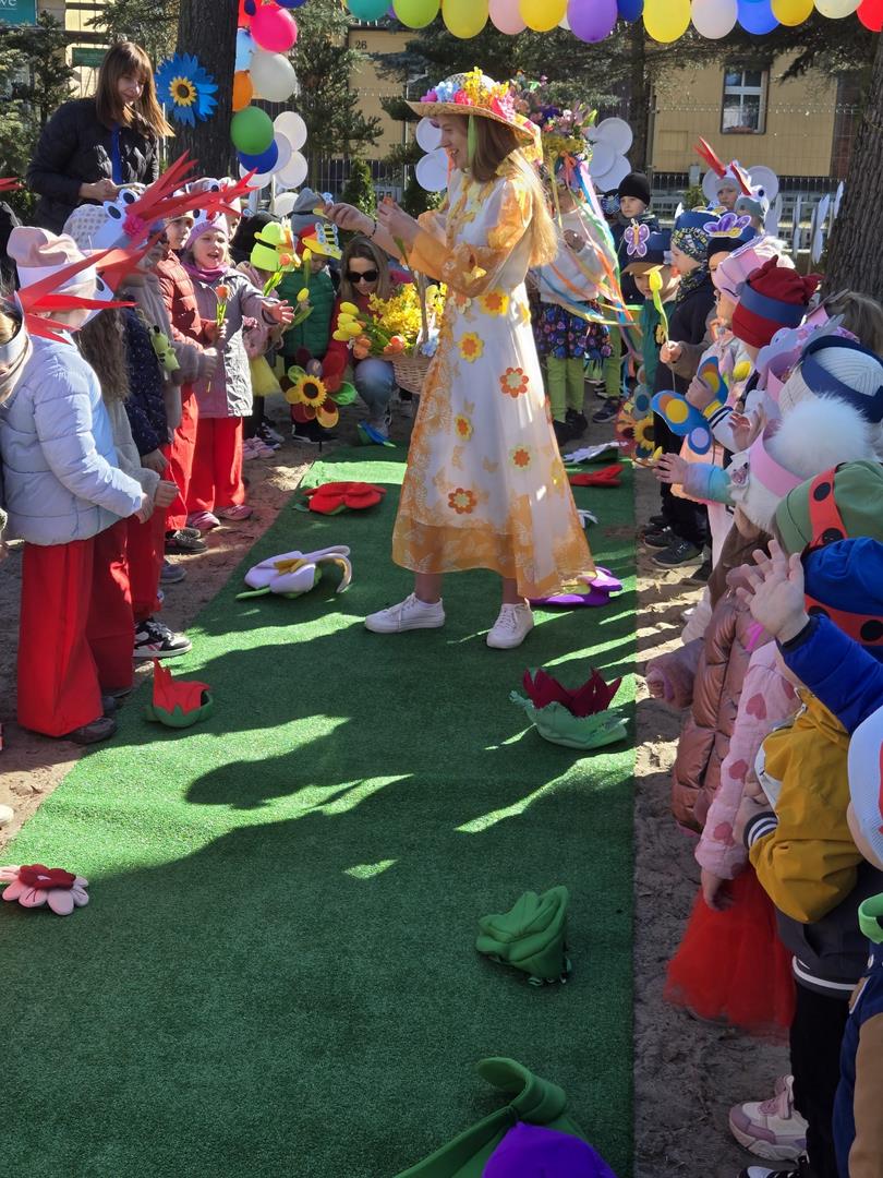 W dniu 19 marca w Przedszkolu Miejskim nr 1 „Bajkowy Świat” w Czarnkowie odbyło się wyjątkowe wydarzenie – uroczyste powitanie wiosny. Już od samego rana przedszkole wypełniło się barwami i uśmiechami. Dzieci z poszczególnych grup przebrały się za zwiastuny wiosny – żabki, bociany, pszczółki, biedronki, motylki oraz kwiaty. Kolorowe stroje nadały wydarzeniu wyjątkowy, bajkowy charakter. Uroczystość rozpoczęła się symbolicznym pożegnaniem zimy – dzieci „uśpiły” Marzannę przy dźwiękach „Walczyka z motylkami”. Następnie po kwiecistym dywanie wkroczyła Wiosna, którą przedszkolaki powitały piosenką „Witaj wiosno ukochana”. Wiosna obdarowała dzieci kwiatami i zaprosiła do wspólnej zabawy. Wśród atrakcji znalazły się m.in. zabawy ruchowe takie jak „Podaj kwiatka czy zabawa z bocianem, a także zajęcia plastyczne – malowanie wiosennych kwiatów.