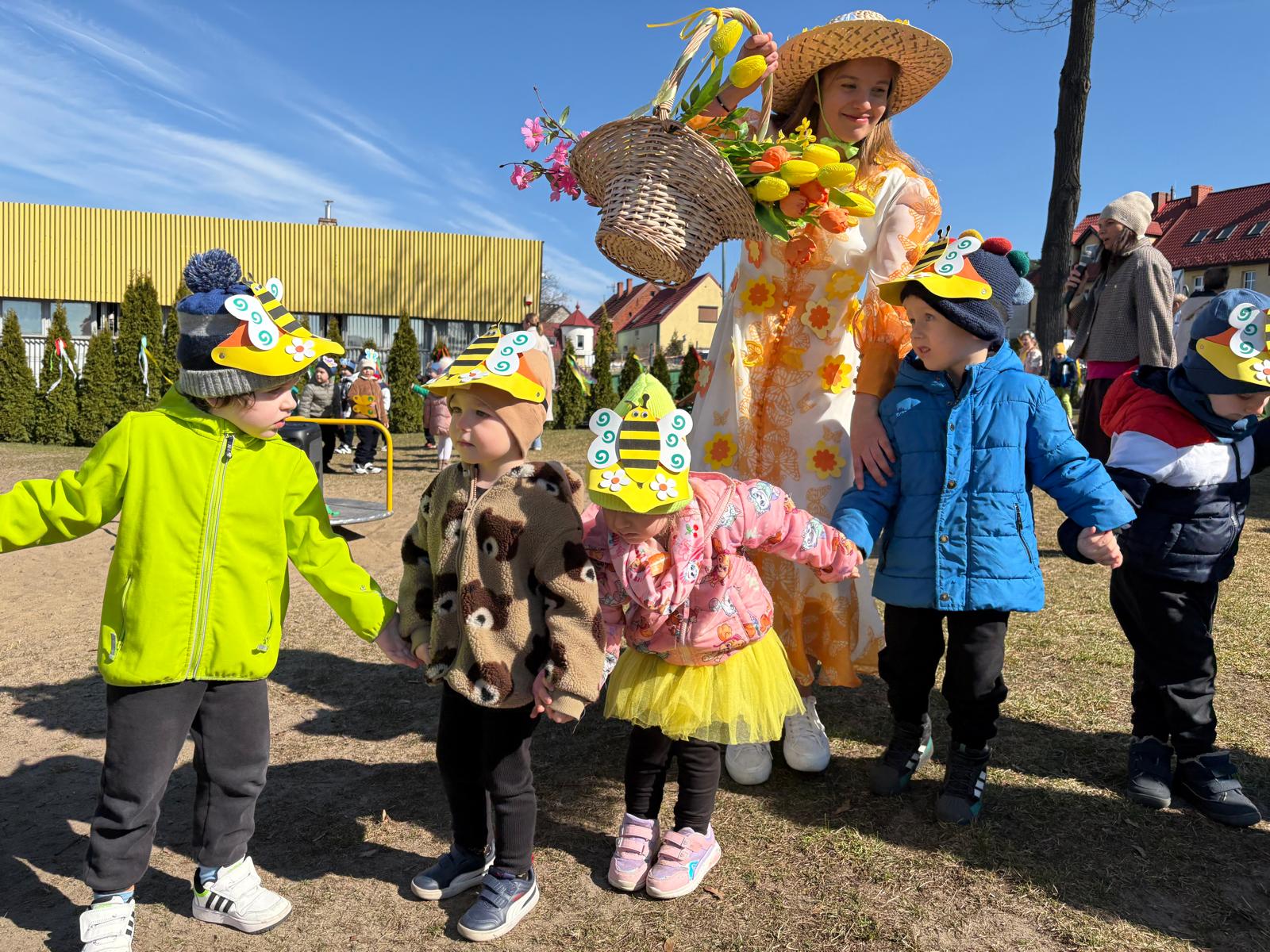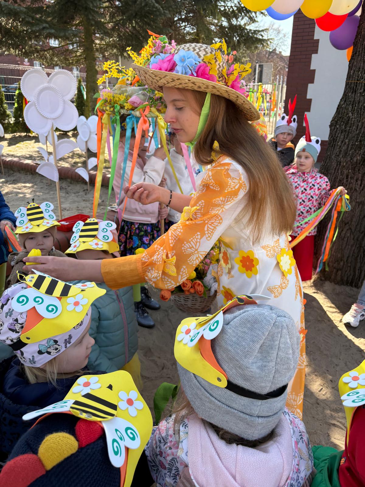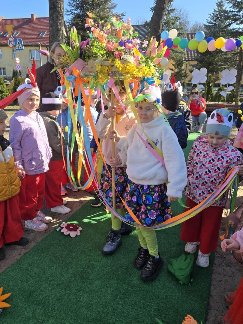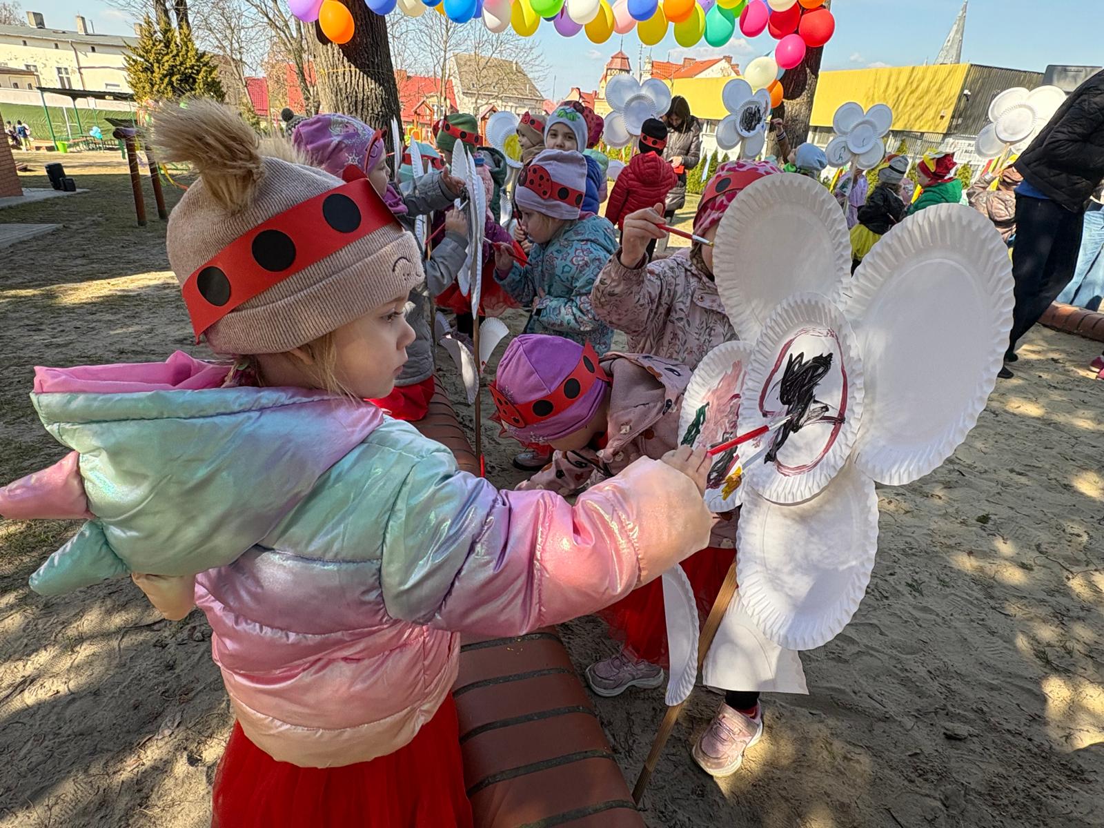 W dniu 19 marca w Przedszkolu Miejskim nr 1 „Bajkowy Świat” w Czarnkowie odbyło się wyjątkowe wydarzenie – uroczyste powitanie wiosny. Już od samego rana przedszkole wypełniło się barwami i uśmiechami. Dzieci z poszczególnych grup przebrały się za zwiastuny wiosny – żabki, bociany, pszczółki, biedronki, motylki oraz kwiaty. Kolorowe stroje nadały wydarzeniu wyjątkowy, bajkowy charakter. Uroczystość rozpoczęła się symbolicznym pożegnaniem zimy – dzieci „uśpiły” Marzannę przy dźwiękach „Walczyka z motylkami”. Następnie po kwiecistym dywanie wkroczyła Wiosna, którą przedszkolaki powitały piosenką „Witaj wiosno ukochana”. Wiosna obdarowała dzieci kwiatami i zaprosiła do wspólnej zabawy. Wśród atrakcji znalazły się m.in. zabawy ruchowe takie jak „Podaj kwiatka czy zabawa z bocianem, a także zajęcia plastyczne – malowanie wiosennych kwiatów.