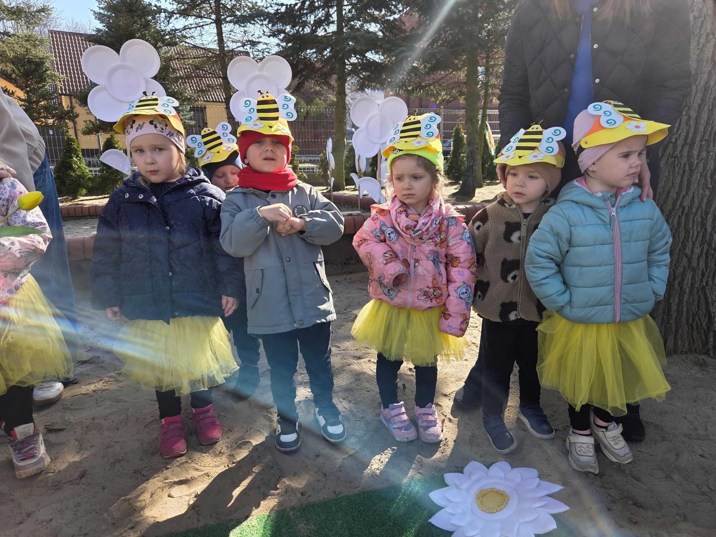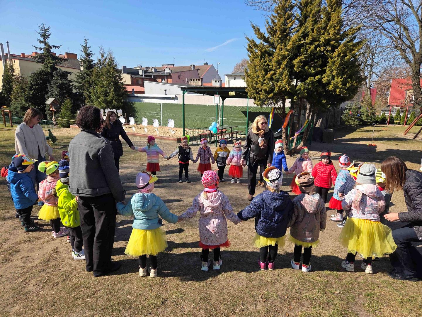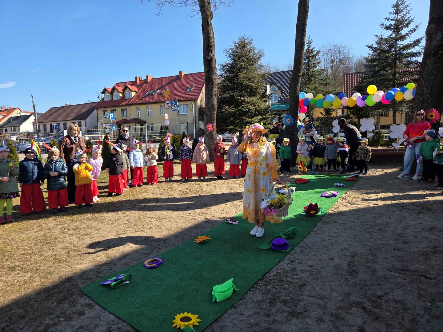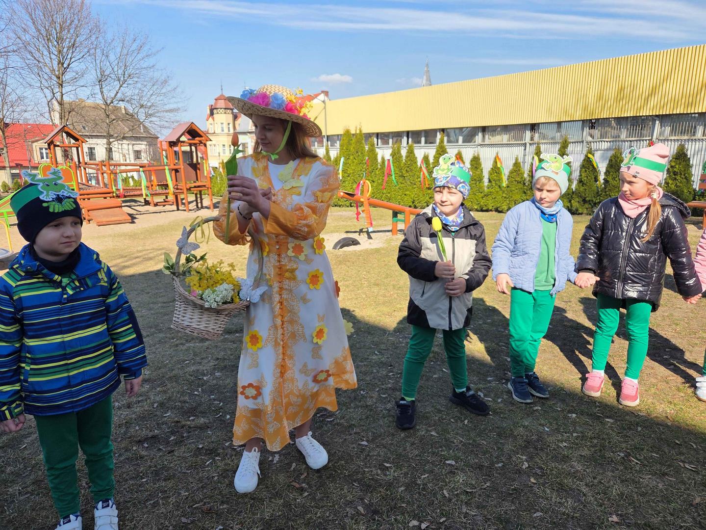 W dniu 19 marca w Przedszkolu Miejskim nr 1 „Bajkowy Świat” w Czarnkowie odbyło się wyjątkowe wydarzenie – uroczyste powitanie wiosny. Już od samego rana przedszkole wypełniło się barwami i uśmiechami. Dzieci z poszczególnych grup przebrały się za zwiastuny wiosny – żabki, bociany, pszczółki, biedronki, motylki oraz kwiaty. Kolorowe stroje nadały wydarzeniu wyjątkowy, bajkowy charakter. Uroczystość rozpoczęła się symbolicznym pożegnaniem zimy – dzieci „uśpiły” Marzannę przy dźwiękach „Walczyka z motylkami”. Następnie po kwiecistym dywanie wkroczyła Wiosna, którą przedszkolaki powitały piosenką „Witaj wiosno ukochana”. Wiosna obdarowała dzieci kwiatami i zaprosiła do wspólnej zabawy. Wśród atrakcji znalazły się m.in. zabawy ruchowe takie jak „Podaj kwiatka czy zabawa z bocianem, a także zajęcia plastyczne – malowanie wiosennych kwiatów.