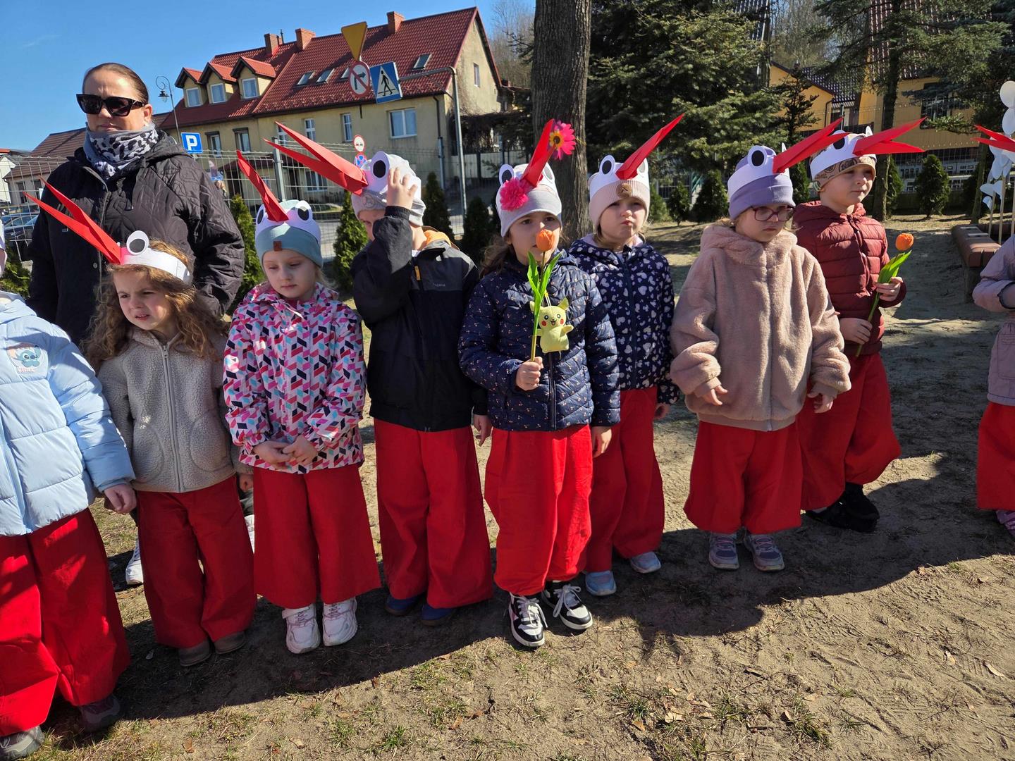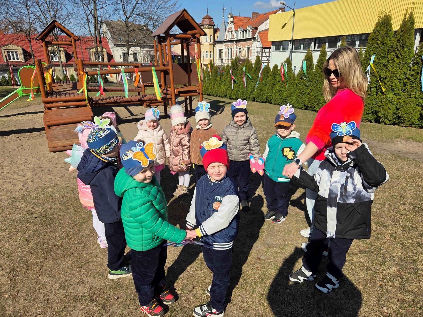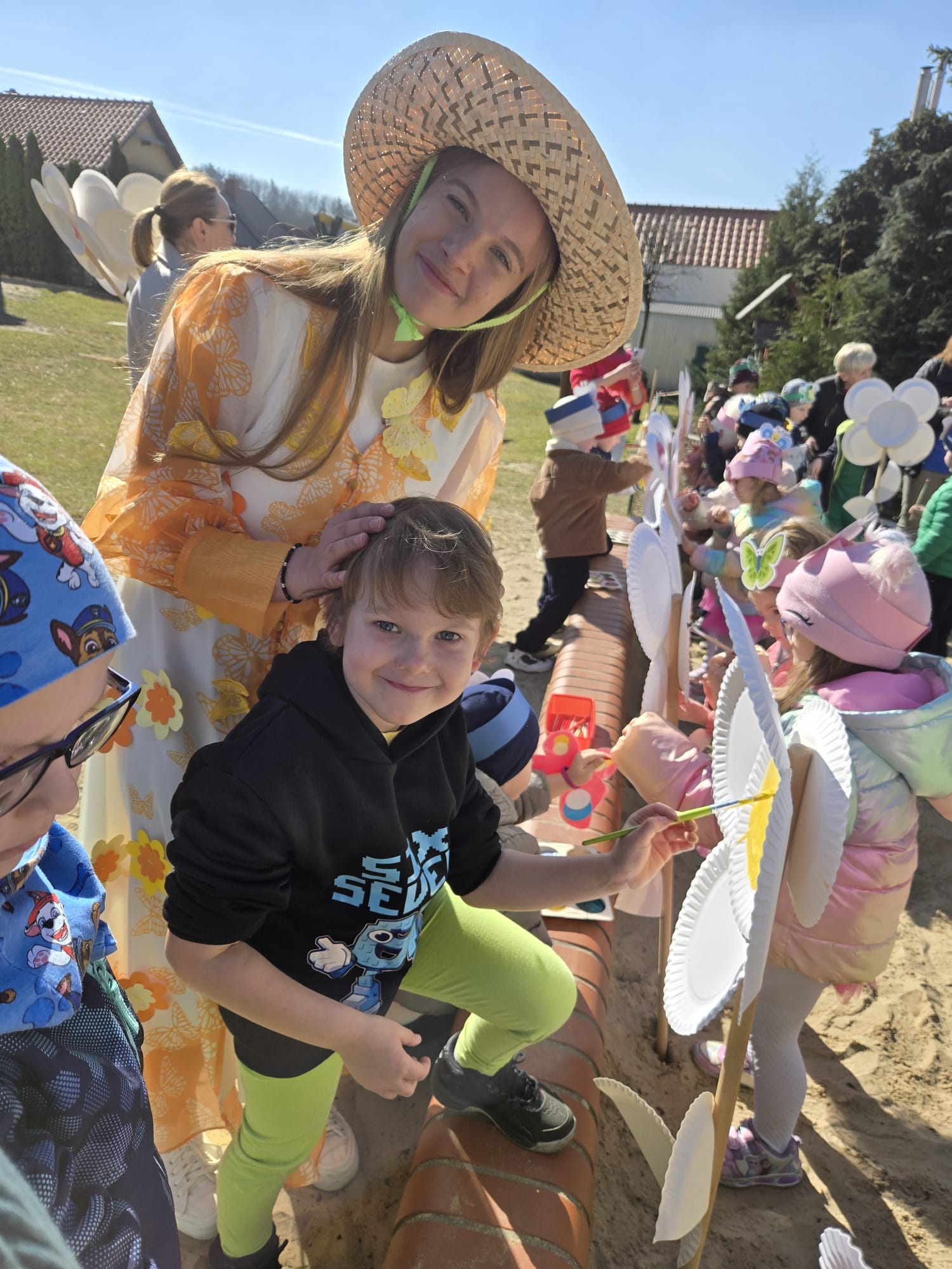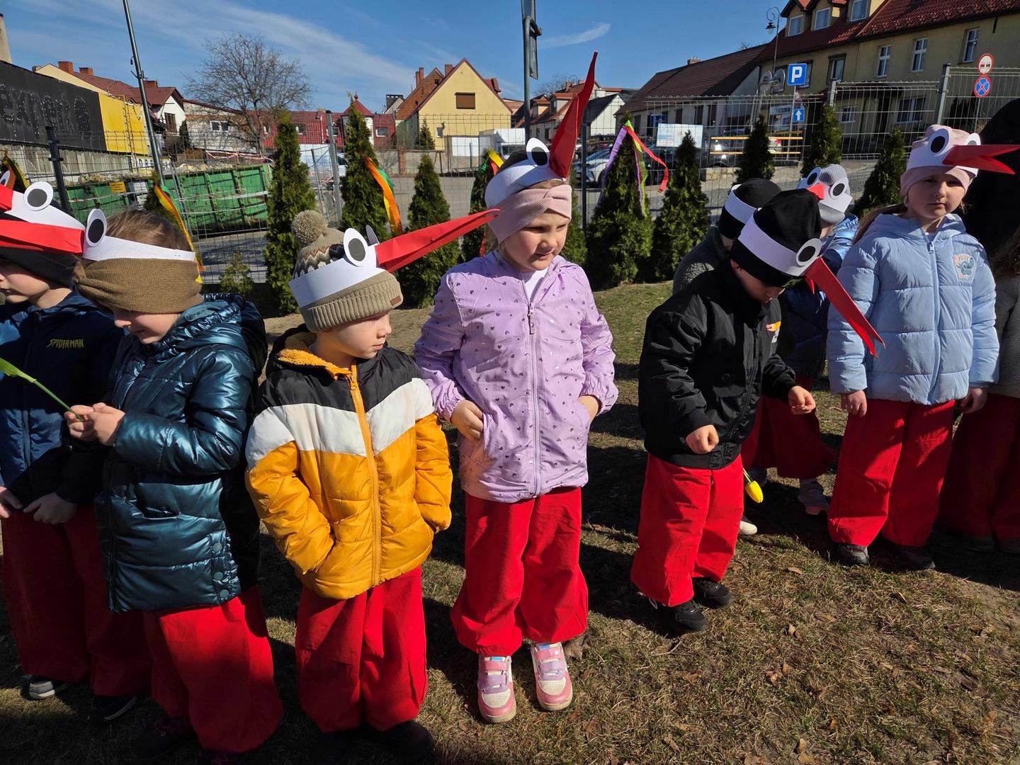 W dniu 19 marca w Przedszkolu Miejskim nr 1 „Bajkowy Świat” w Czarnkowie odbyło się wyjątkowe wydarzenie – uroczyste powitanie wiosny. Już od samego rana przedszkole wypełniło się barwami i uśmiechami. Dzieci z poszczególnych grup przebrały się za zwiastuny wiosny – żabki, bociany, pszczółki, biedronki, motylki oraz kwiaty. Kolorowe stroje nadały wydarzeniu wyjątkowy, bajkowy charakter. Uroczystość rozpoczęła się symbolicznym pożegnaniem zimy – dzieci „uśpiły” Marzannę przy dźwiękach „Walczyka z motylkami”. Następnie po kwiecistym dywanie wkroczyła Wiosna, którą przedszkolaki powitały piosenką „Witaj wiosno ukochana”. Wiosna obdarowała dzieci kwiatami i zaprosiła do wspólnej zabawy. Wśród atrakcji znalazły się m.in. zabawy ruchowe takie jak „Podaj kwiatka czy zabawa z bocianem, a także zajęcia plastyczne – malowanie wiosennych kwiatów.
