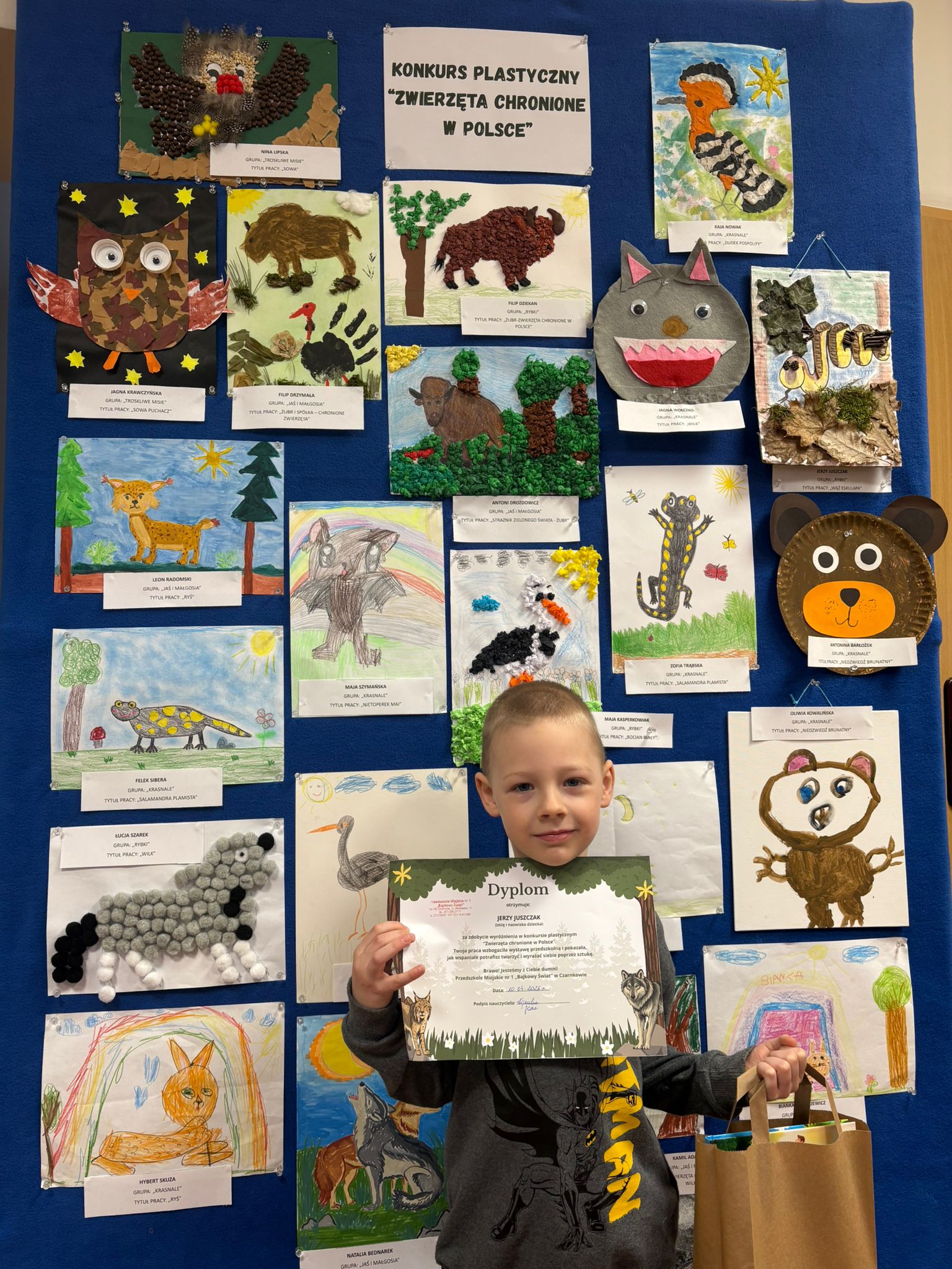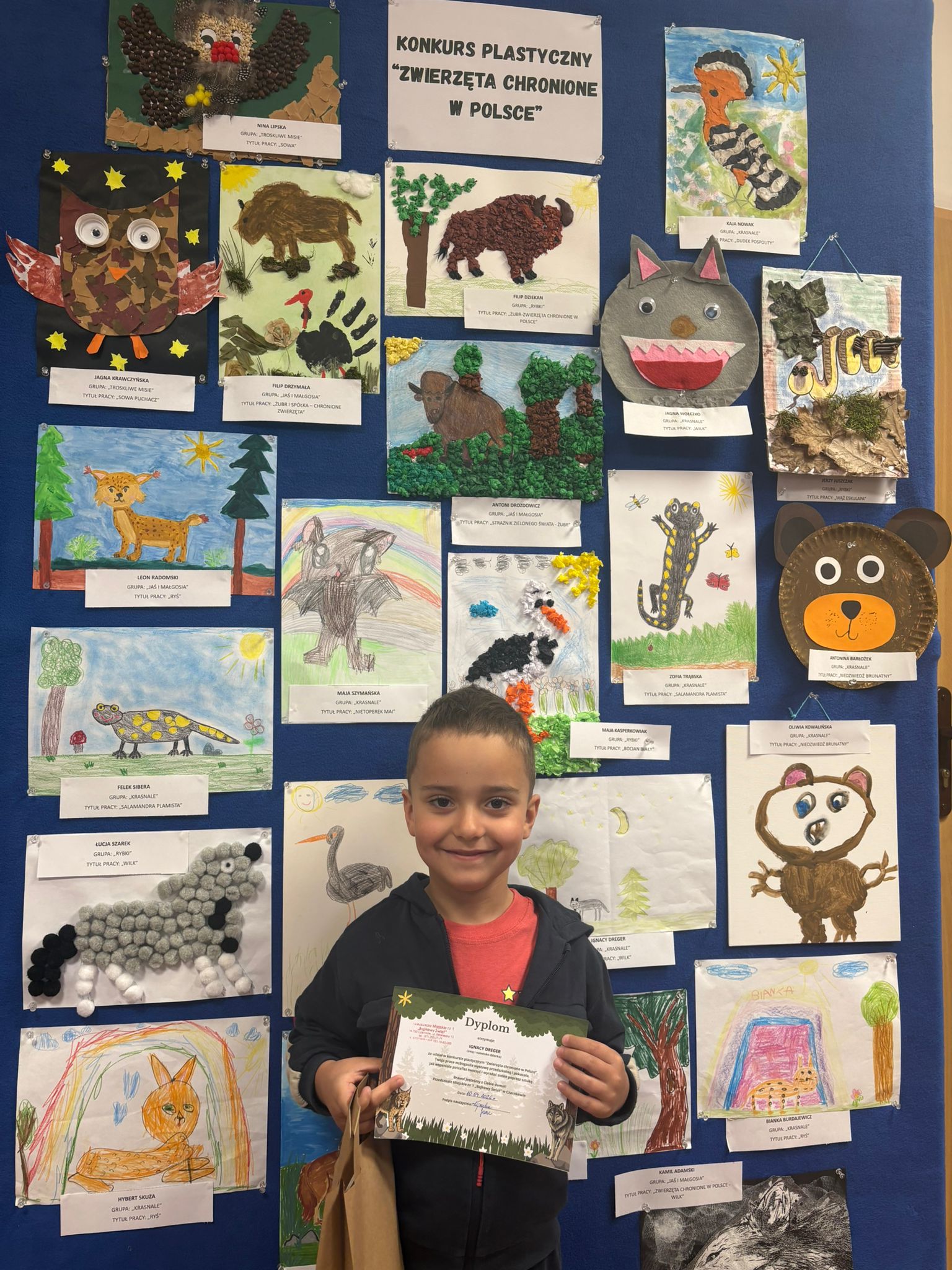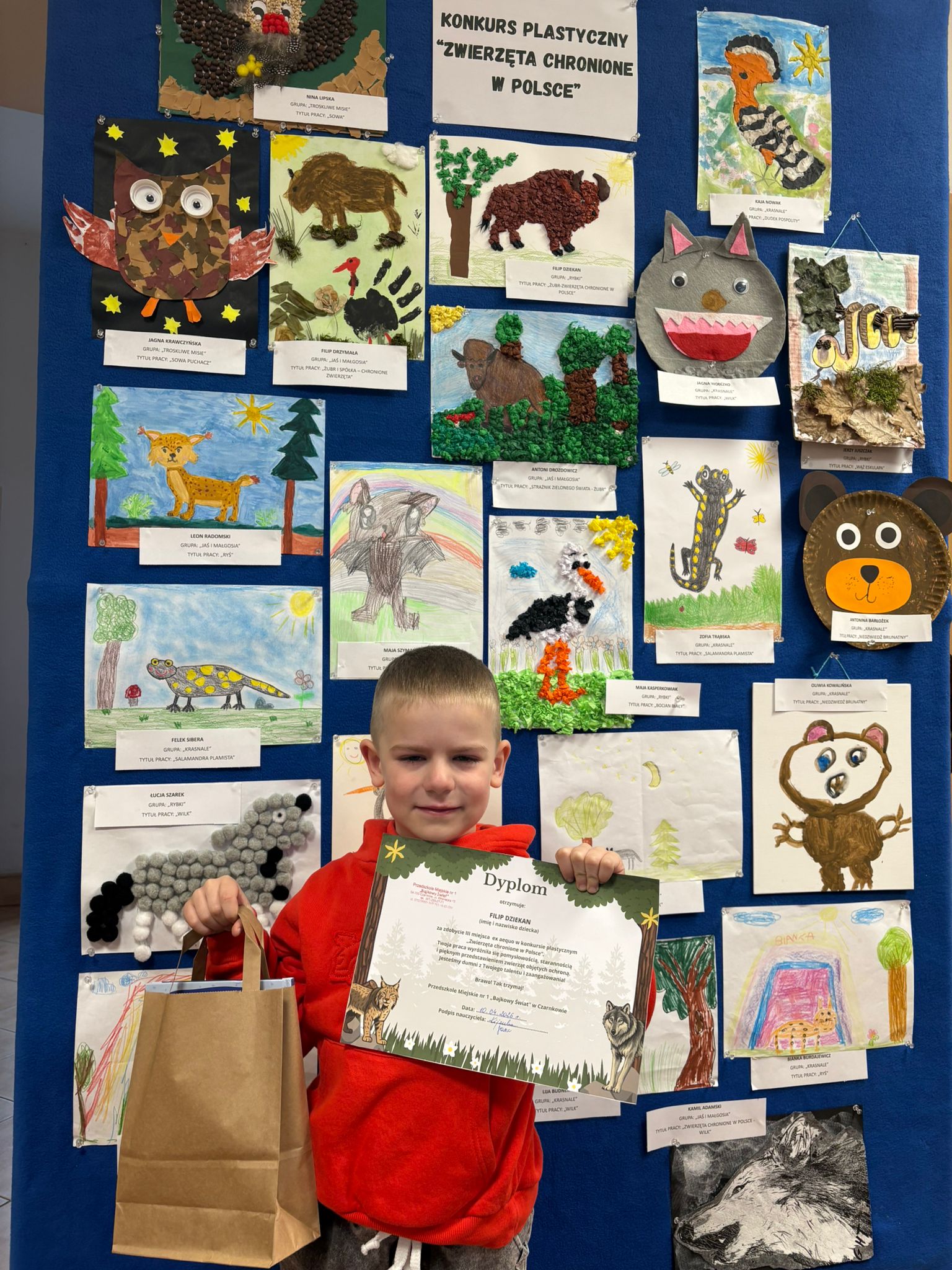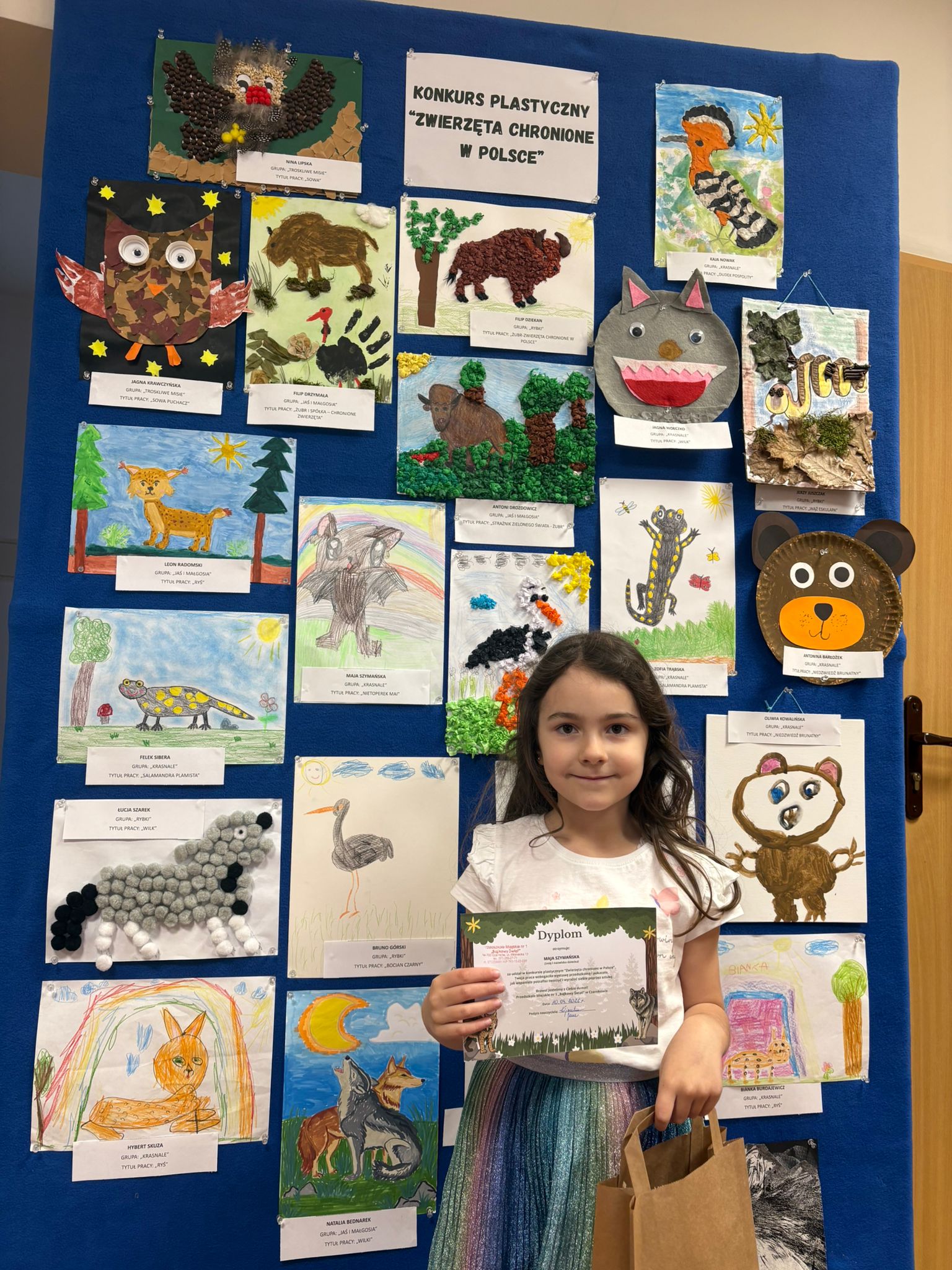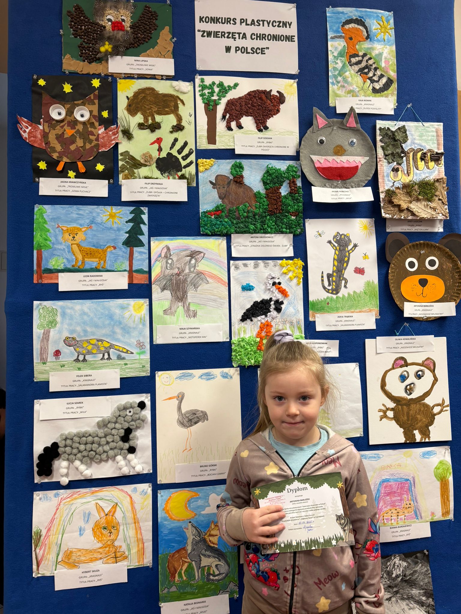 W konkursie plastycznym skierowanym do dzieci z grup 4 i 5‑letnich pt. „Zwierzęta chronione w Polsce” udział wzięło 23 dzieci. Celem głównym konkursu było przedstawienie wybranego gatunku zwierzęcia objętego ochroną w Polsce w formie pracy plastycznej.