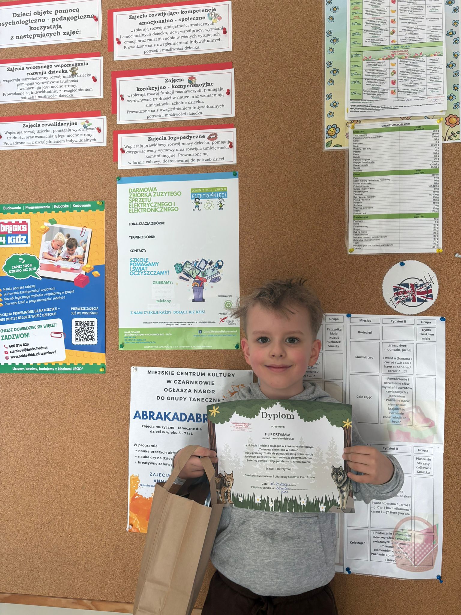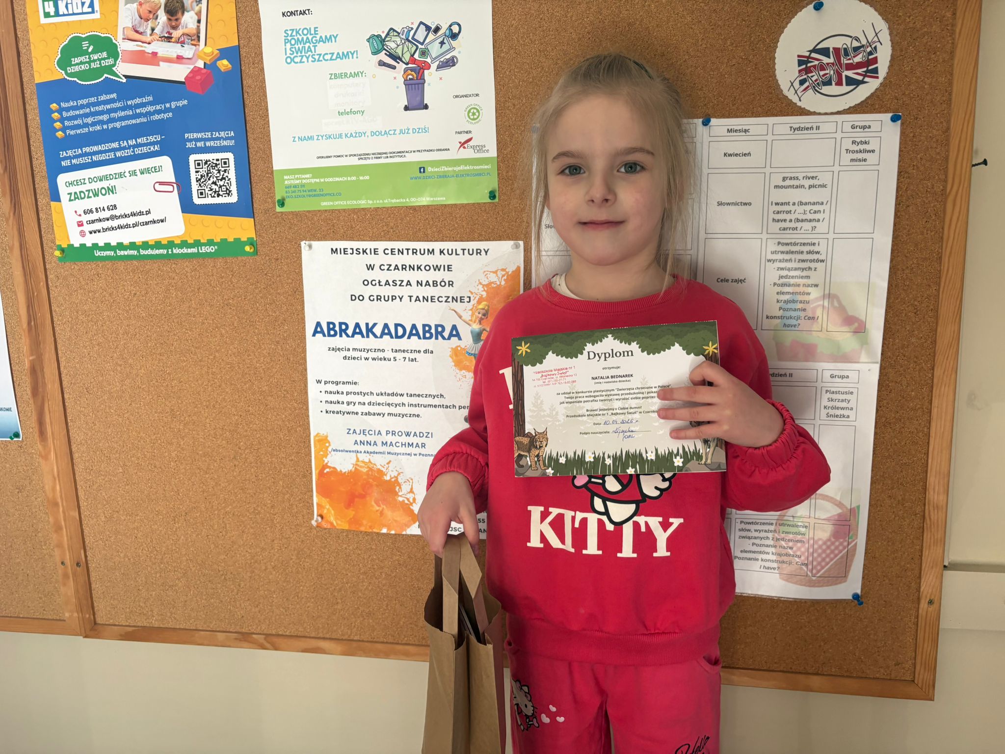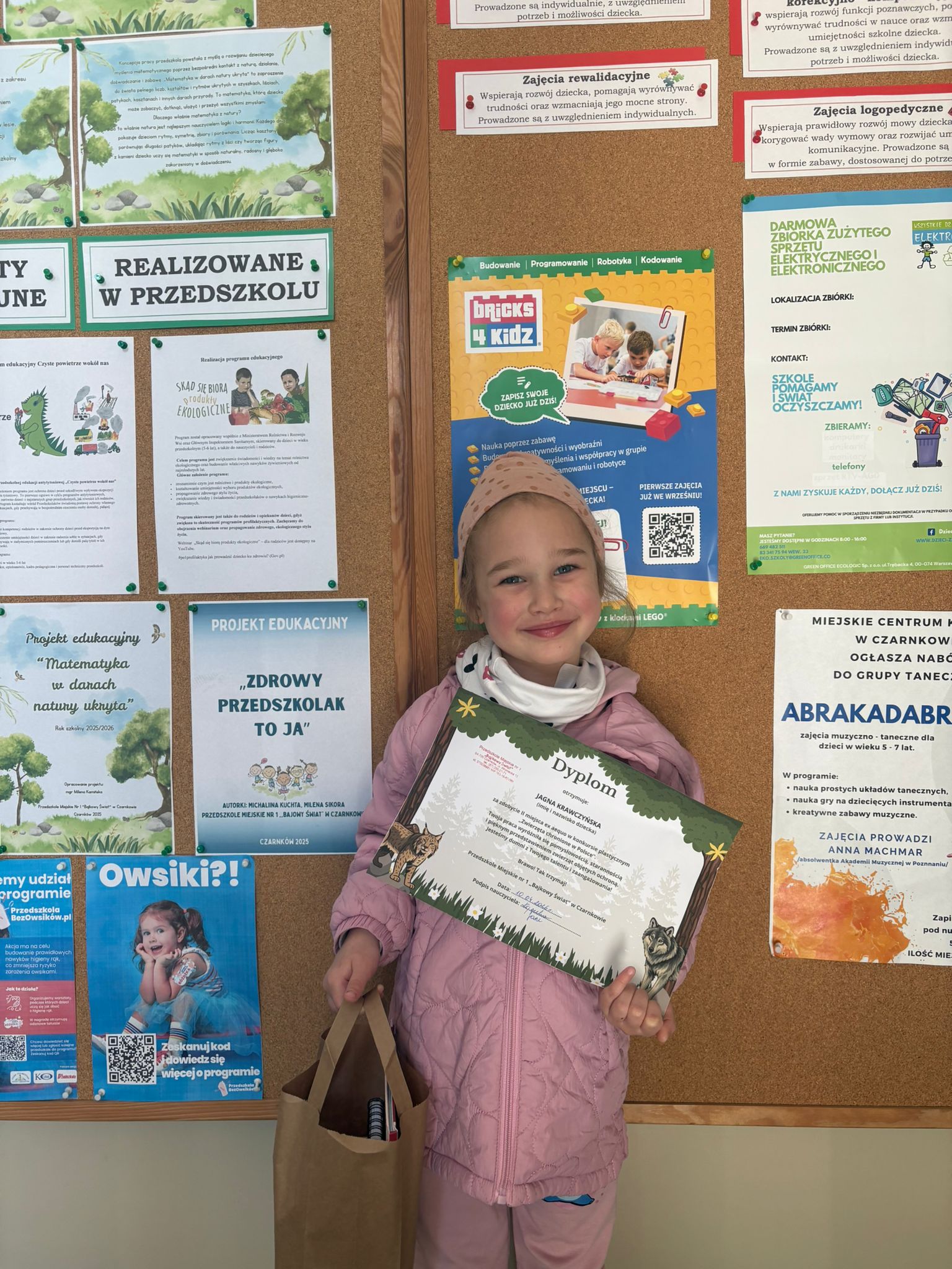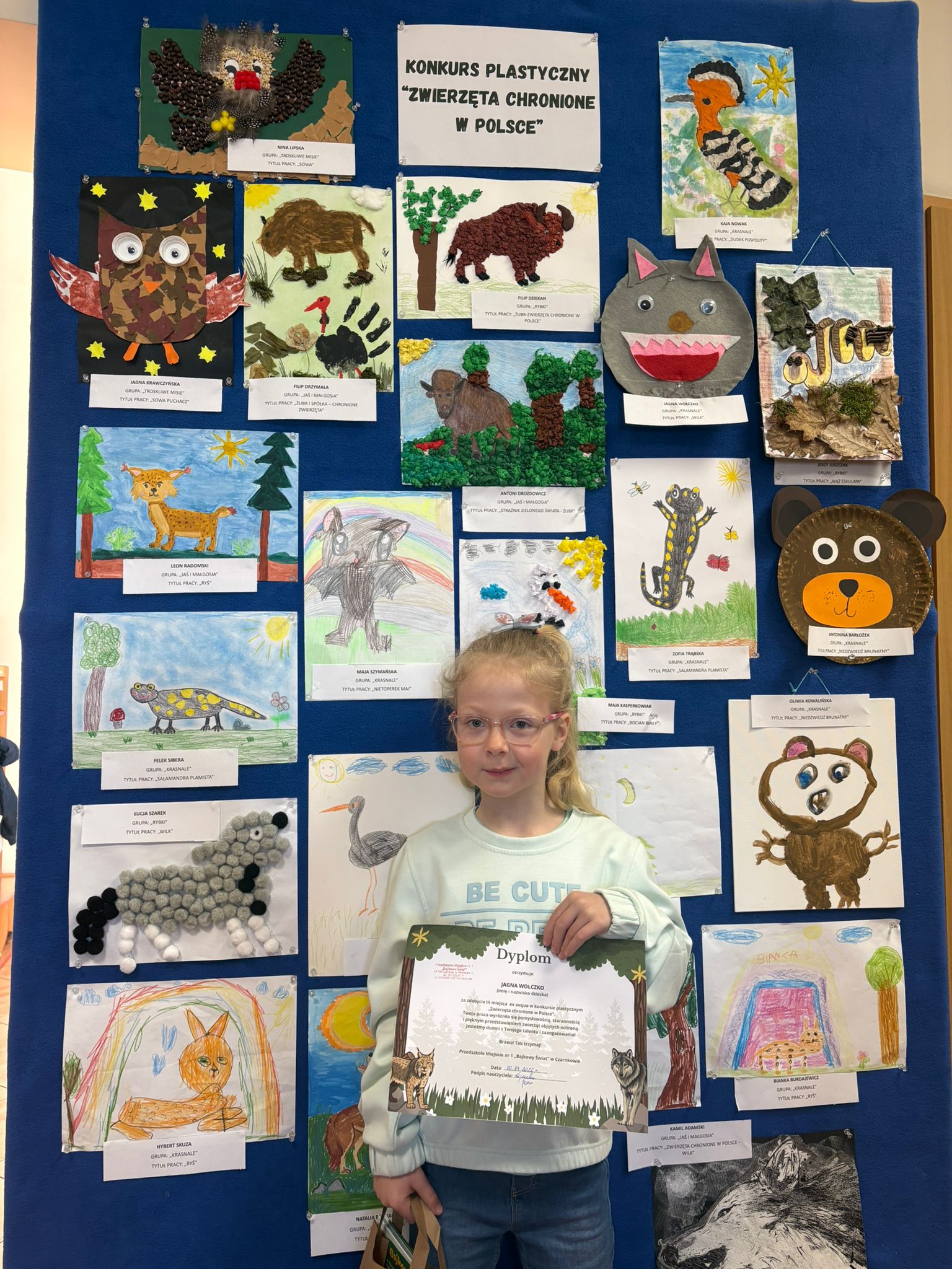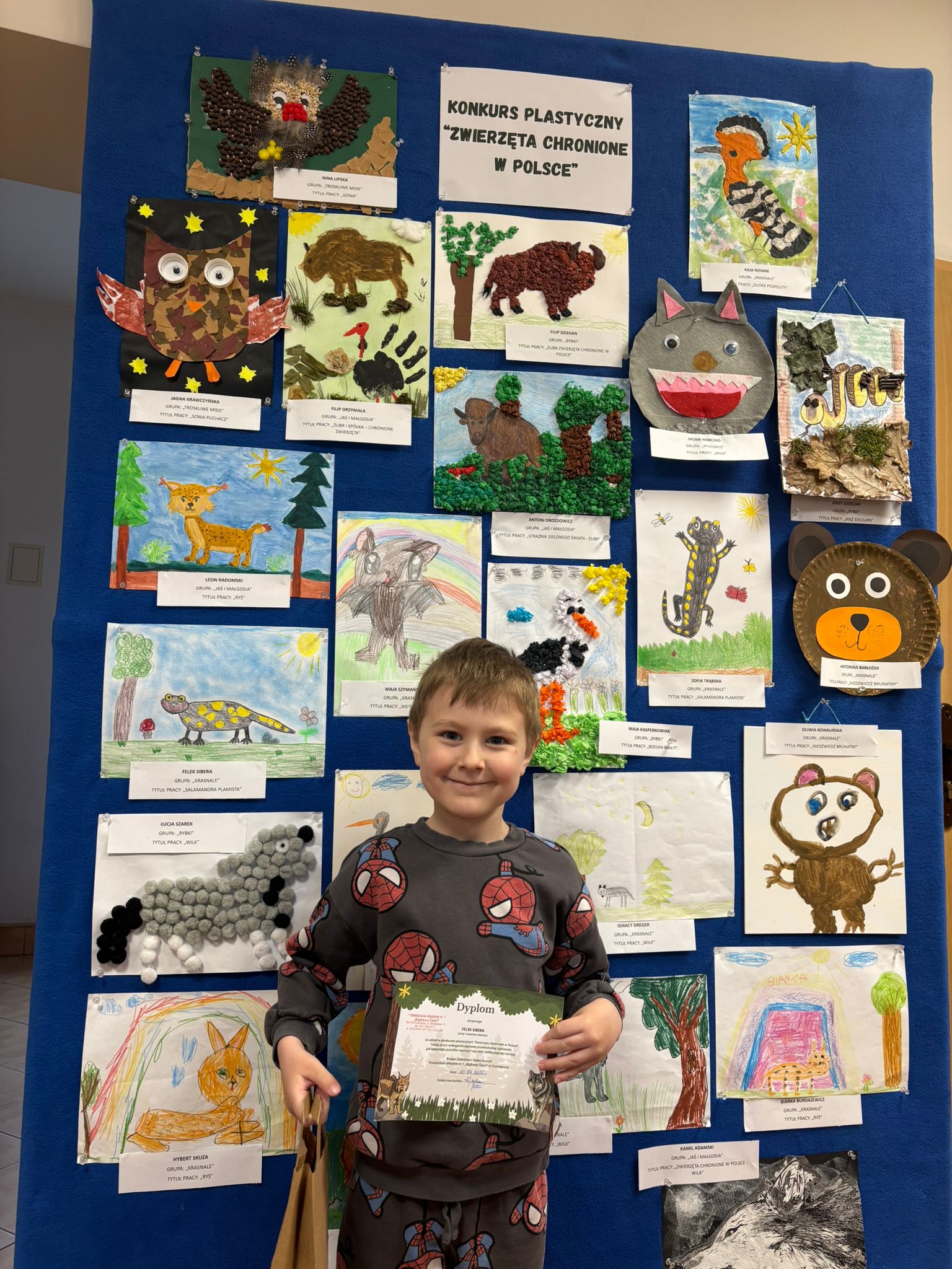 W konkursie plastycznym skierowanym do dzieci z grup 4 i 5‑letnich pt. „Zwierzęta chronione w Polsce” udział wzięło 23 dzieci. Celem głównym konkursu było przedstawienie wybranego gatunku zwierzęcia objętego ochroną w Polsce w formie pracy plastycznej.