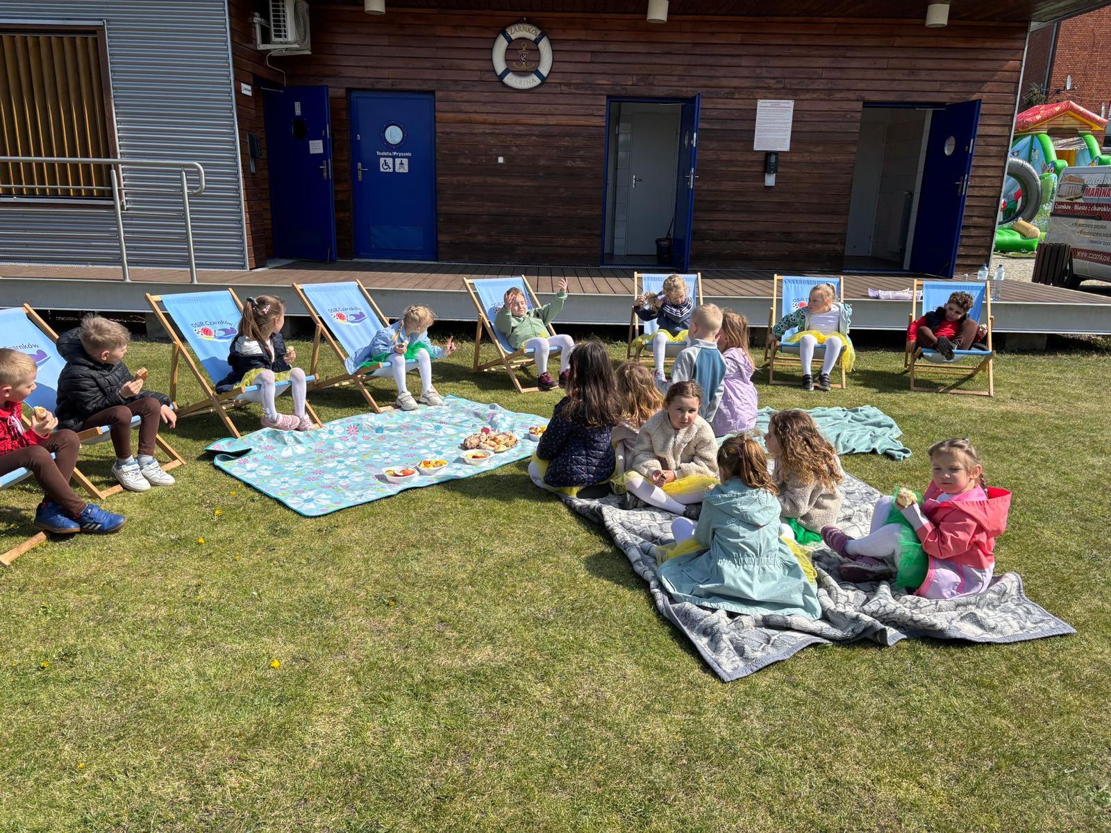 Nie zabrakło także czasu na relaks i wspólną zabawę. Najmłodsi uczestnicy mogli odpocząć na leżakach w malowniczej, plenerowej scenerii, skosztować pysznych smakołyków oraz spędzić aktywnie czas na dmuchanym zamku.
