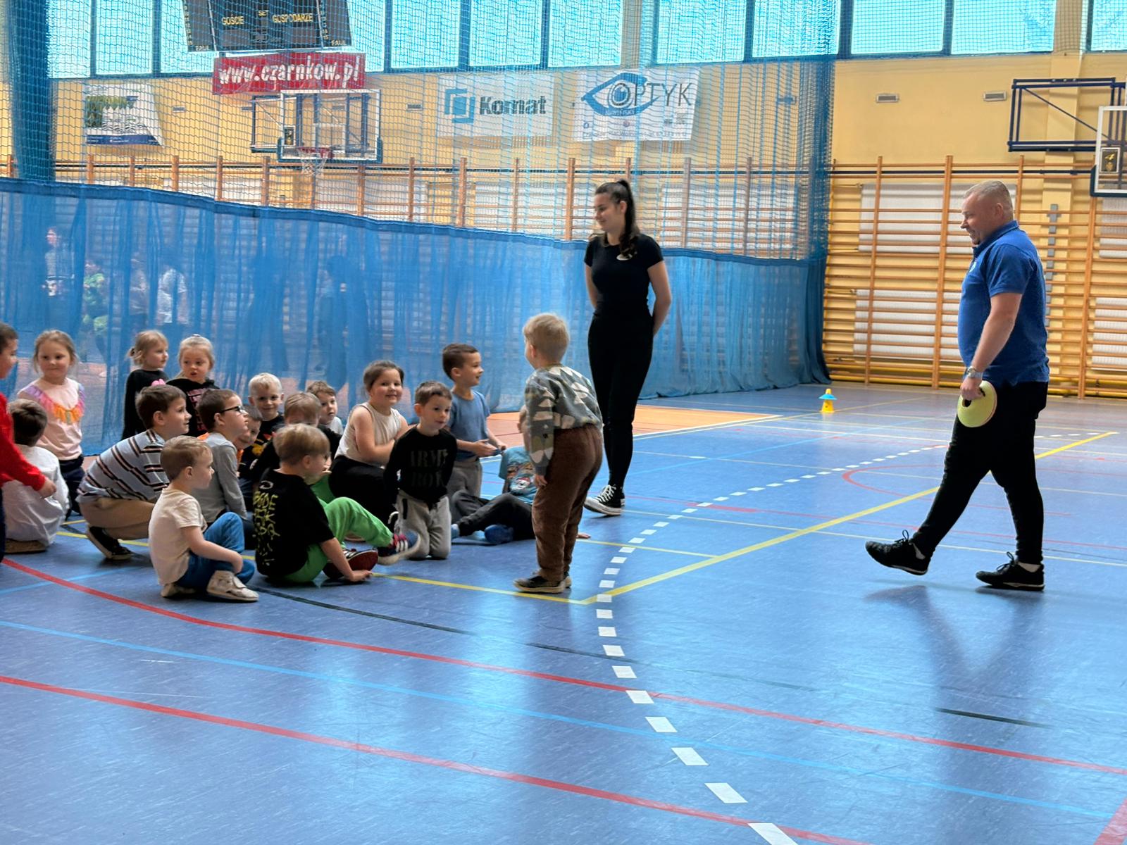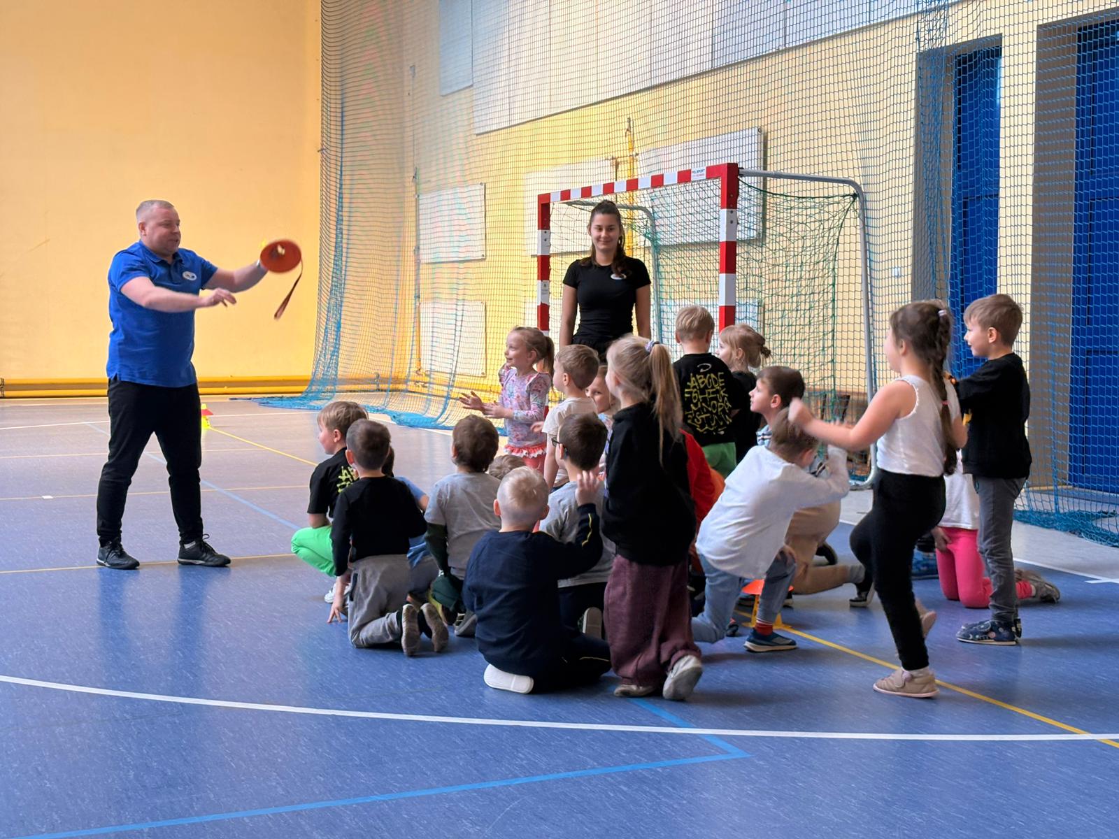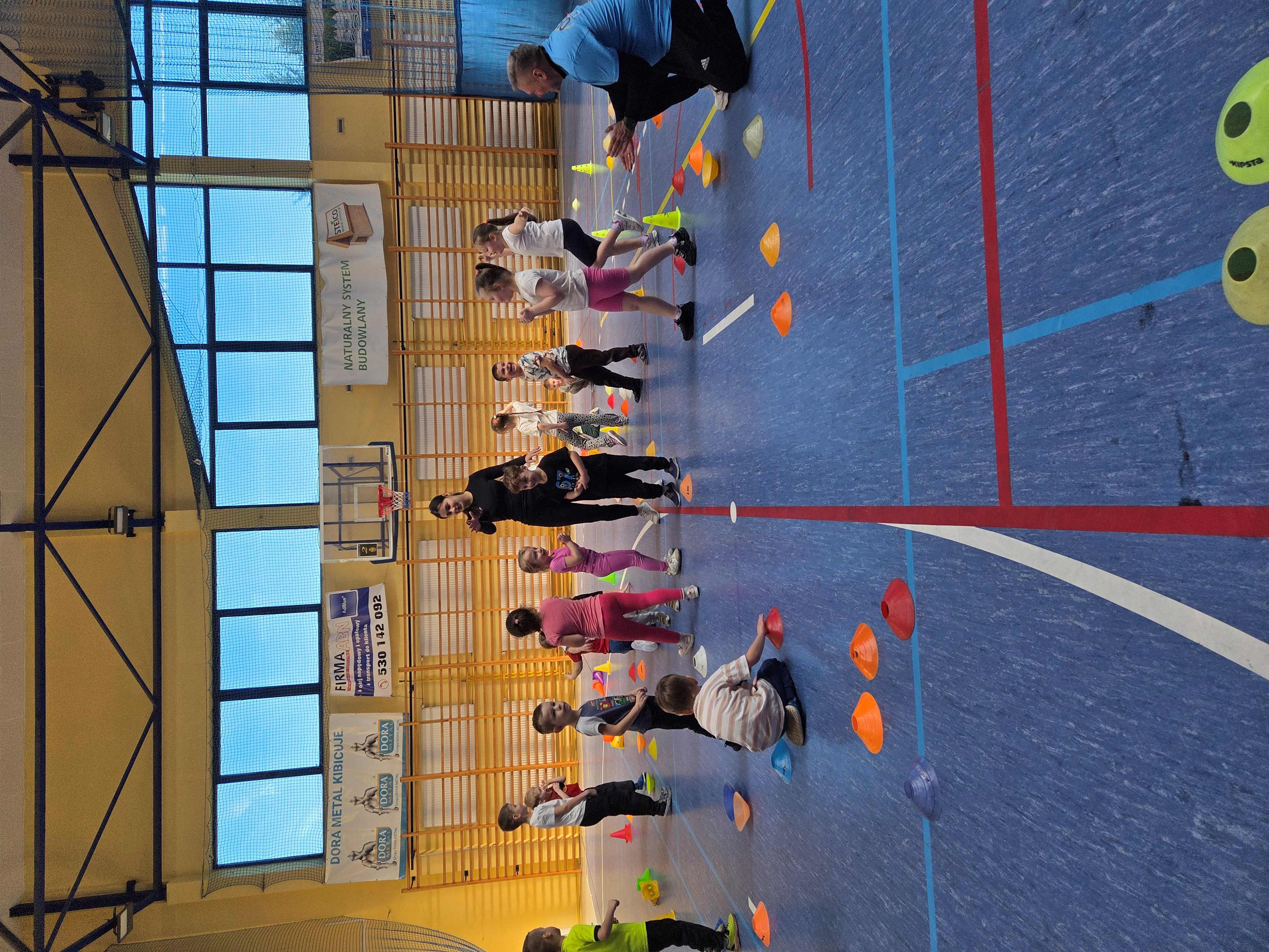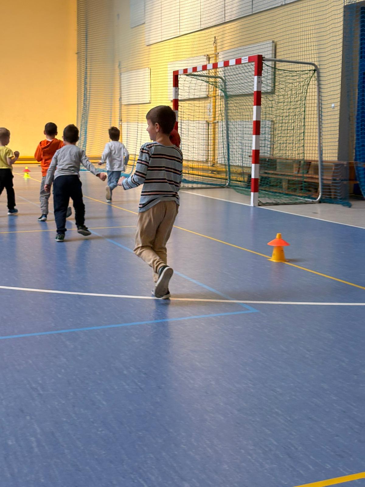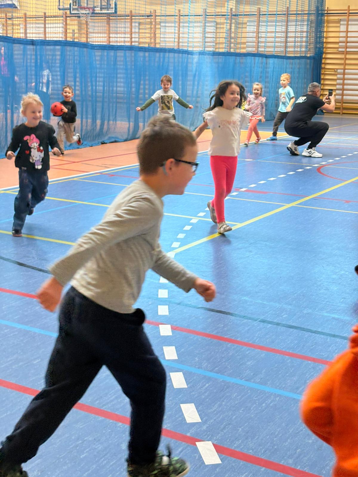 Podczas spotkań dzieci uczestniczyły w różnorodnych zabawach ruchowych, ćwiczeniach ogólnorozwojowych oraz aktywnościach sportowych dostosowanych do ich wieku i możliwości. Zajęcia przebiegały w miłej, radosnej atmosferze, a przedszkolaki z ogromnym zaangażowaniem i uśmiechem brały udział we wszystkich proponowanych formach aktywności. Nie brakowało energii, zdrowej rywalizacji oraz wspólnej zabawy.