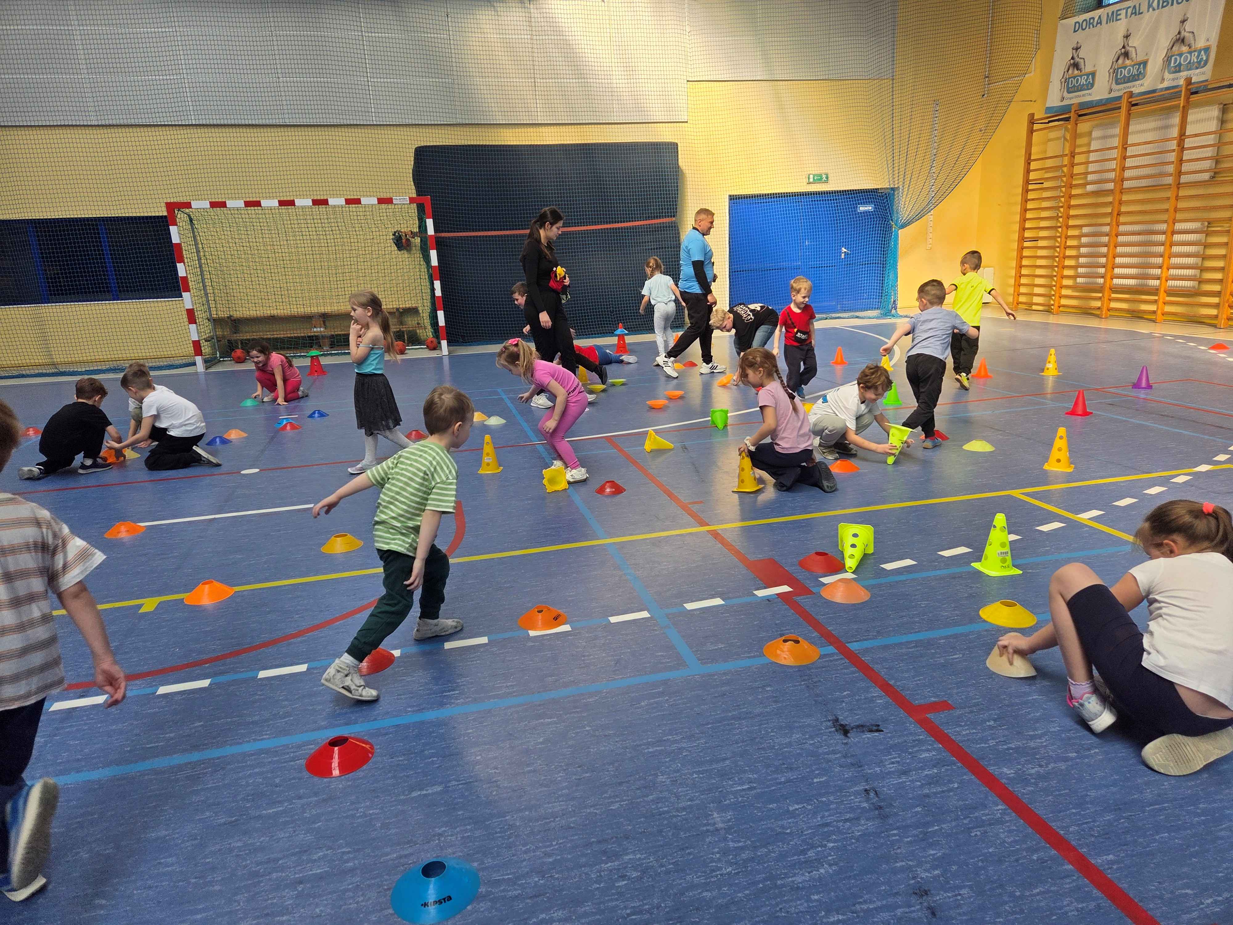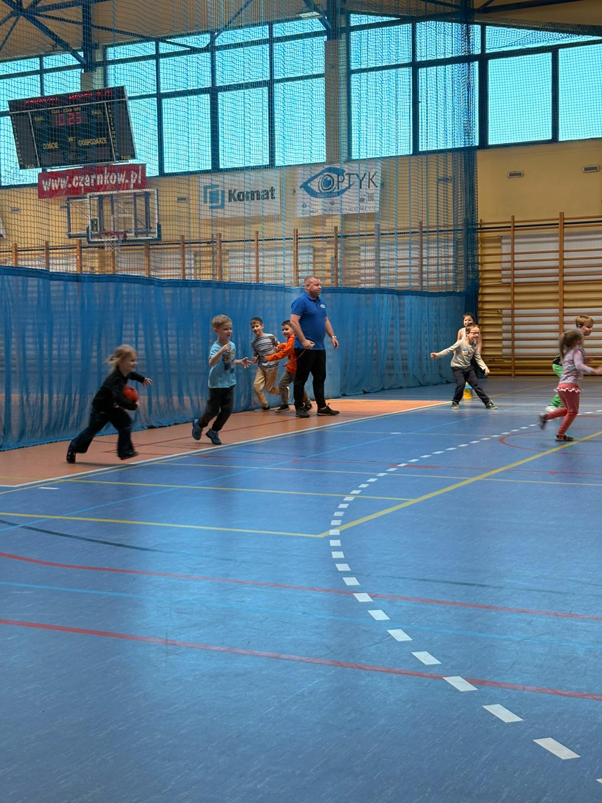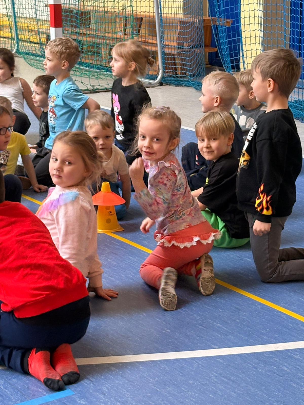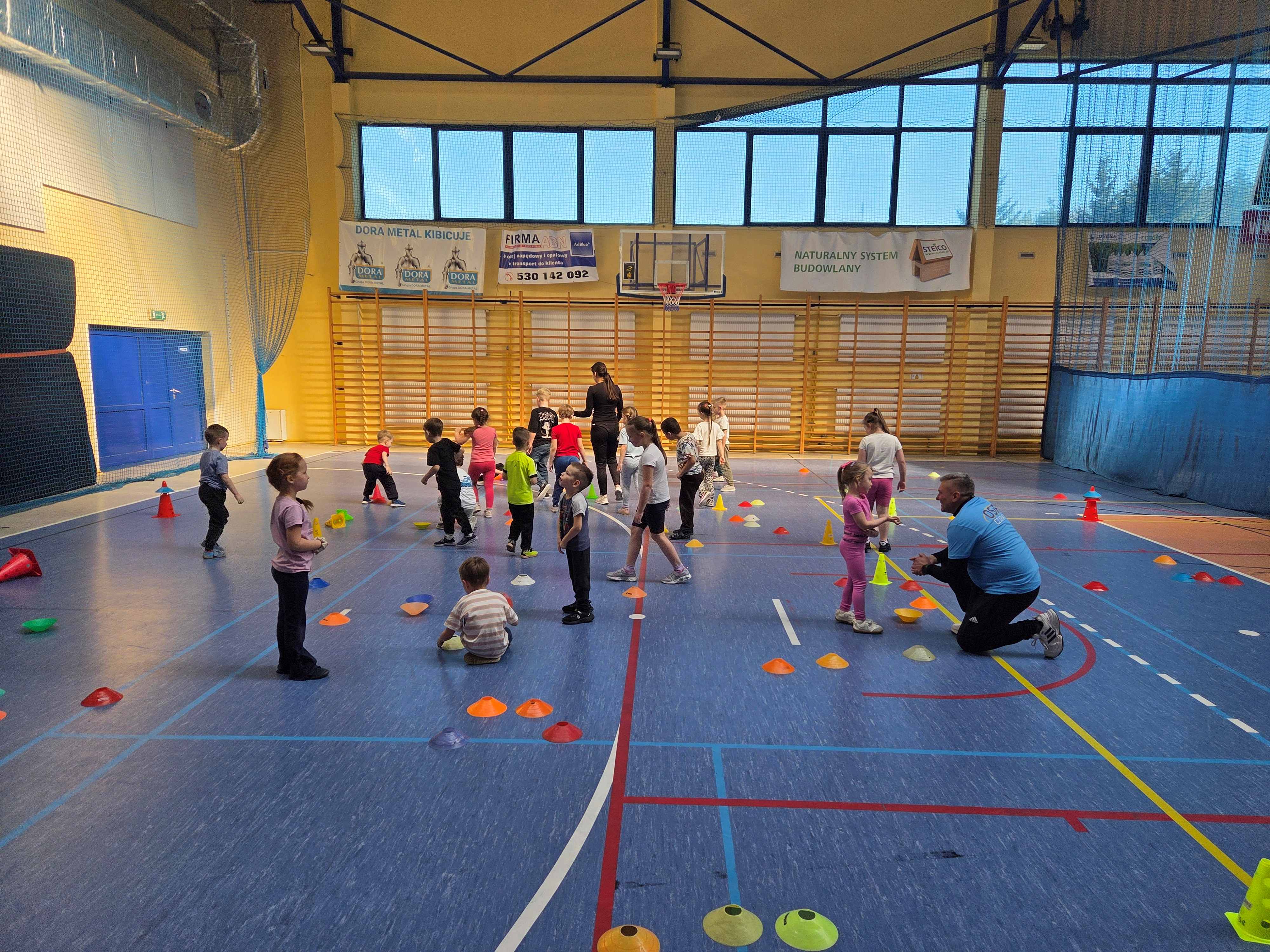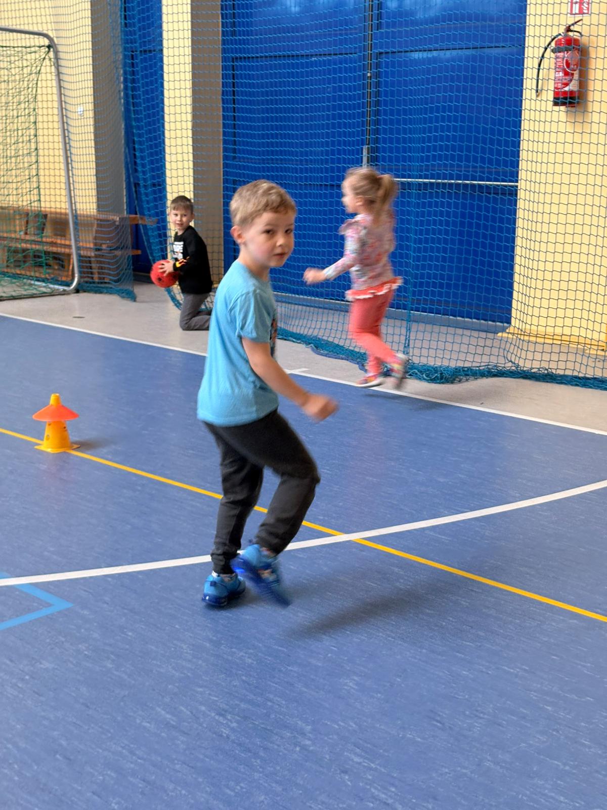 Podczas spotkań dzieci uczestniczyły w różnorodnych zabawach ruchowych, ćwiczeniach ogólnorozwojowych oraz aktywnościach sportowych dostosowanych do ich wieku i możliwości. Zajęcia przebiegały w miłej, radosnej atmosferze, a przedszkolaki z ogromnym zaangażowaniem i uśmiechem brały udział we wszystkich proponowanych formach aktywności. Nie brakowało energii, zdrowej rywalizacji oraz wspólnej zabawy.