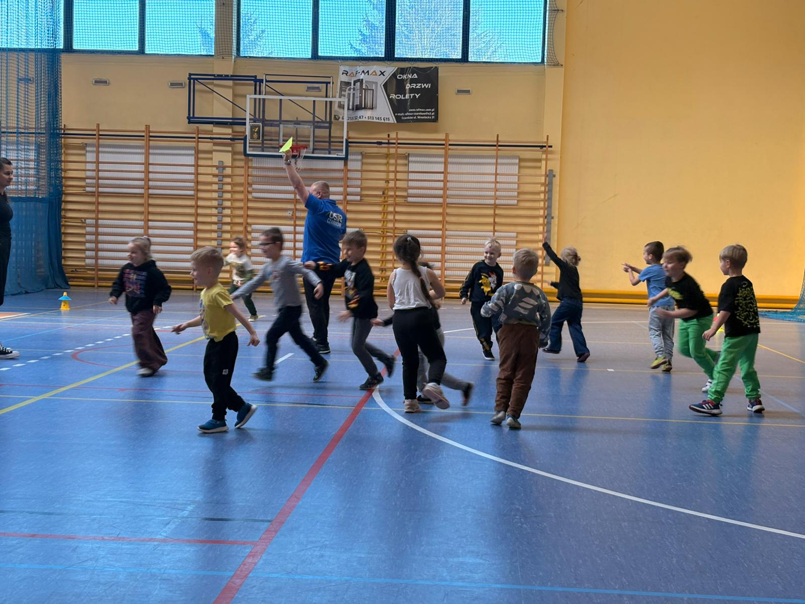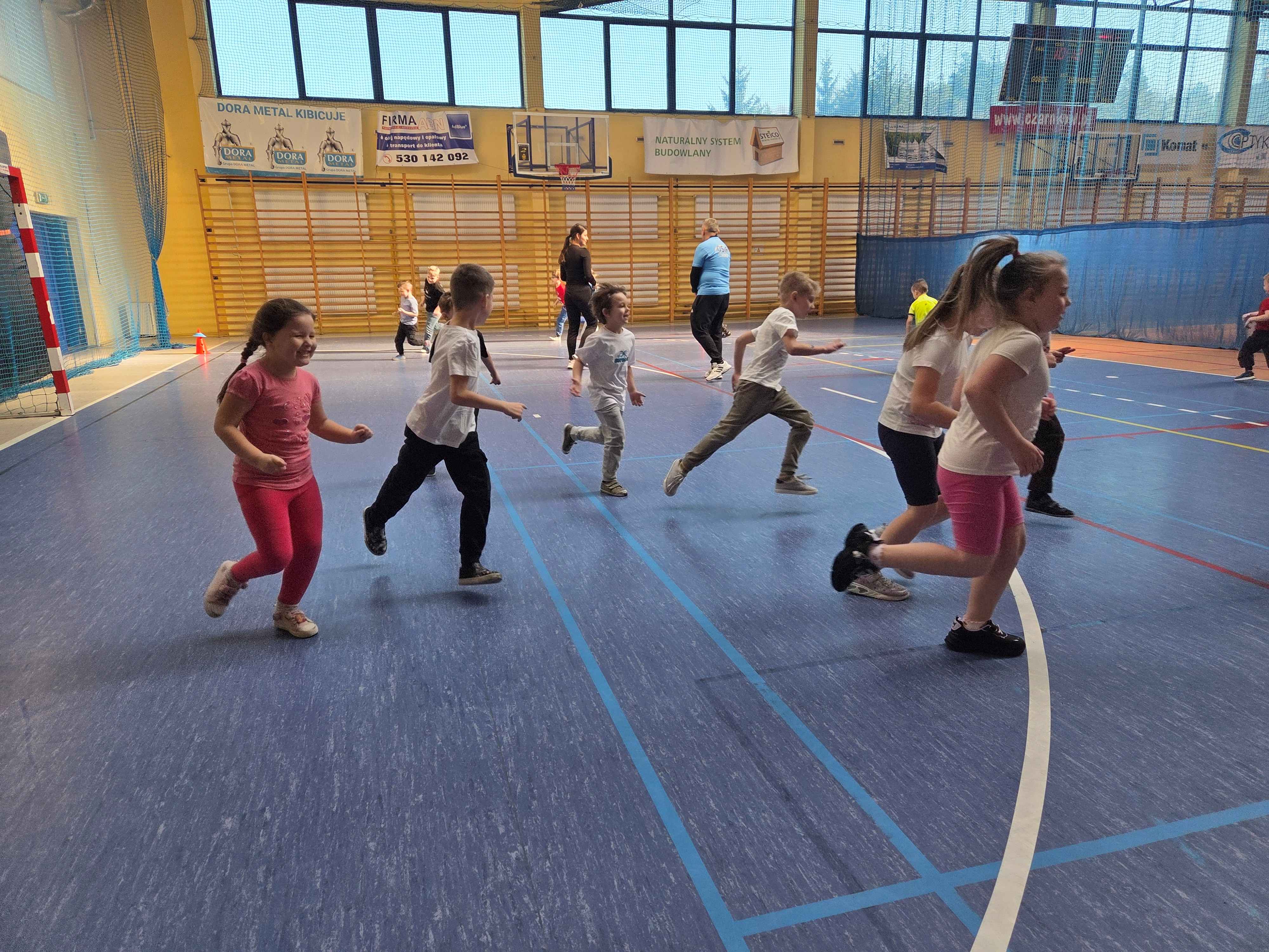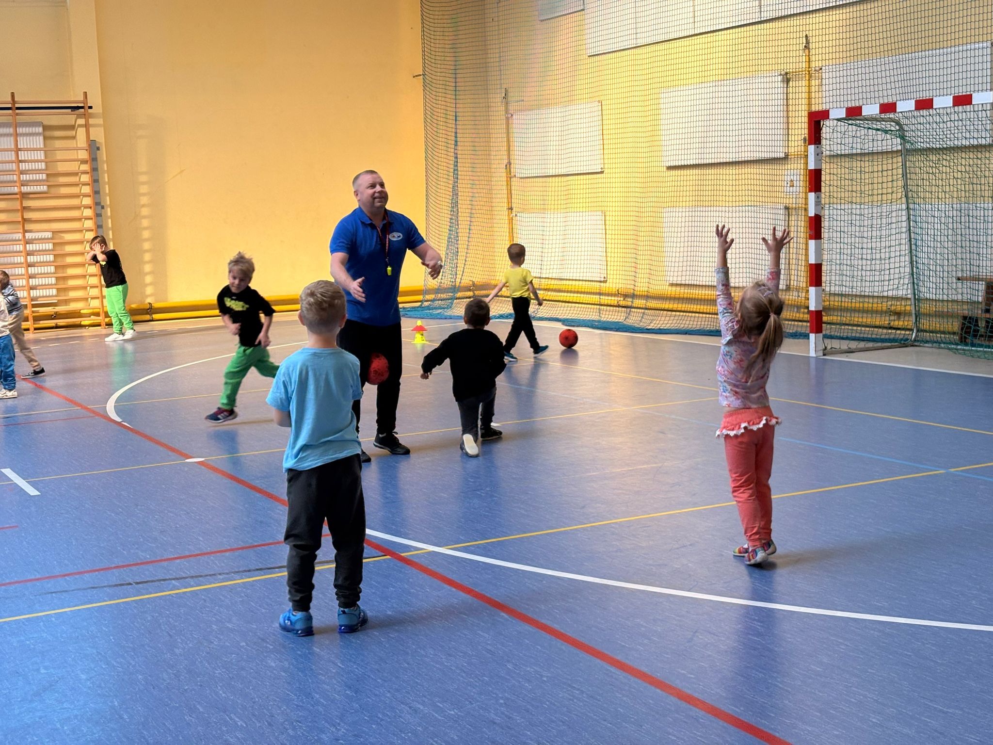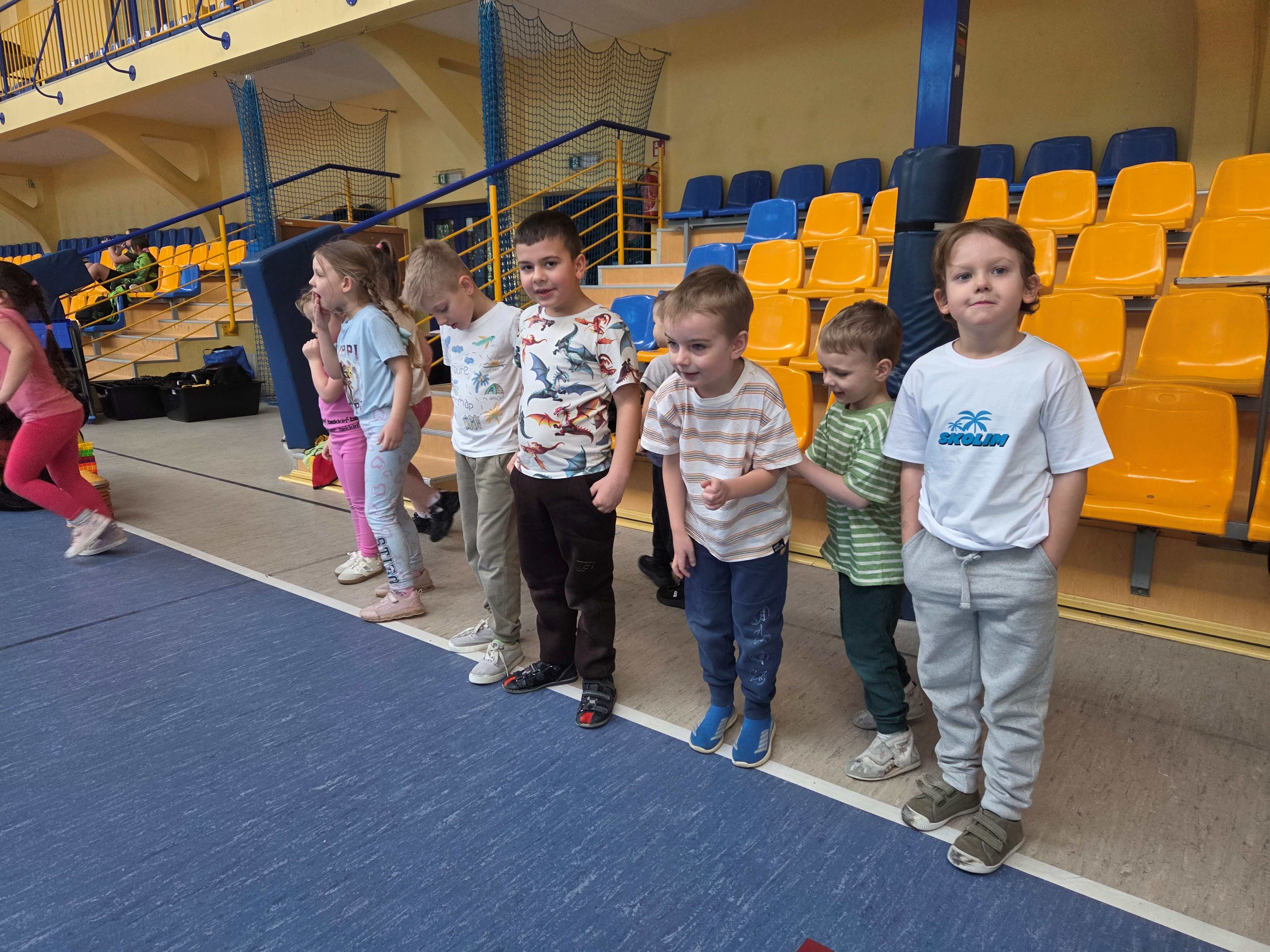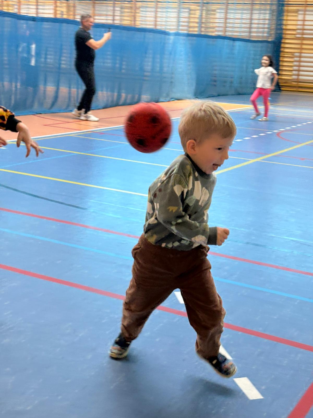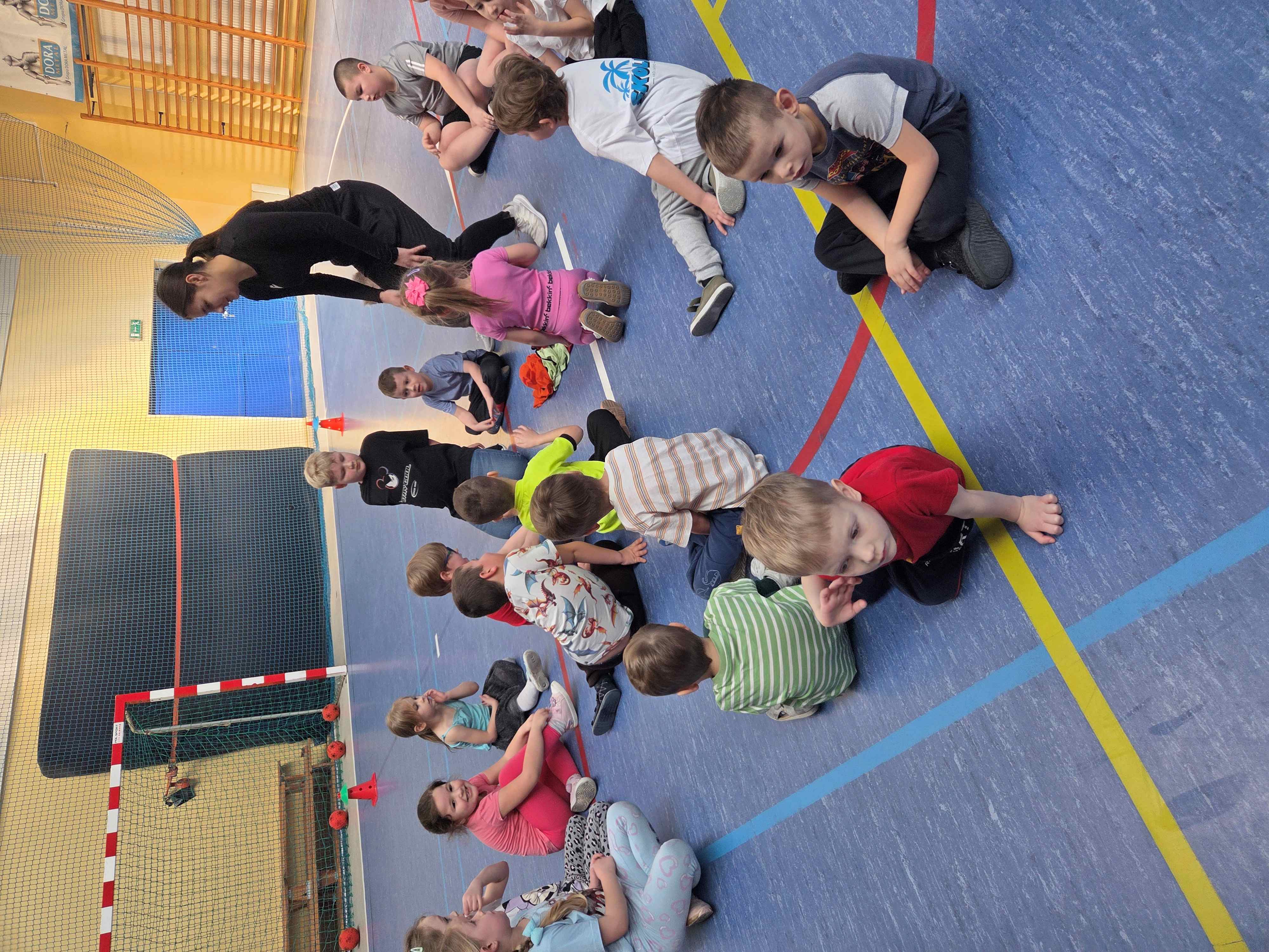 Podczas spotkań dzieci uczestniczyły w różnorodnych zabawach ruchowych, ćwiczeniach ogólnorozwojowych oraz aktywnościach sportowych dostosowanych do ich wieku i możliwości. Zajęcia przebiegały w miłej, radosnej atmosferze, a przedszkolaki z ogromnym zaangażowaniem i uśmiechem brały udział we wszystkich proponowanych formach aktywności. Nie brakowało energii, zdrowej rywalizacji oraz wspólnej zabawy.