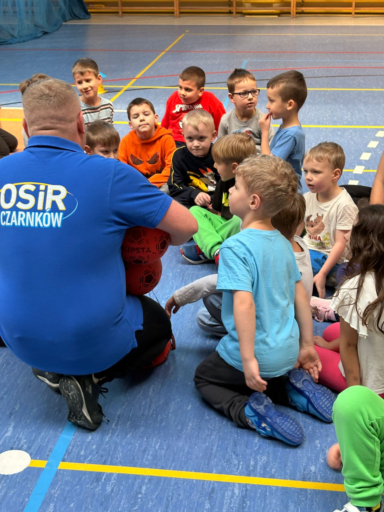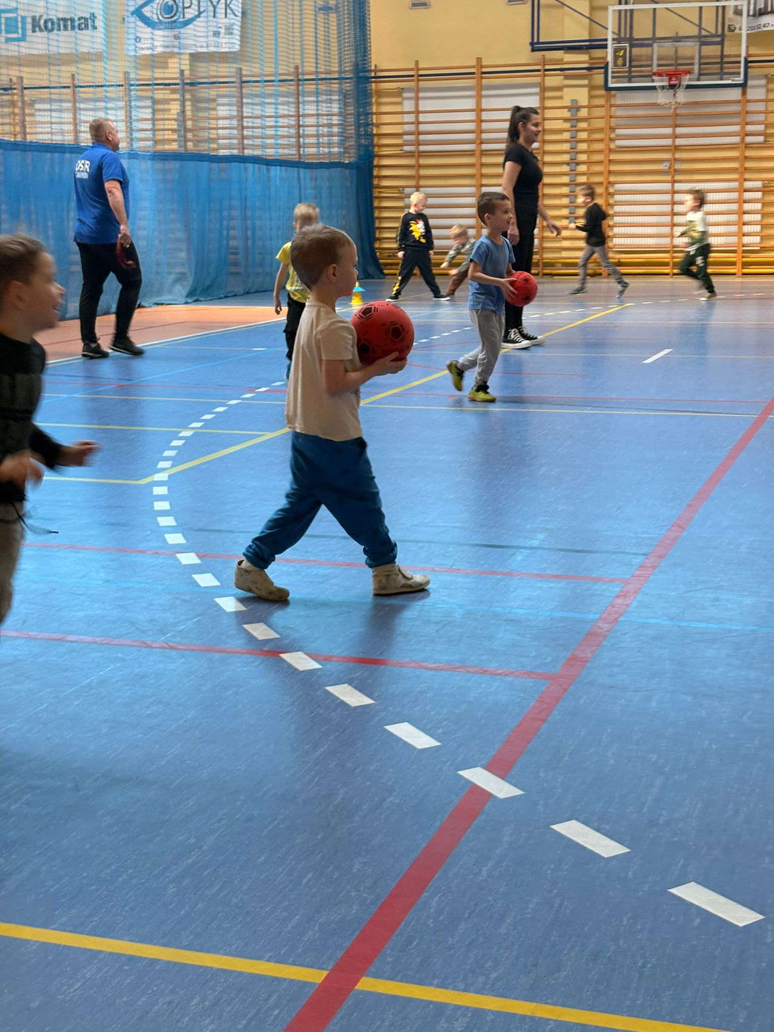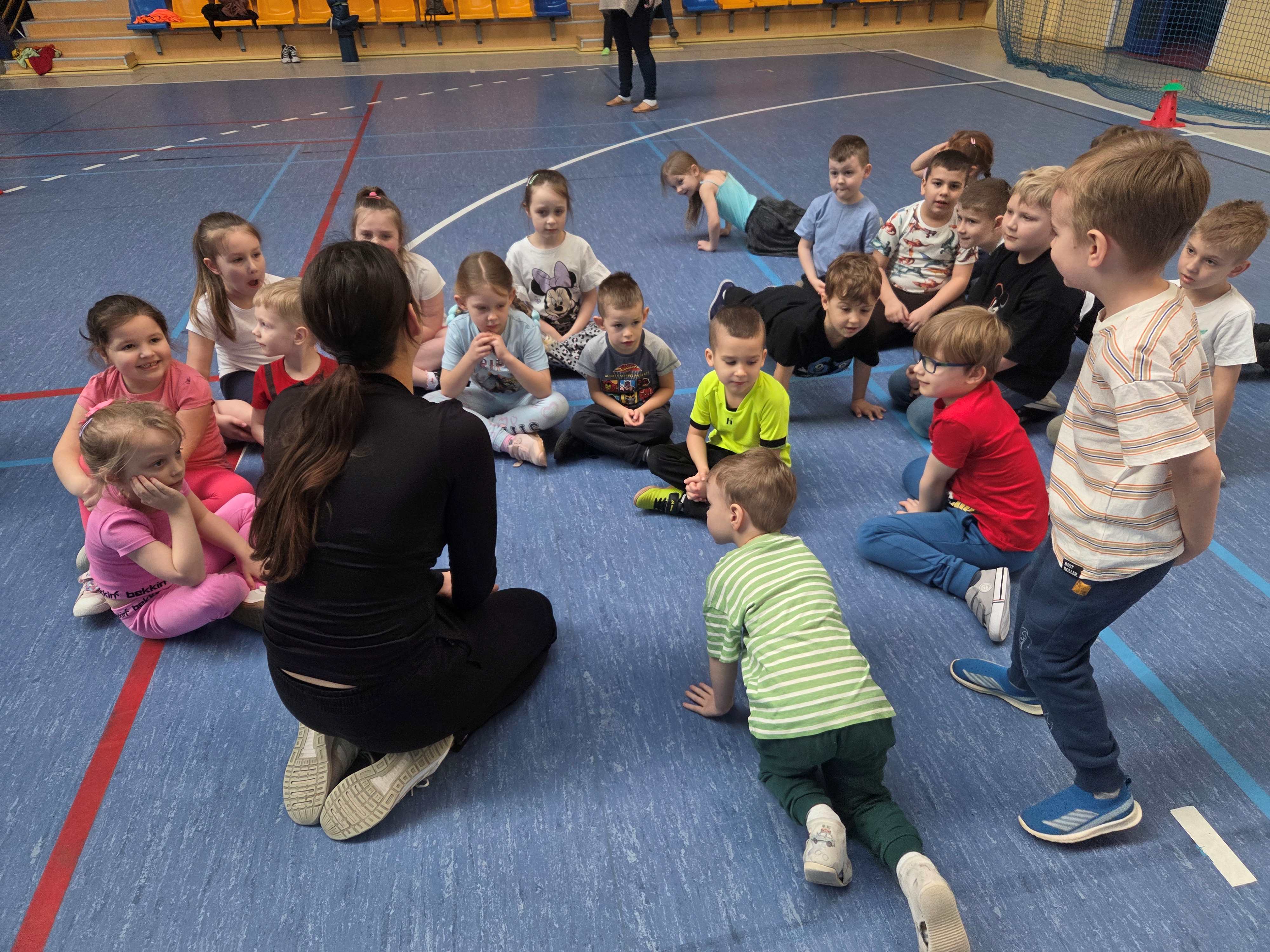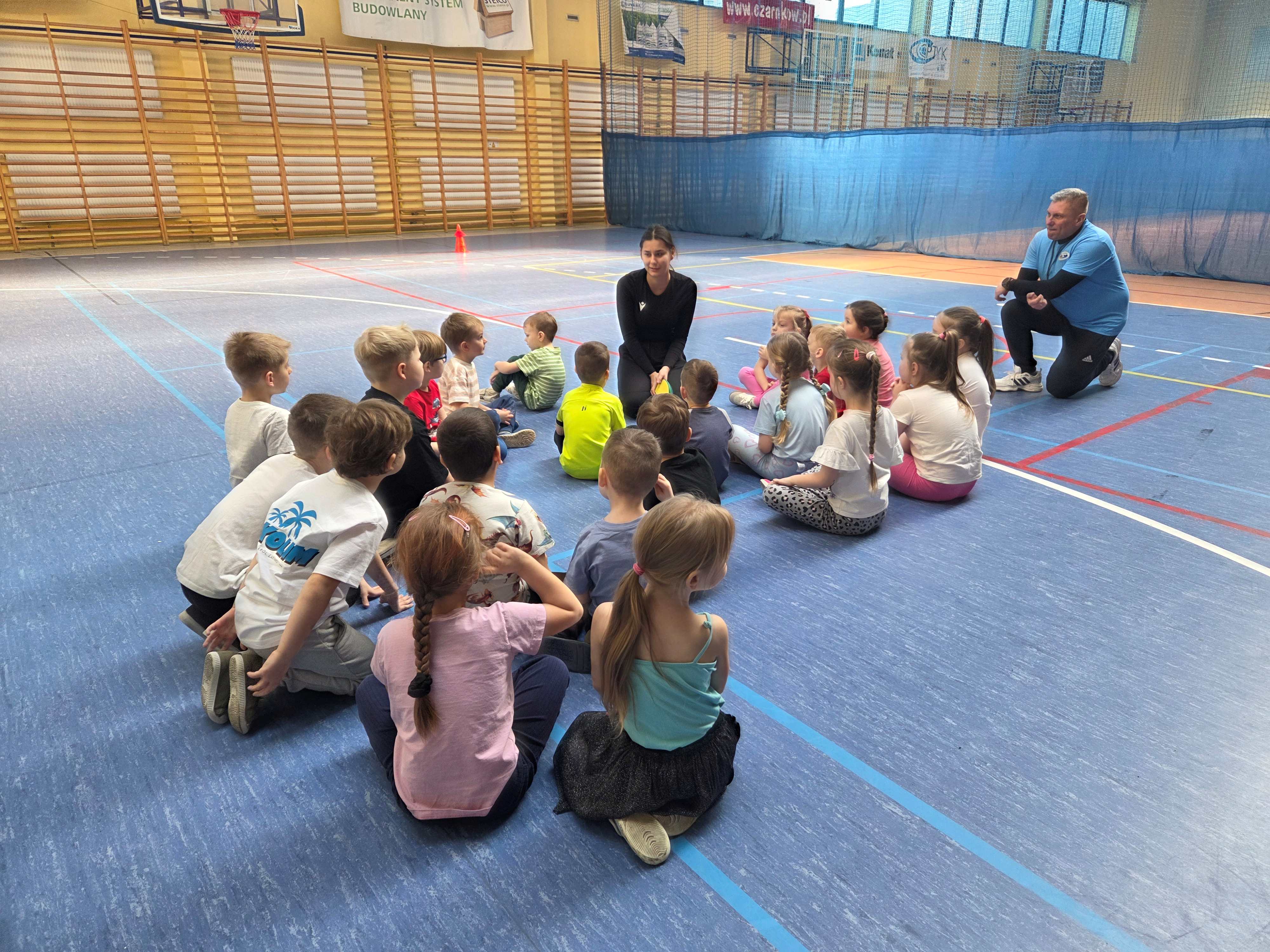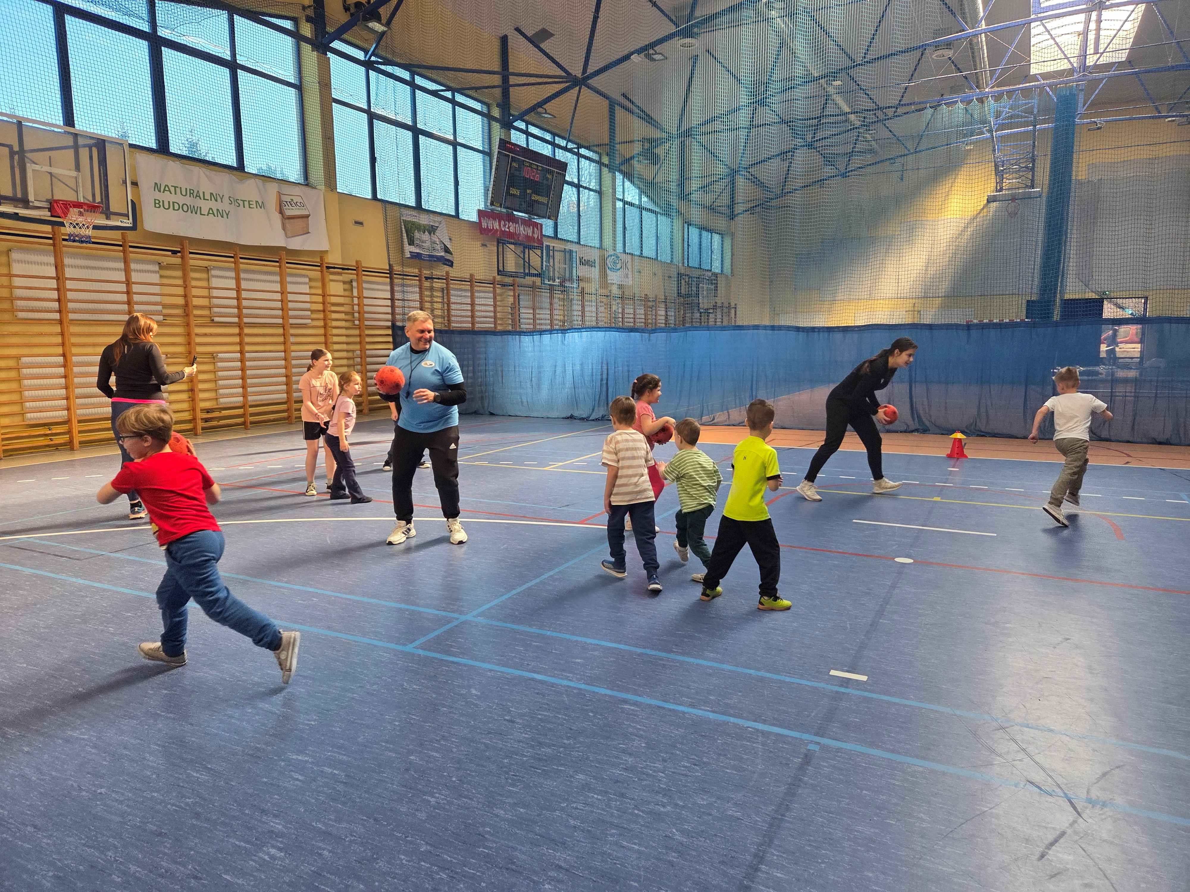 Podczas spotkań dzieci uczestniczyły w różnorodnych zabawach ruchowych, ćwiczeniach ogólnorozwojowych oraz aktywnościach sportowych dostosowanych do ich wieku i możliwości. Zajęcia przebiegały w miłej, radosnej atmosferze, a przedszkolaki z ogromnym zaangażowaniem i uśmiechem brały udział we wszystkich proponowanych formach aktywności. Nie brakowało energii, zdrowej rywalizacji oraz wspólnej zabawy.