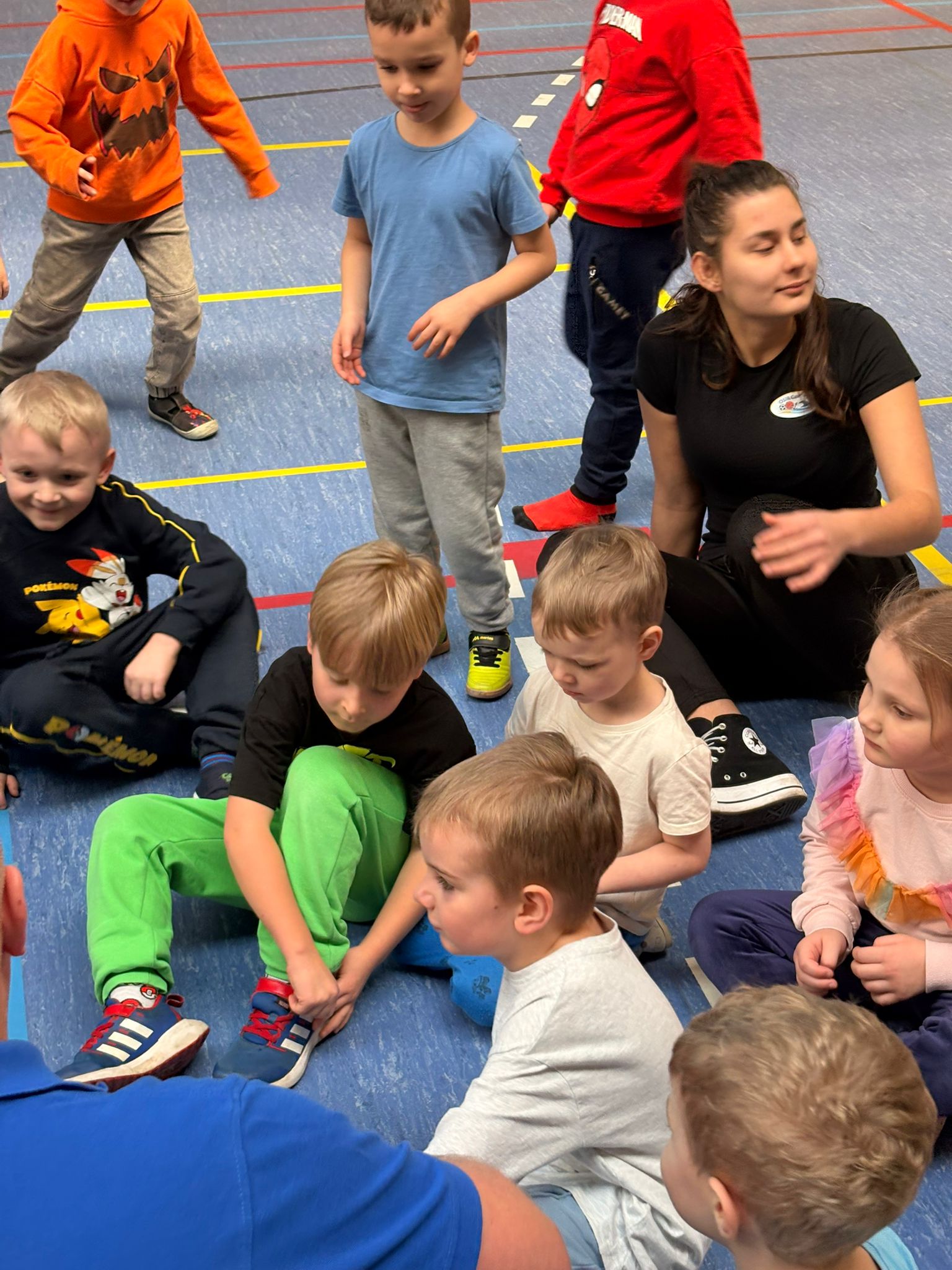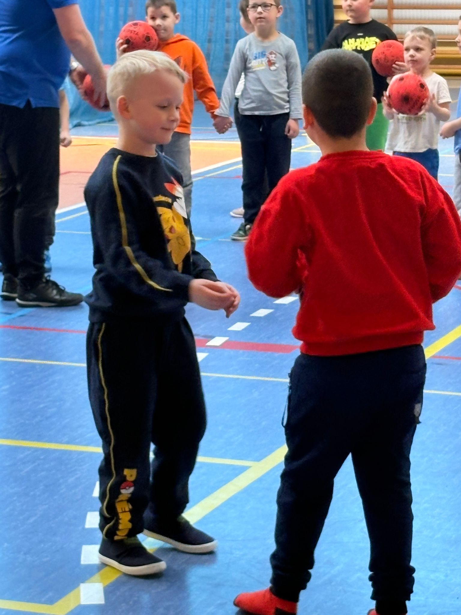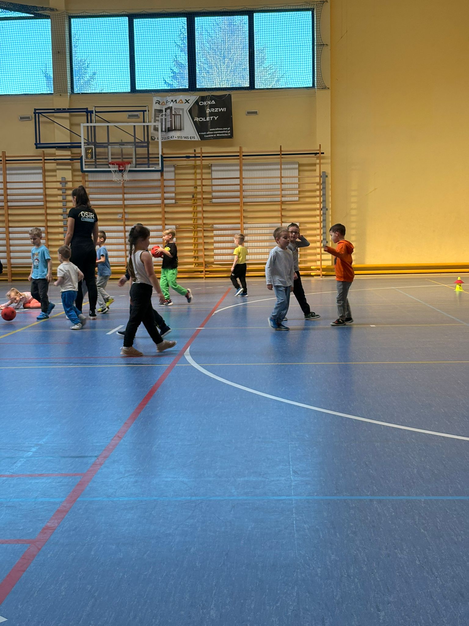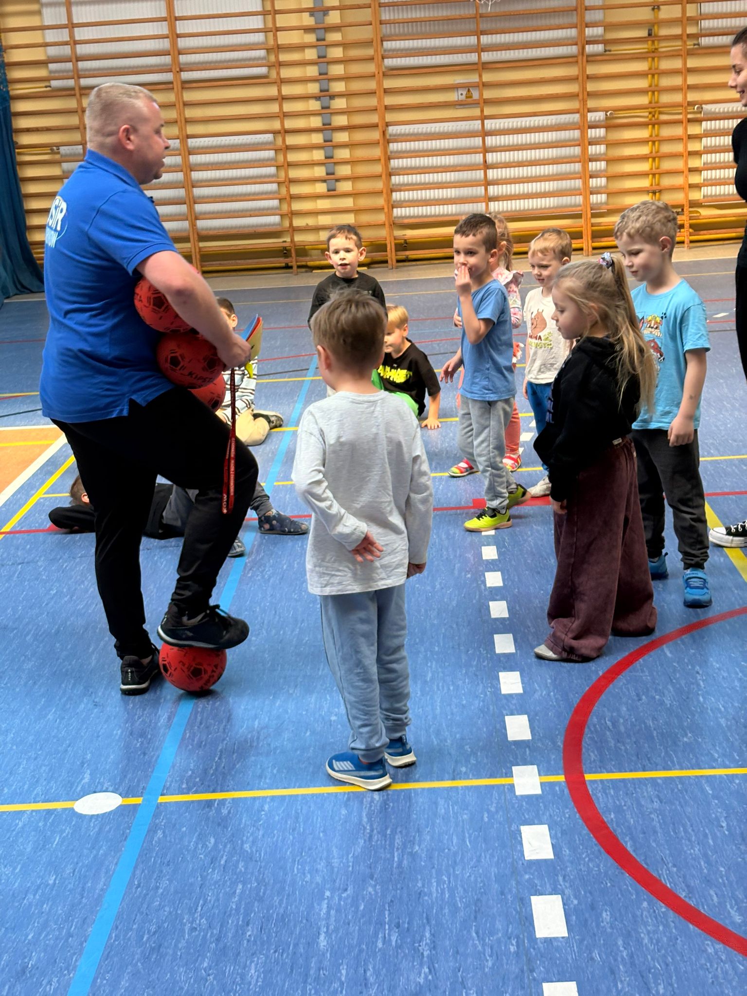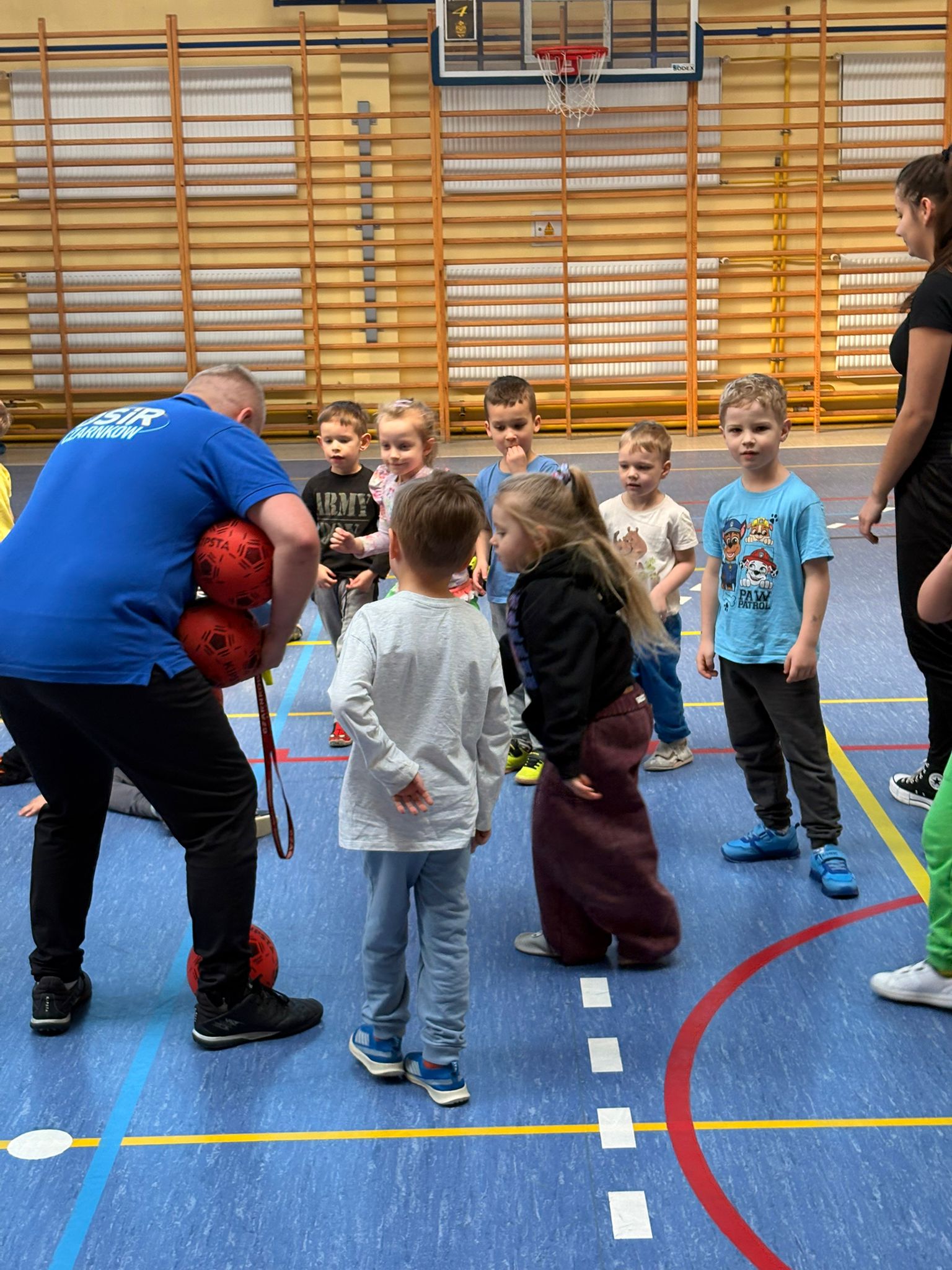 Podczas spotkań dzieci uczestniczyły w różnorodnych zabawach ruchowych, ćwiczeniach ogólnorozwojowych oraz aktywnościach sportowych dostosowanych do ich wieku i możliwości. Zajęcia przebiegały w miłej, radosnej atmosferze, a przedszkolaki z ogromnym zaangażowaniem i uśmiechem brały udział we wszystkich proponowanych formach aktywności. Nie brakowało energii, zdrowej rywalizacji oraz wspólnej zabawy.